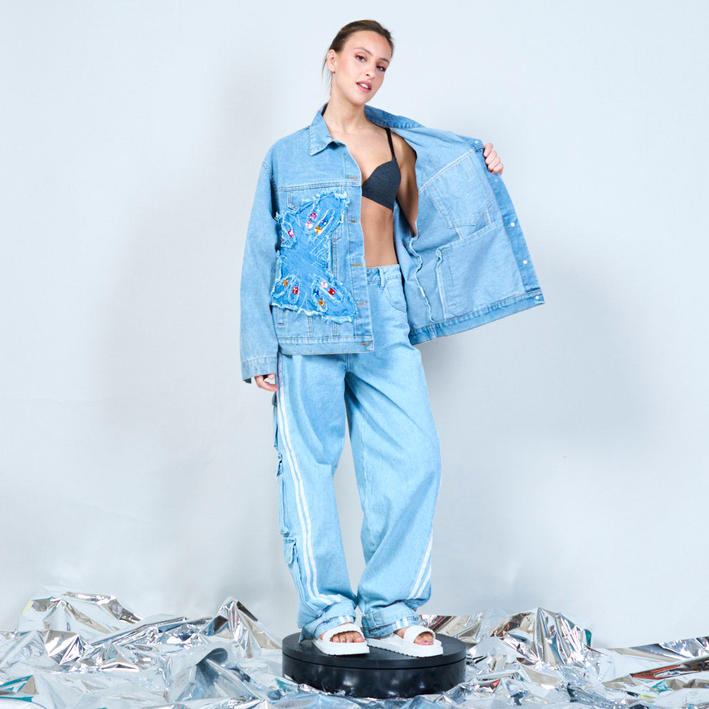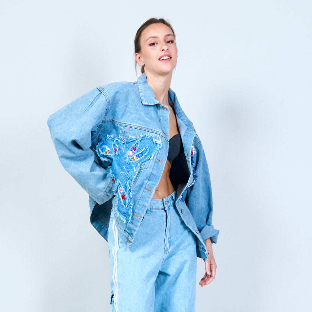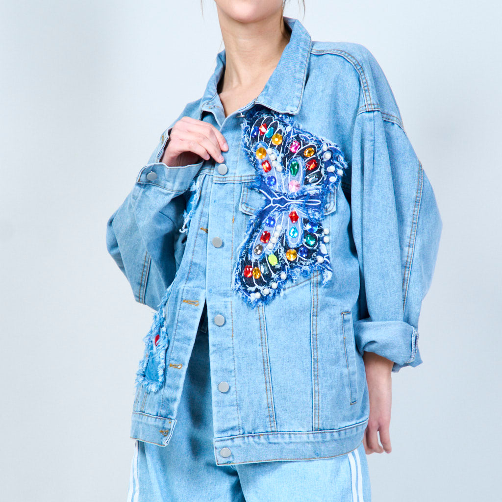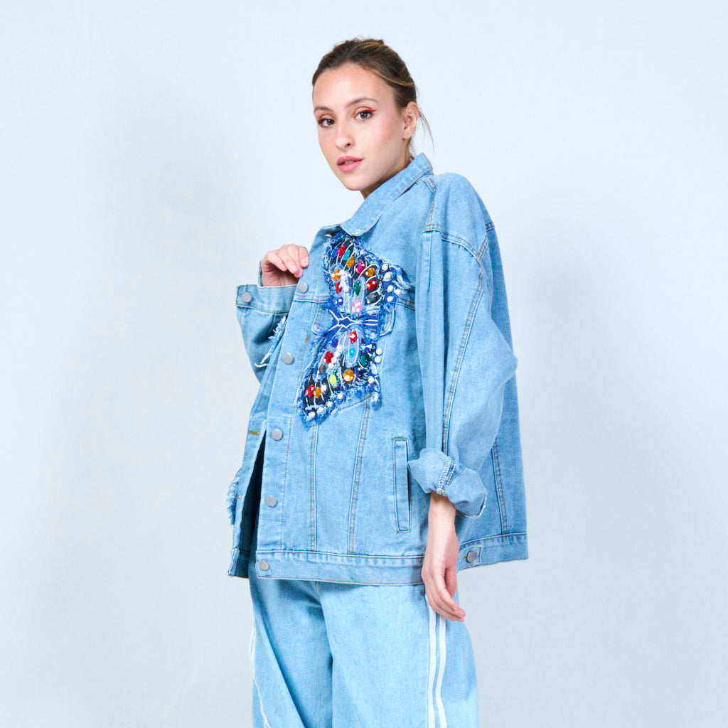 Utsmyckad överdimensionerad denimjacka grossist
