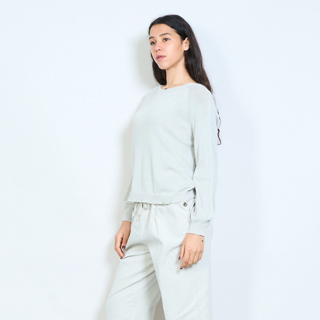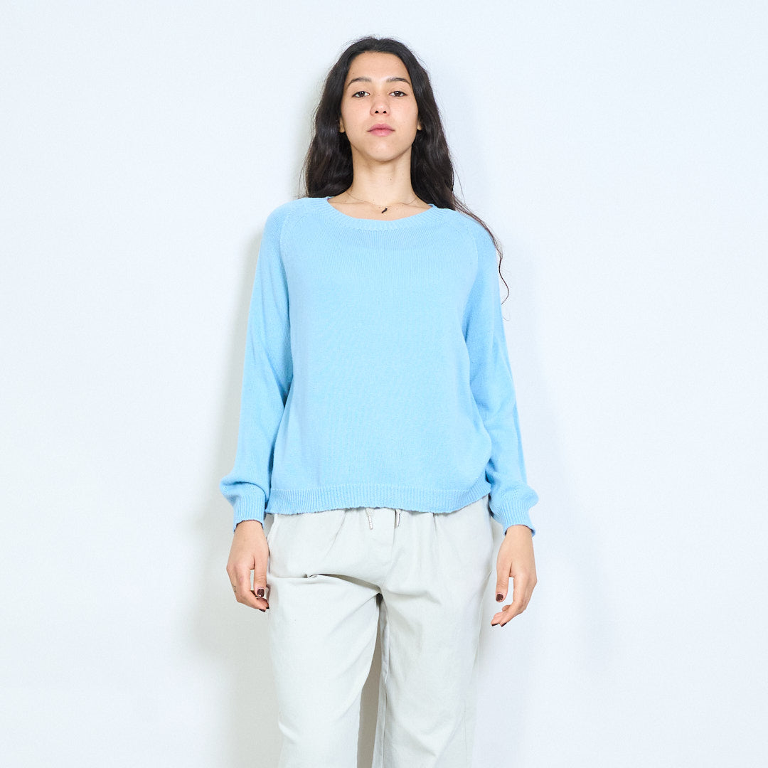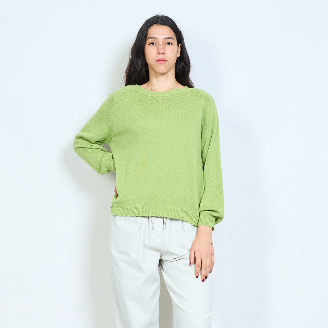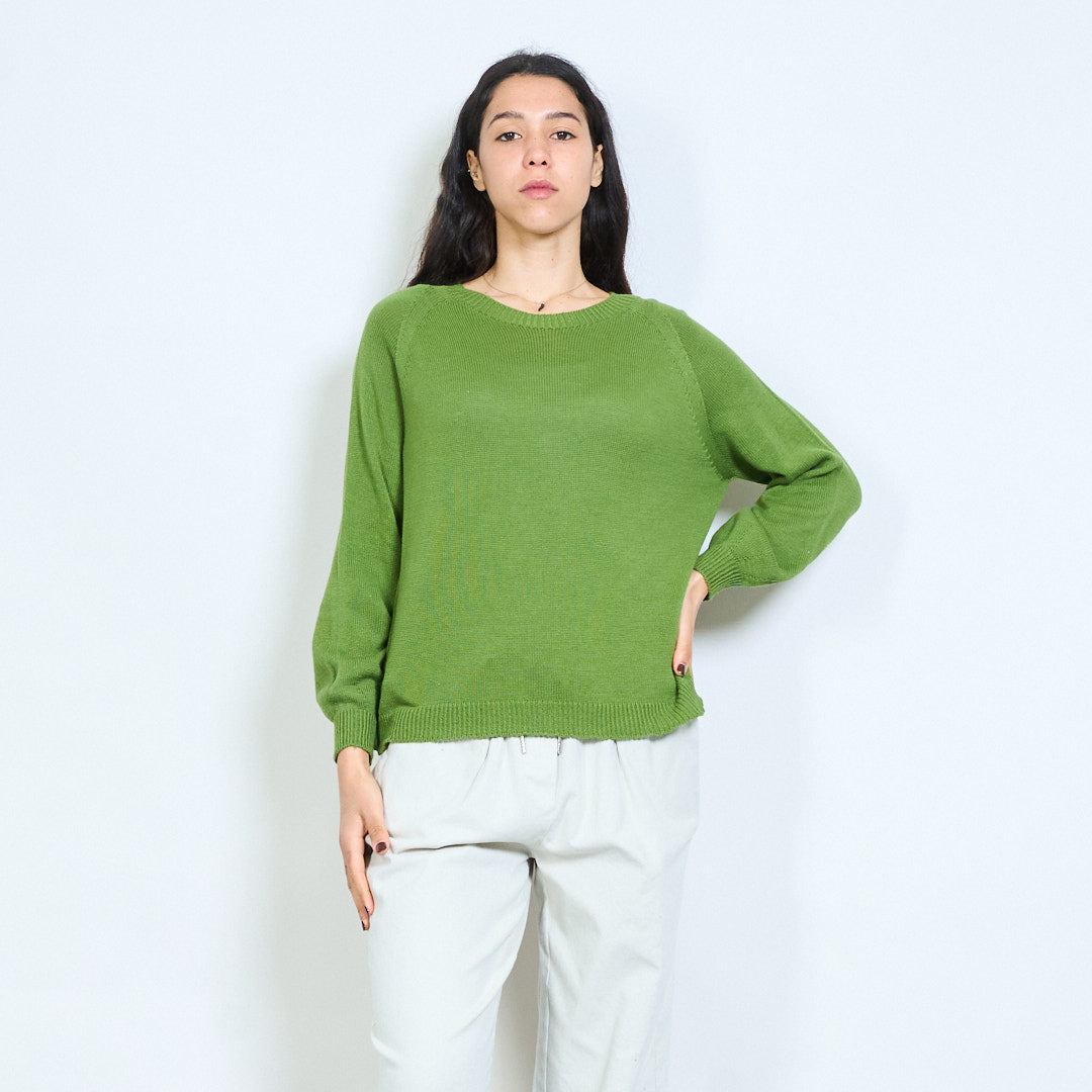 Lätt finstickad tröja med rund hals och raglanärmar i grossistledet