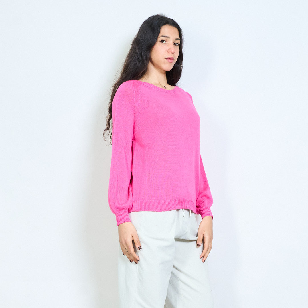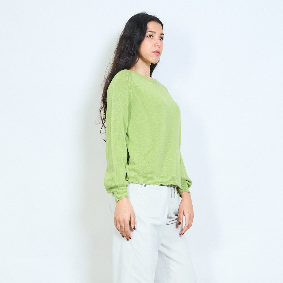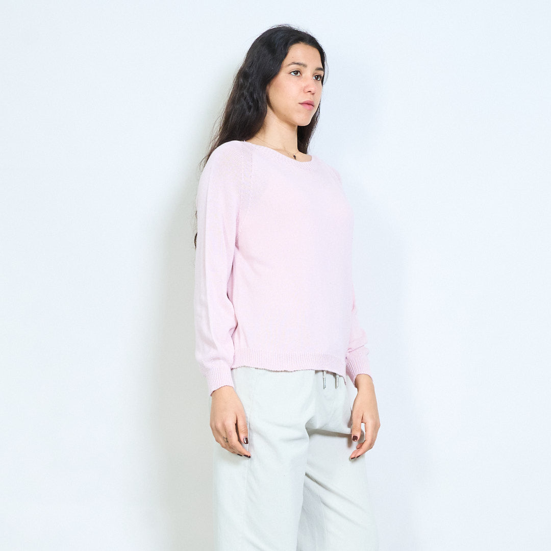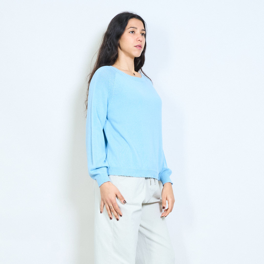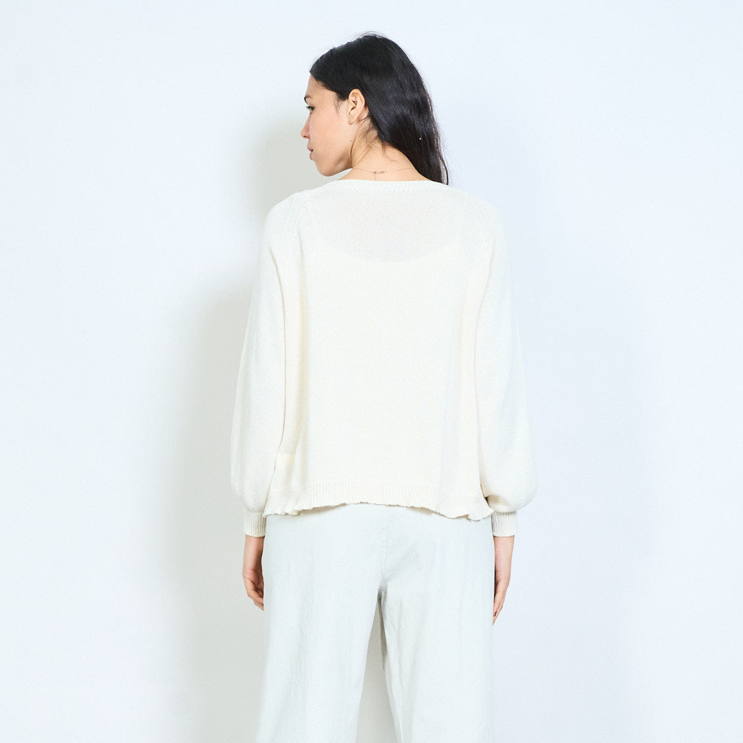 Lätt finstickad tröja med rund hals och raglanärmar i grossistledet