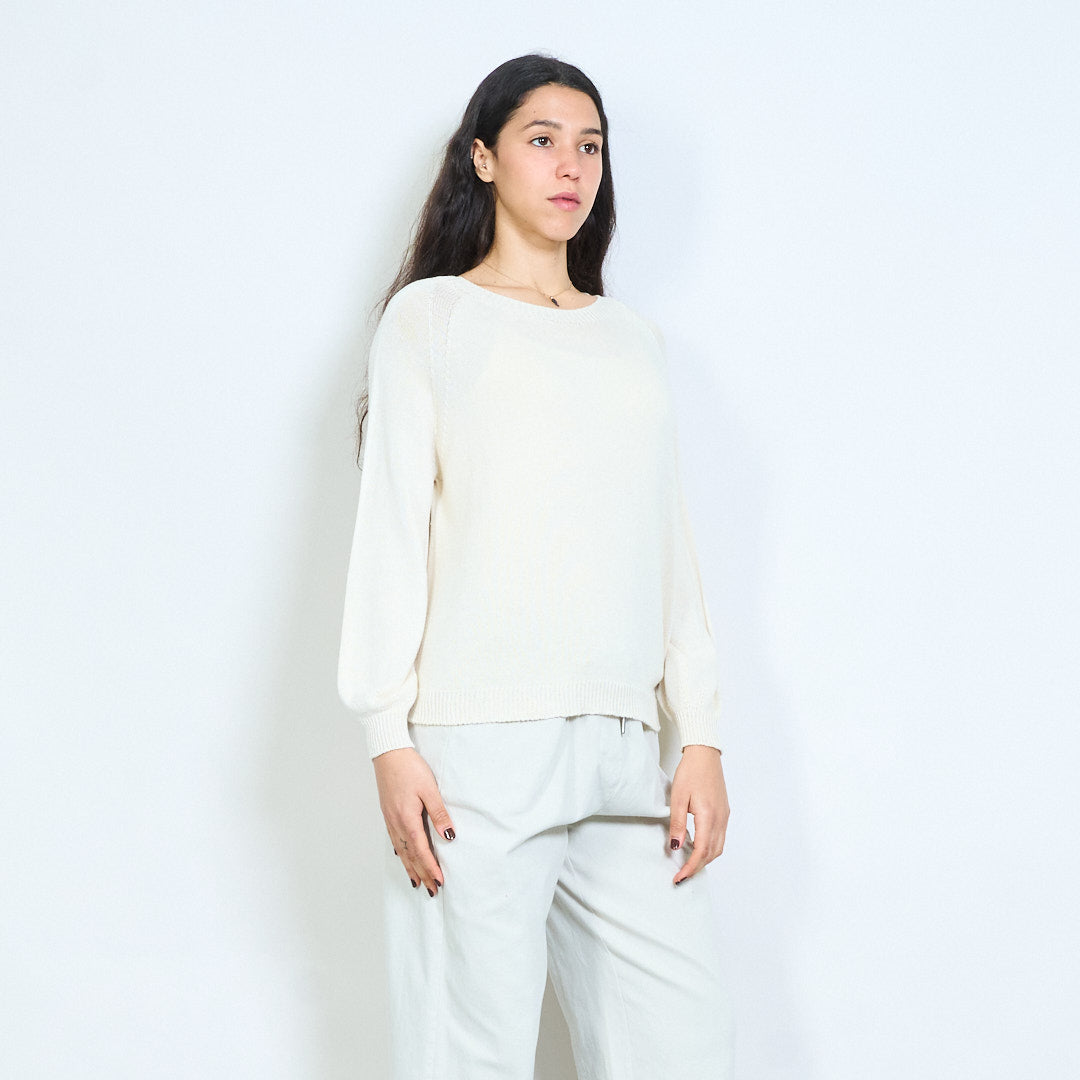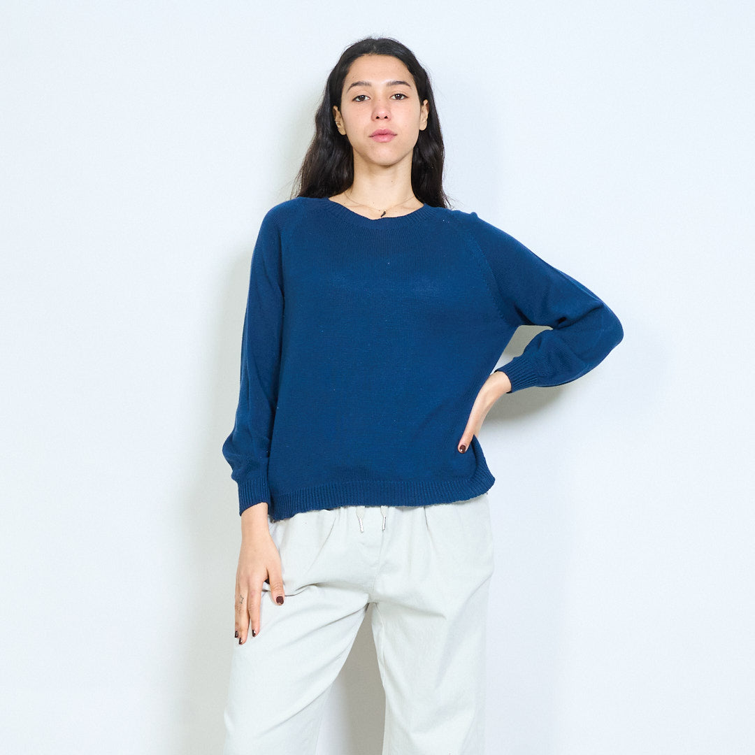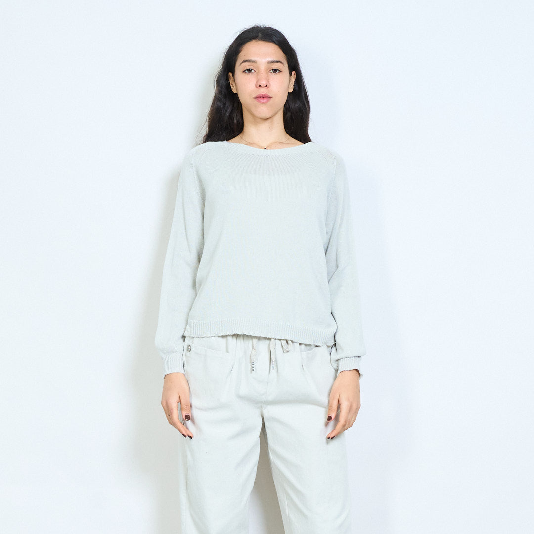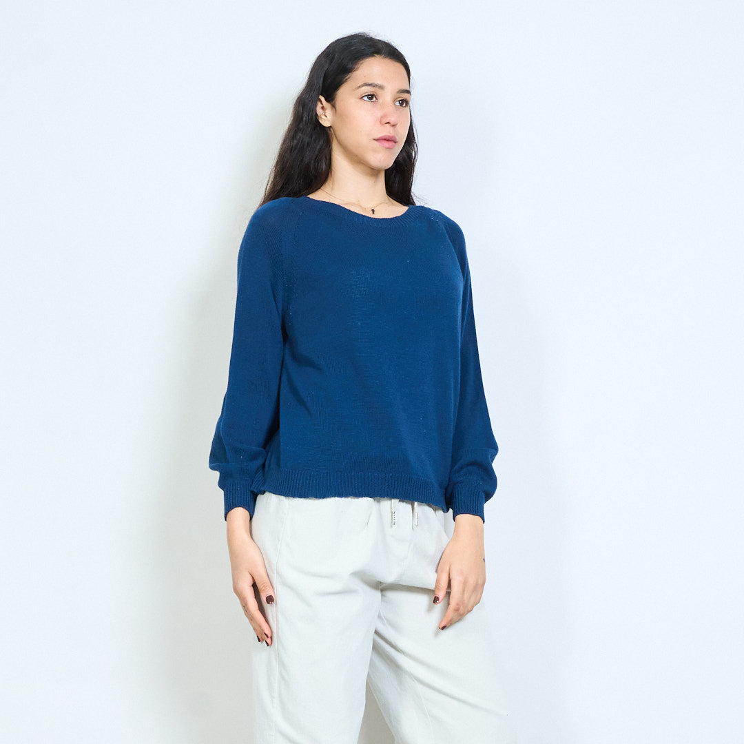 Lätt finstickad tröja med rund hals och raglanärmar i grossistledet