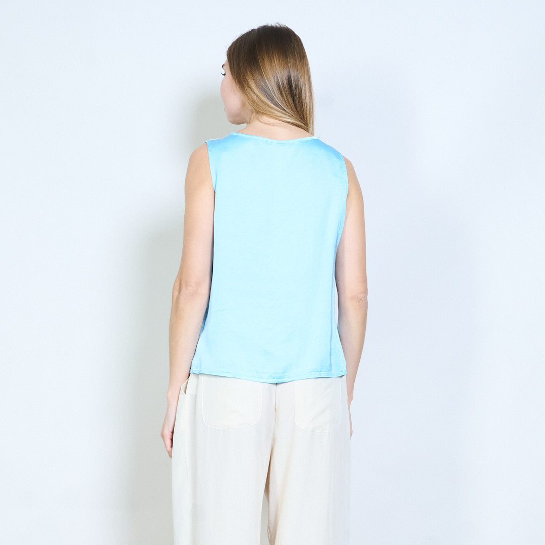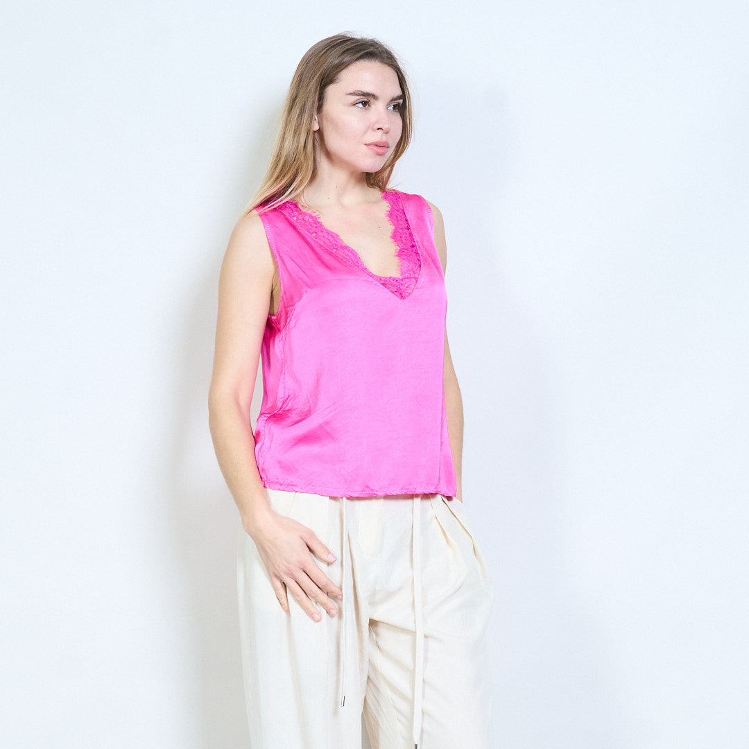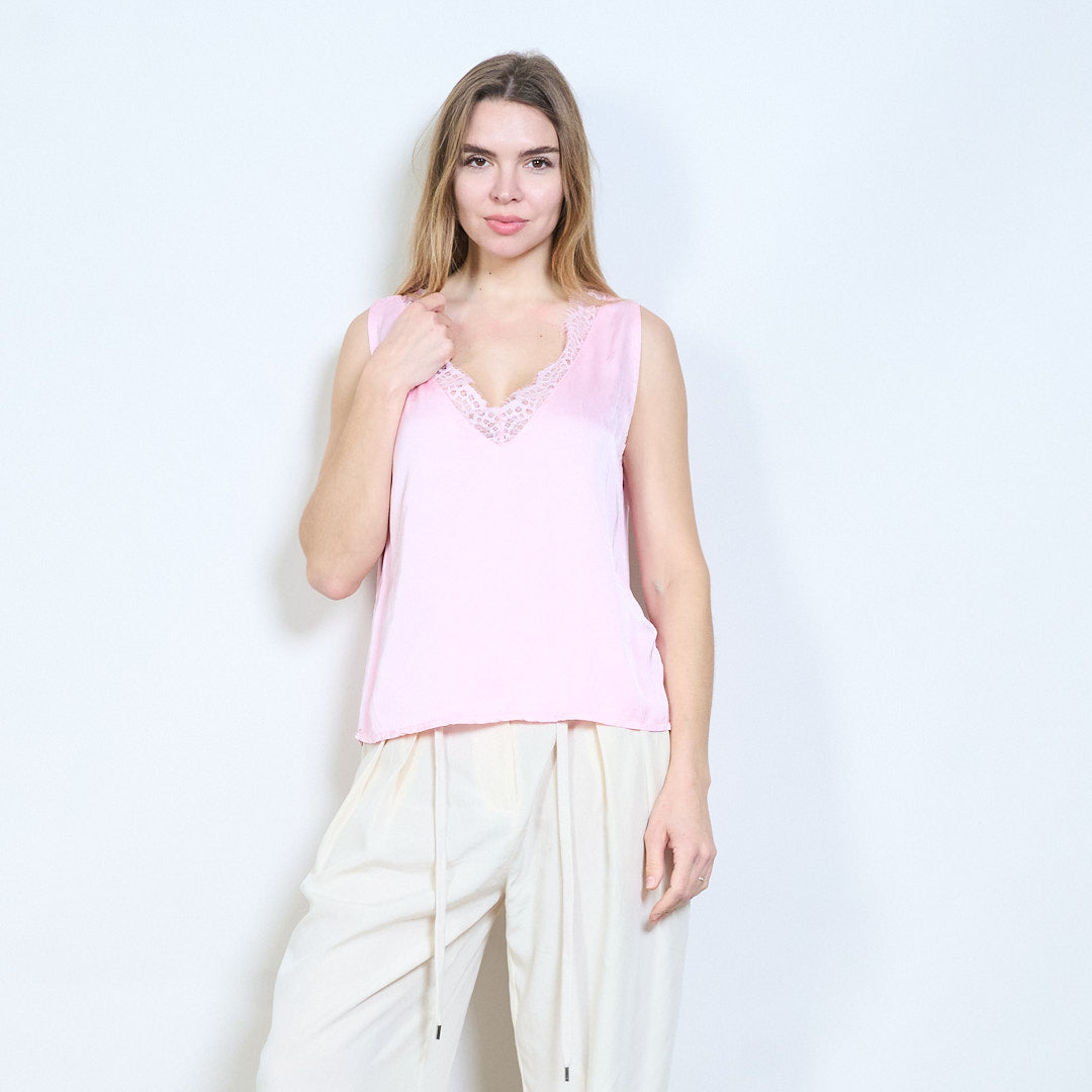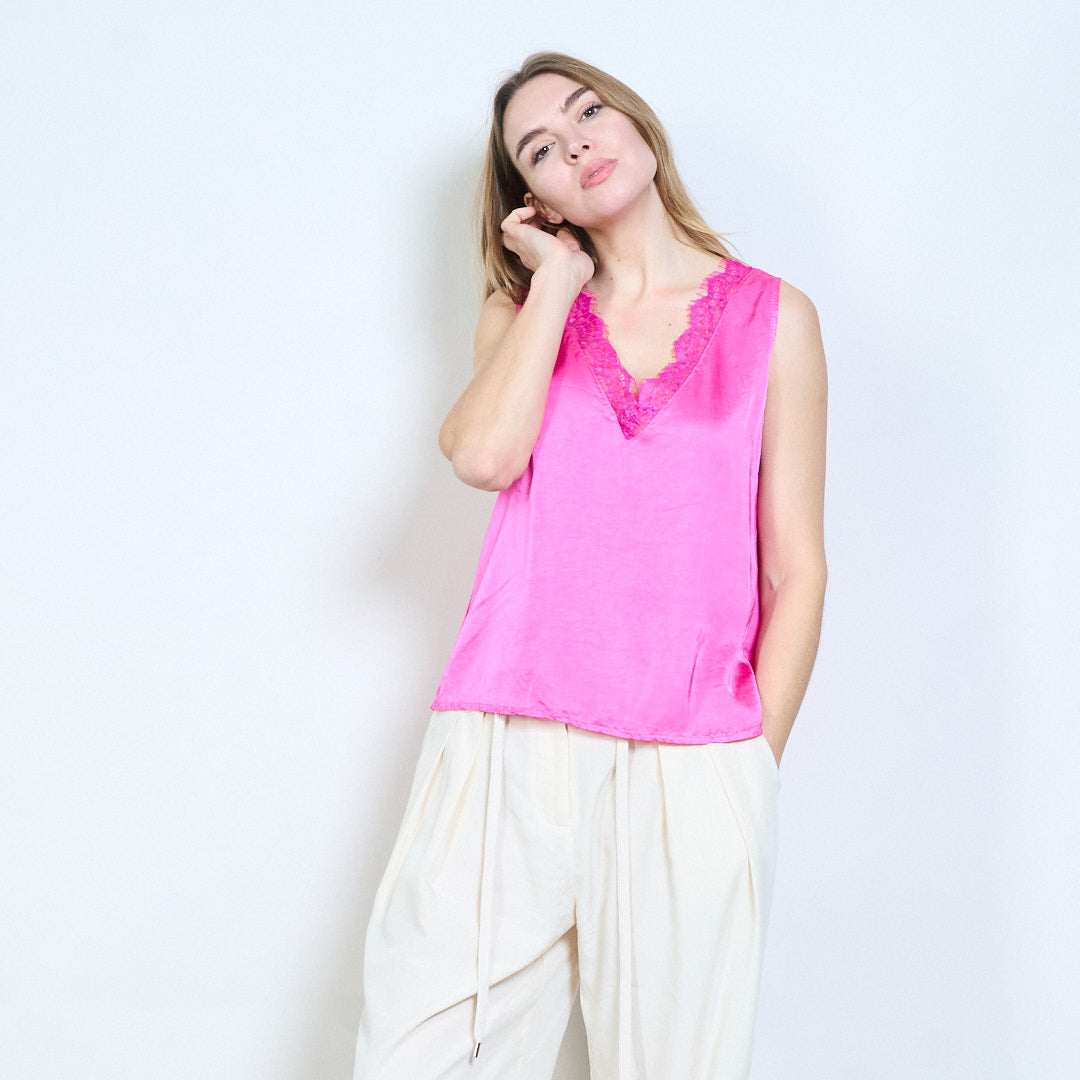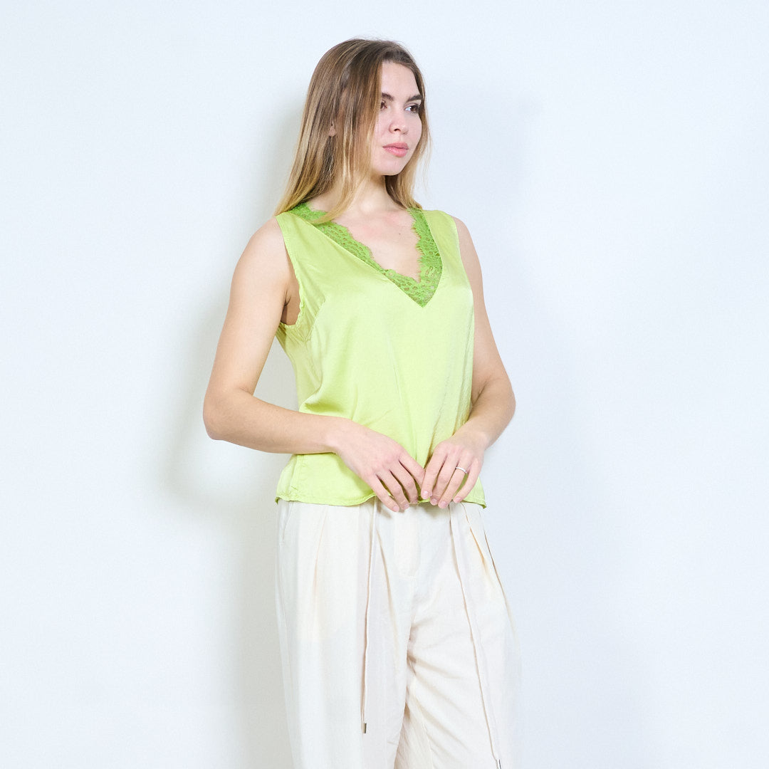 Avslappnad ärmlös topp med spetsad halsringning detaljhandel