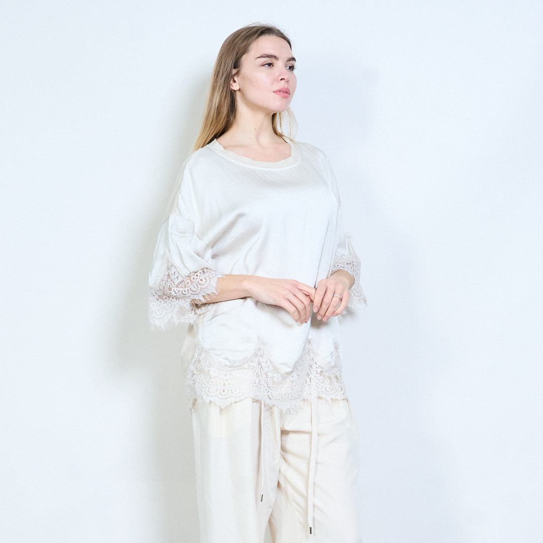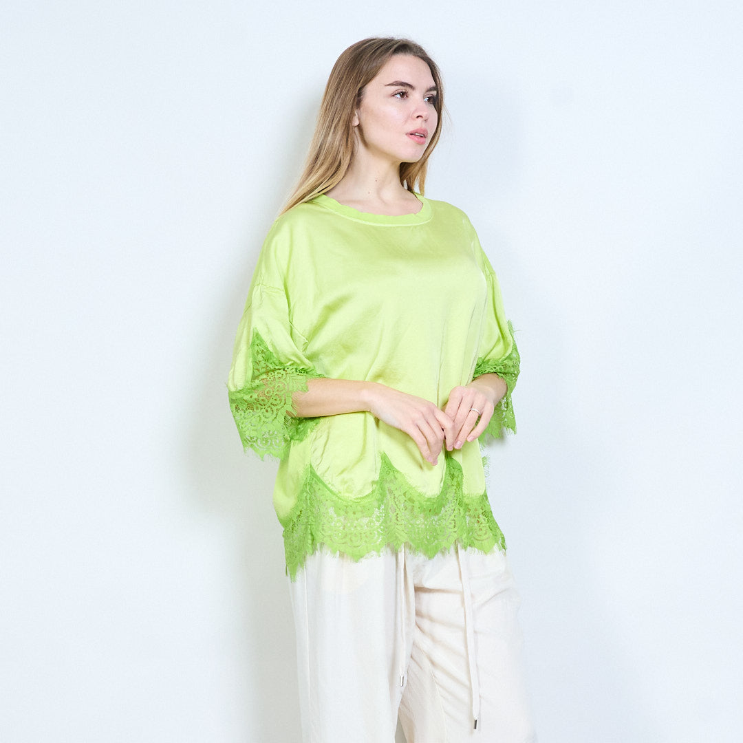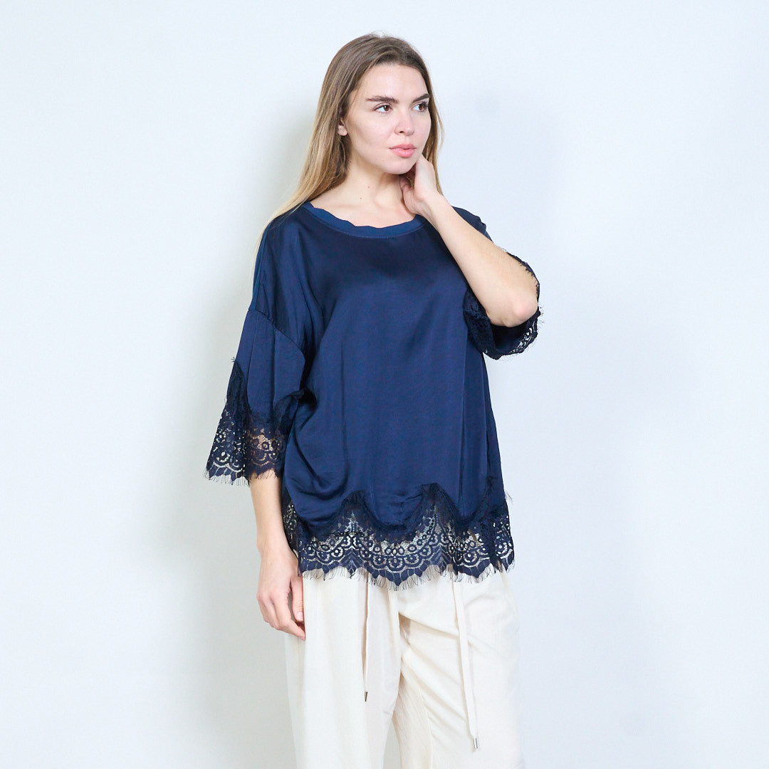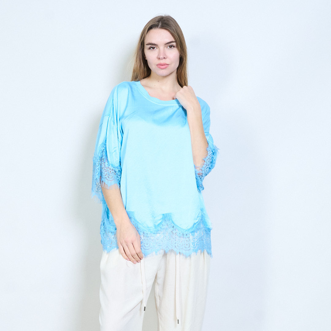 Avslappnad topp med spetskant i fåll och ärmar i grossistledet