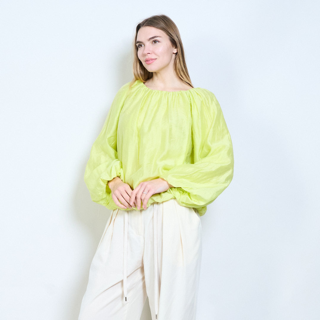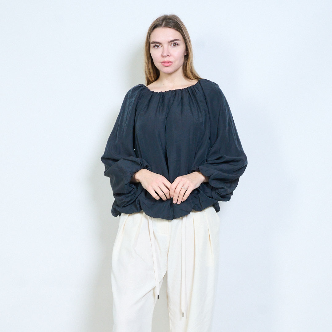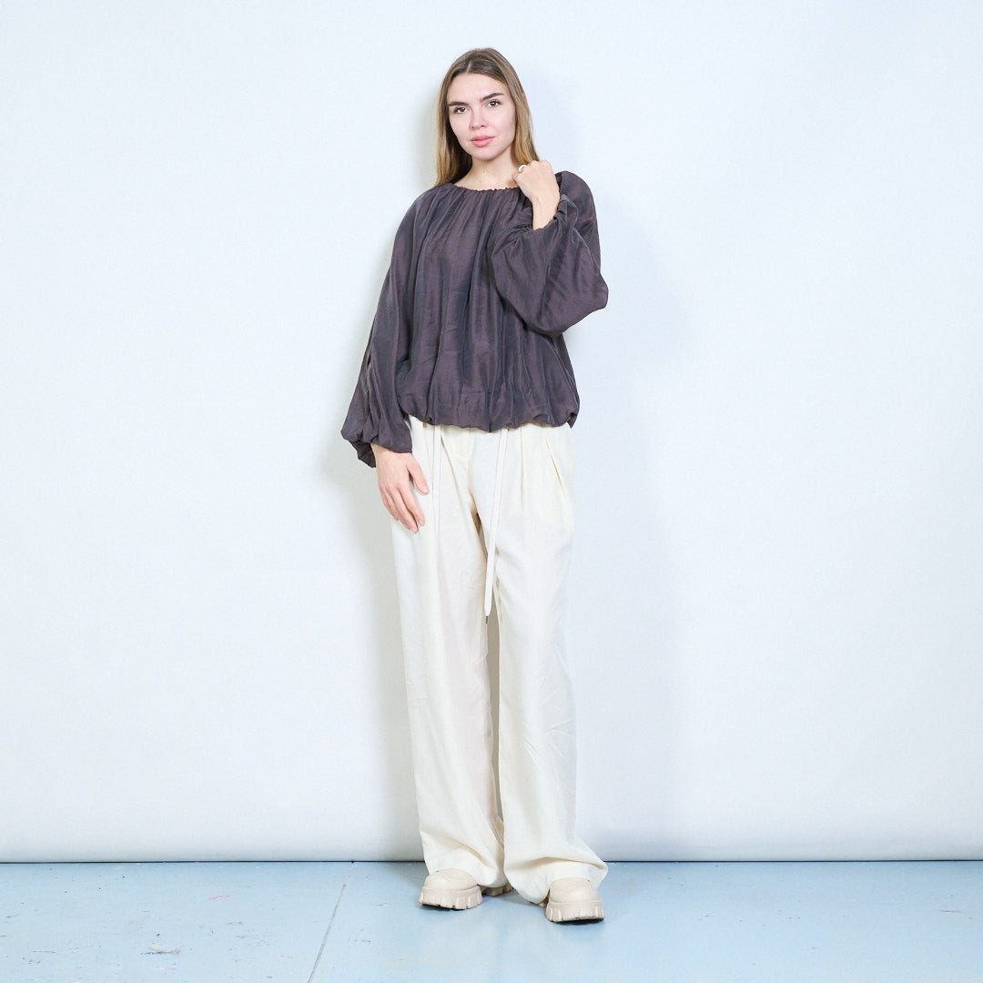 - Långa ärmar med lös volym skapar en mjuk flytande look