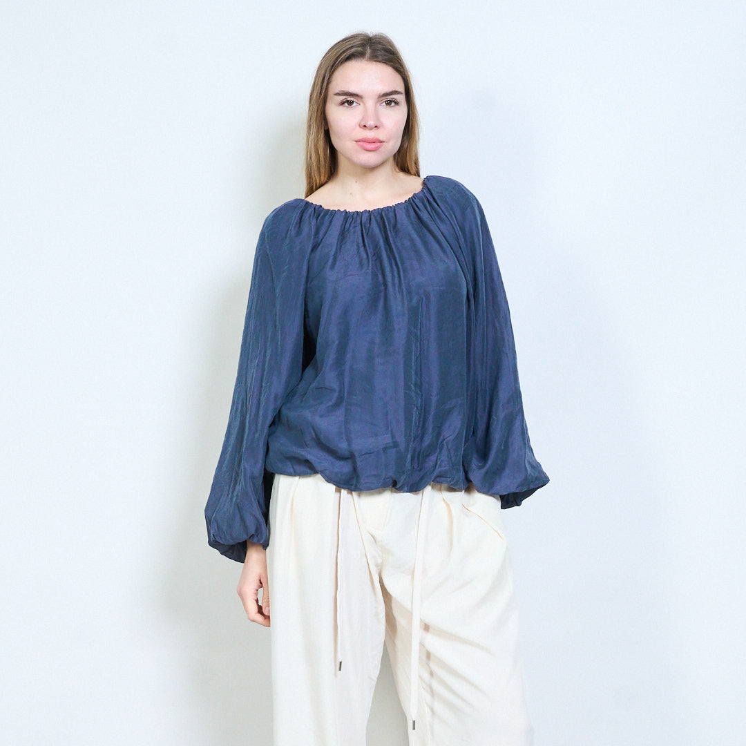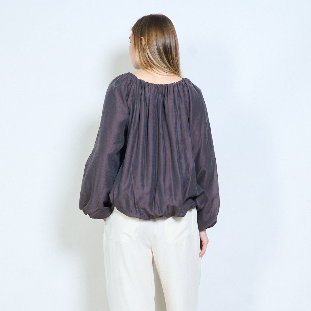 Elastisk halsringning avslappnad långärmad luftig blus partihandel