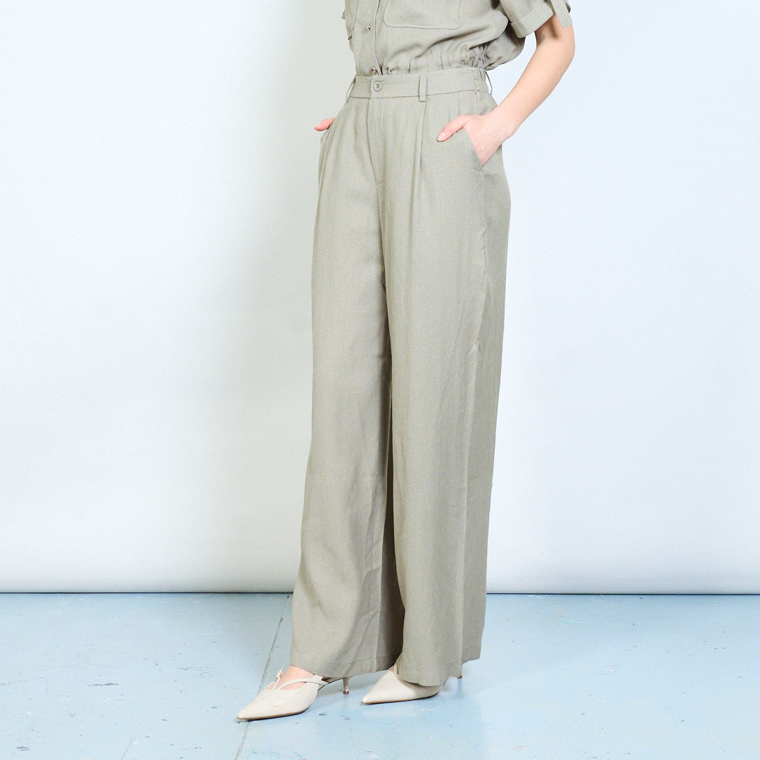 Elastisk midja skräddarsydd byxa med vida ben i grossistledet