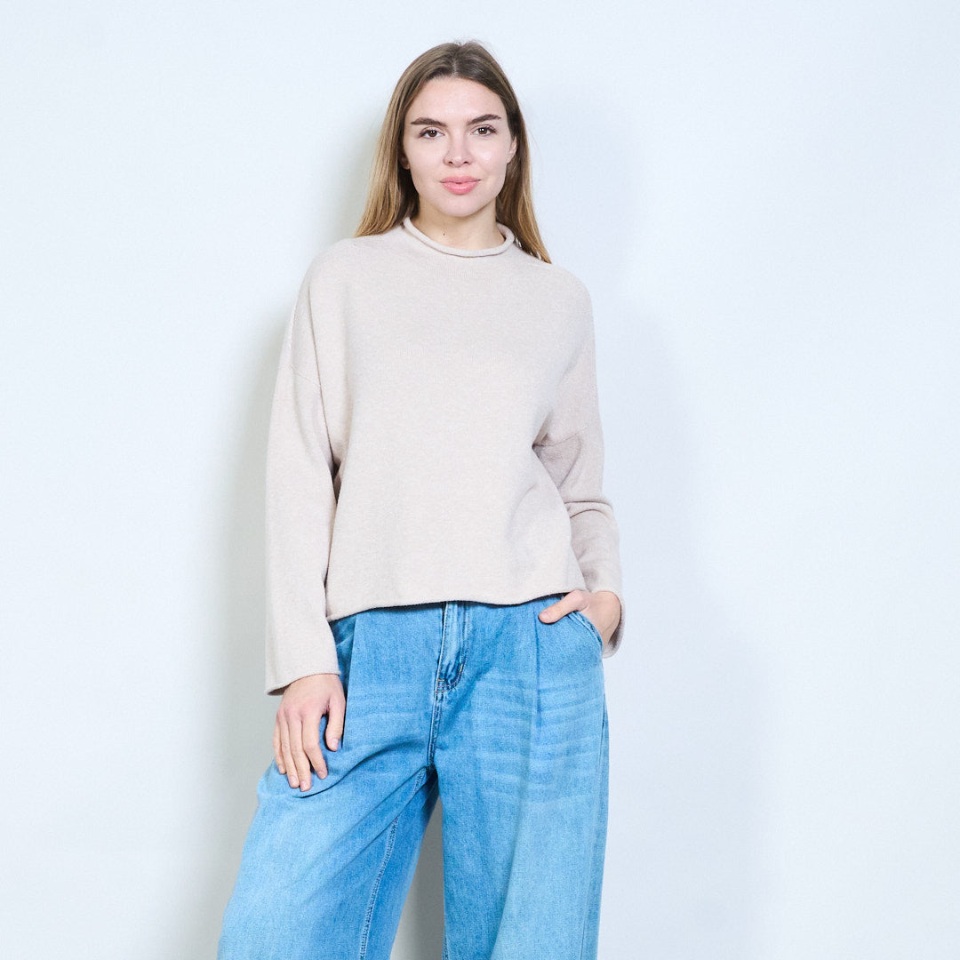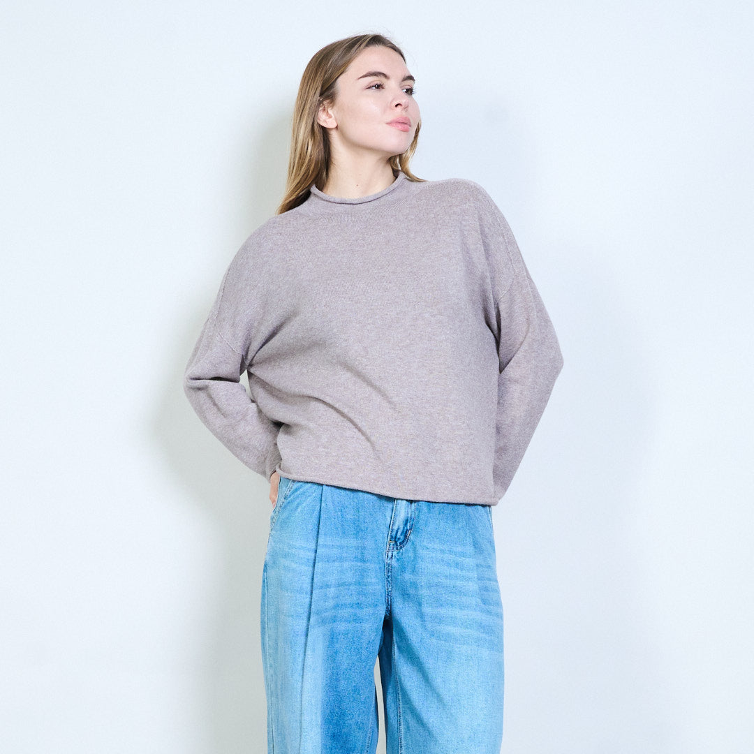 Minimal crew neck flow stickad tröja grossist