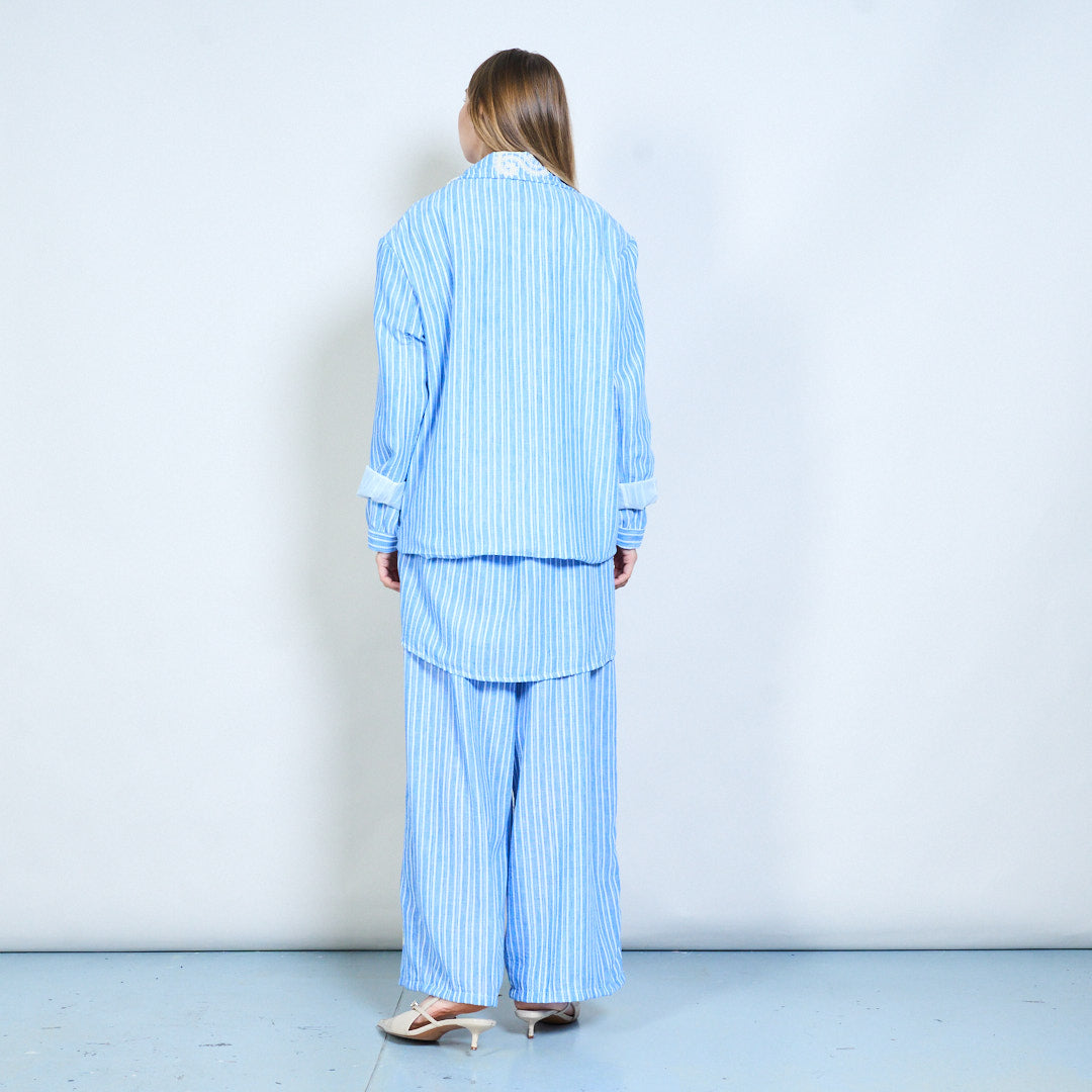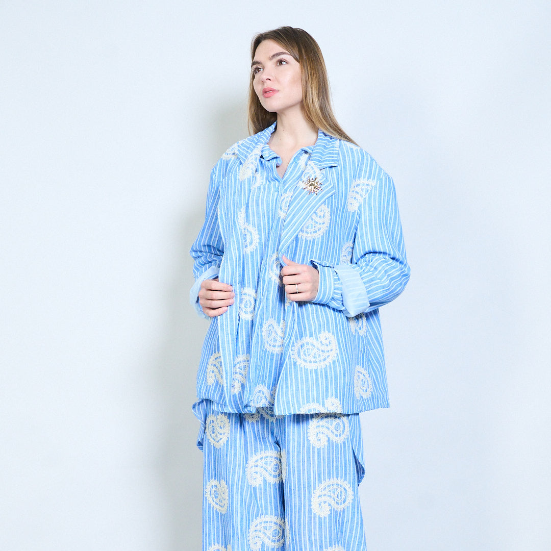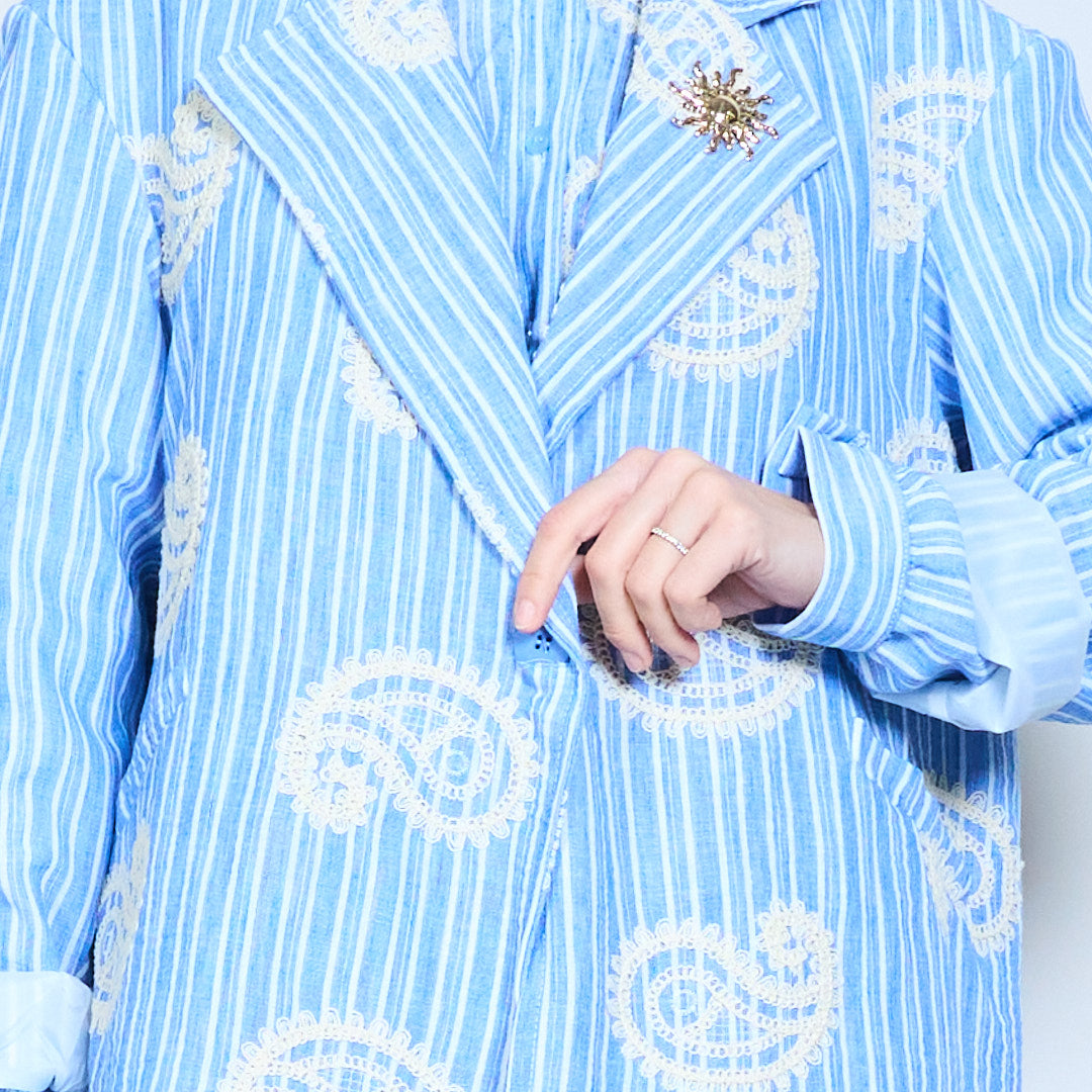 Randig broderad skräddarsydd kavaj med dekorativa motivdetaljer och strukturerad passform
