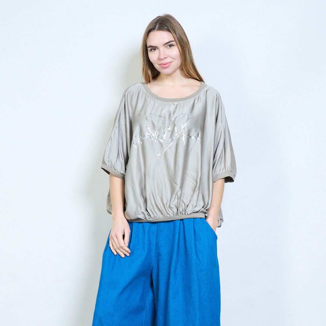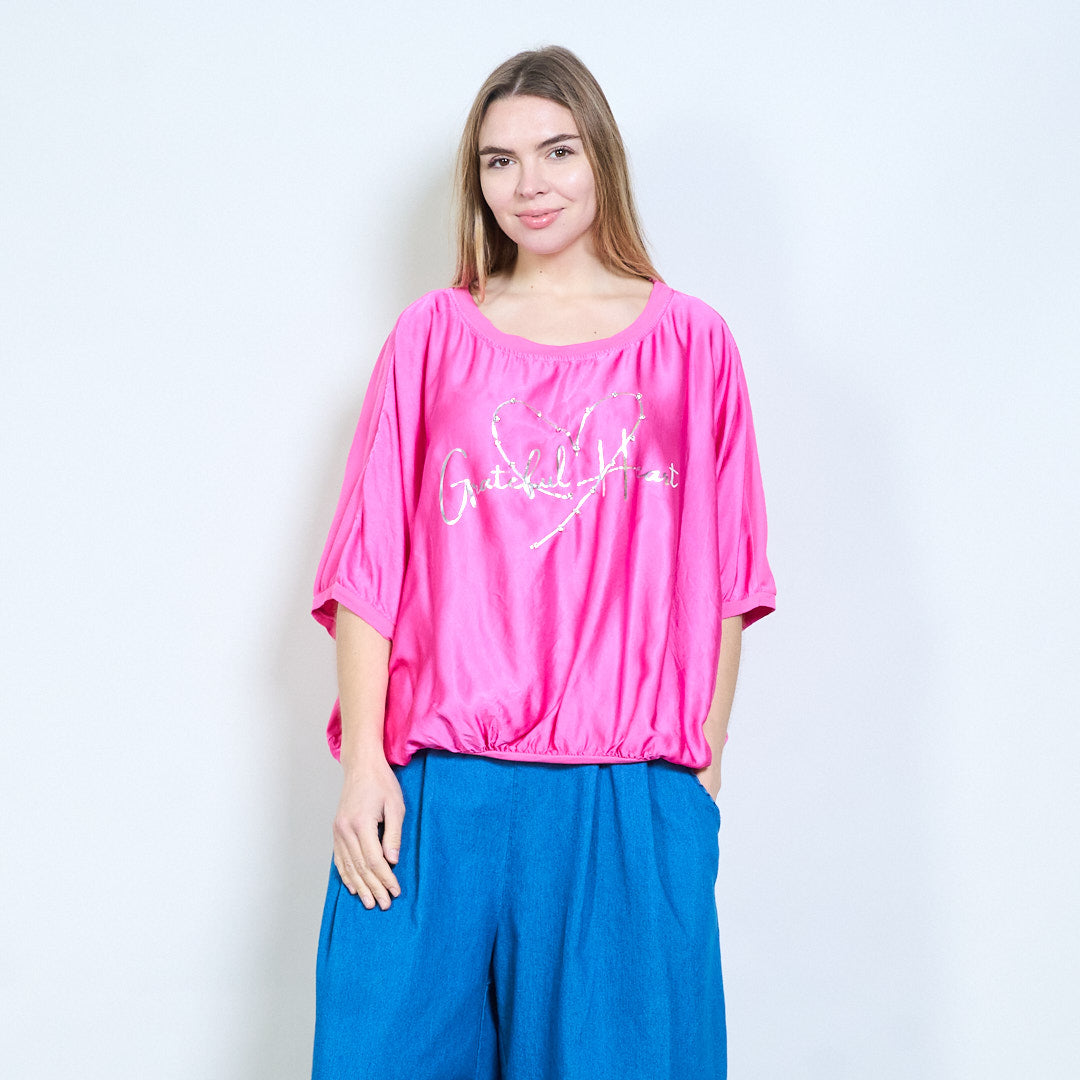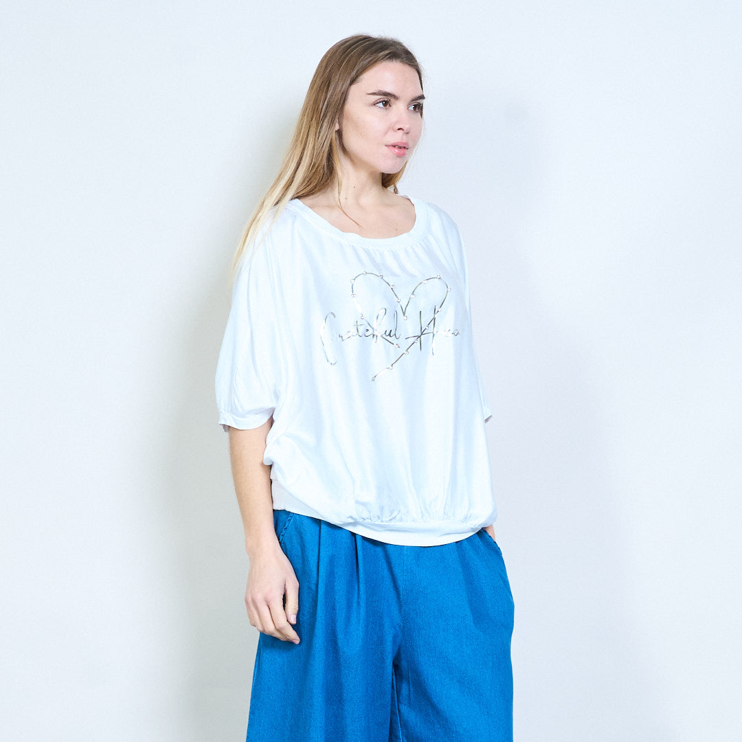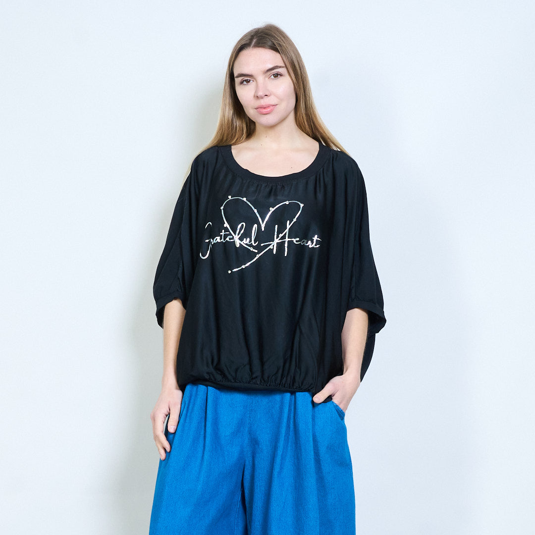 Rhinestones grafisk "Grateful Heart" tryckt avslappnad passform topp grossist