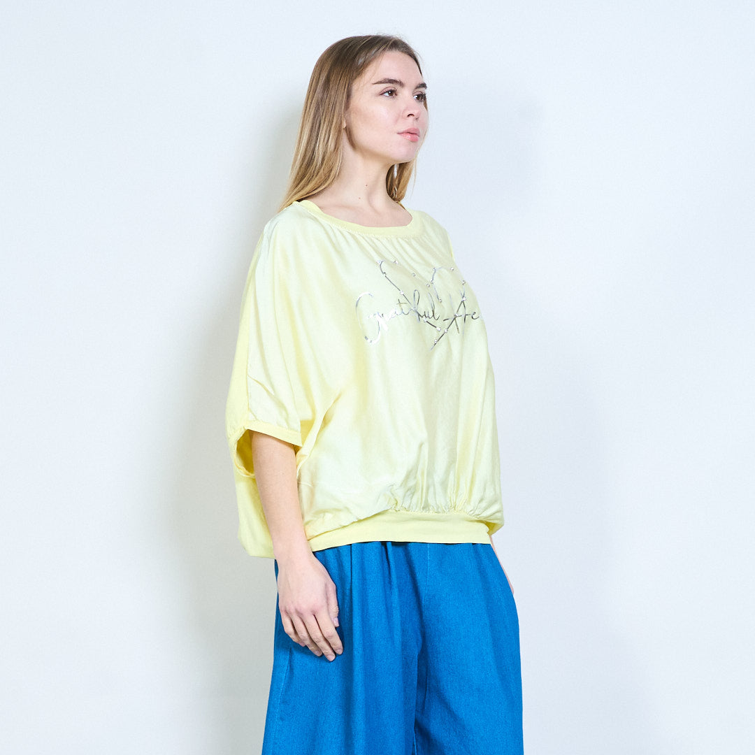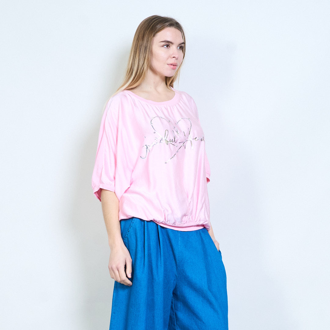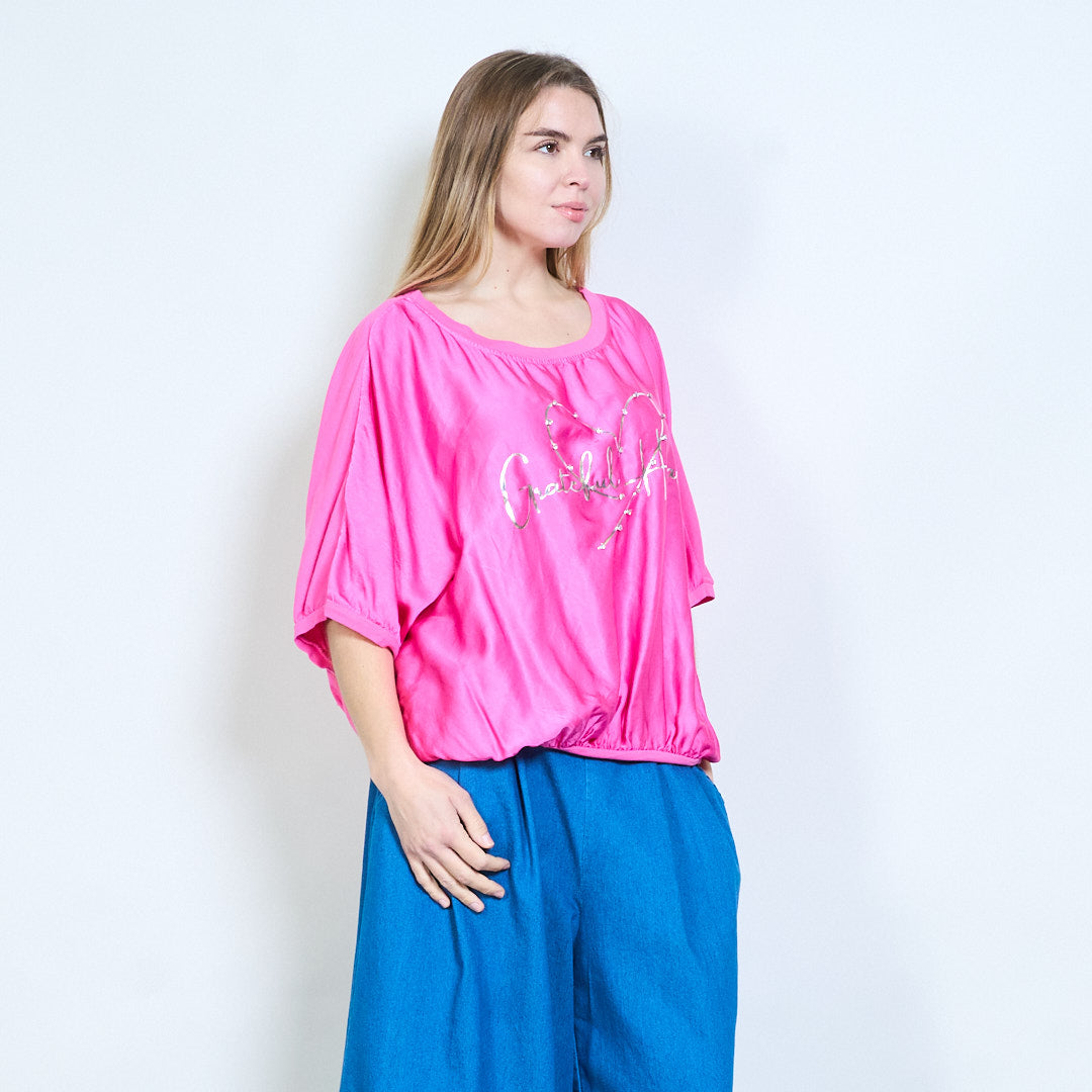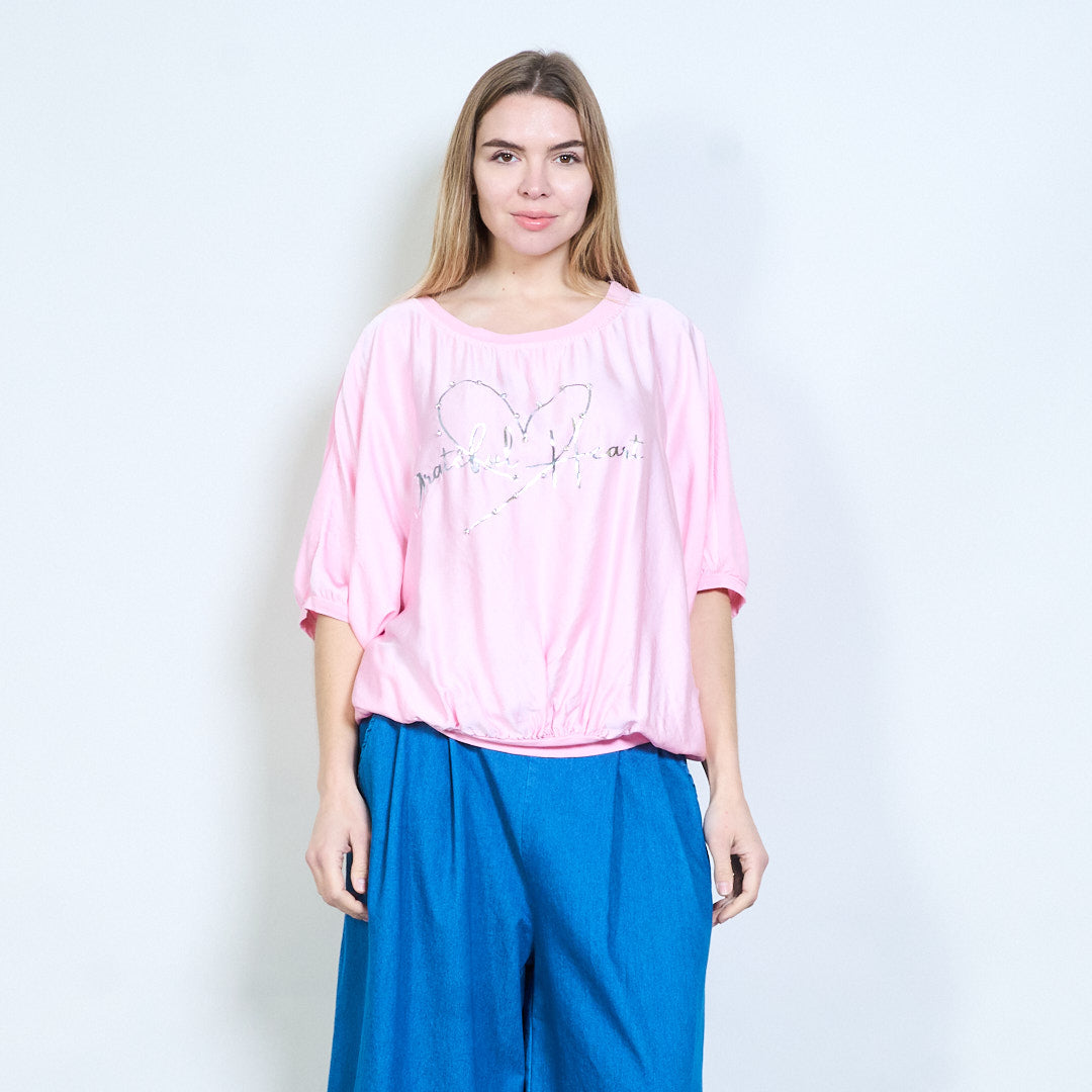 Rhinestones grafisk "Grateful Heart" tryckt avslappnad passform topp grossist