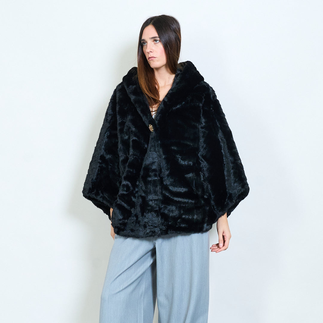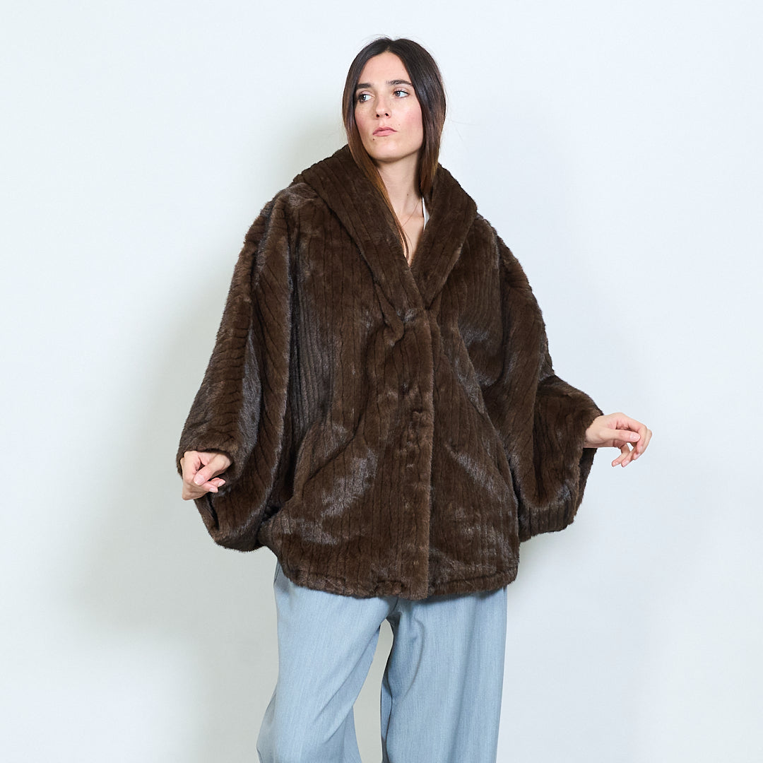 Bred krage faux pälsjacka med enkel lås stängning grossist