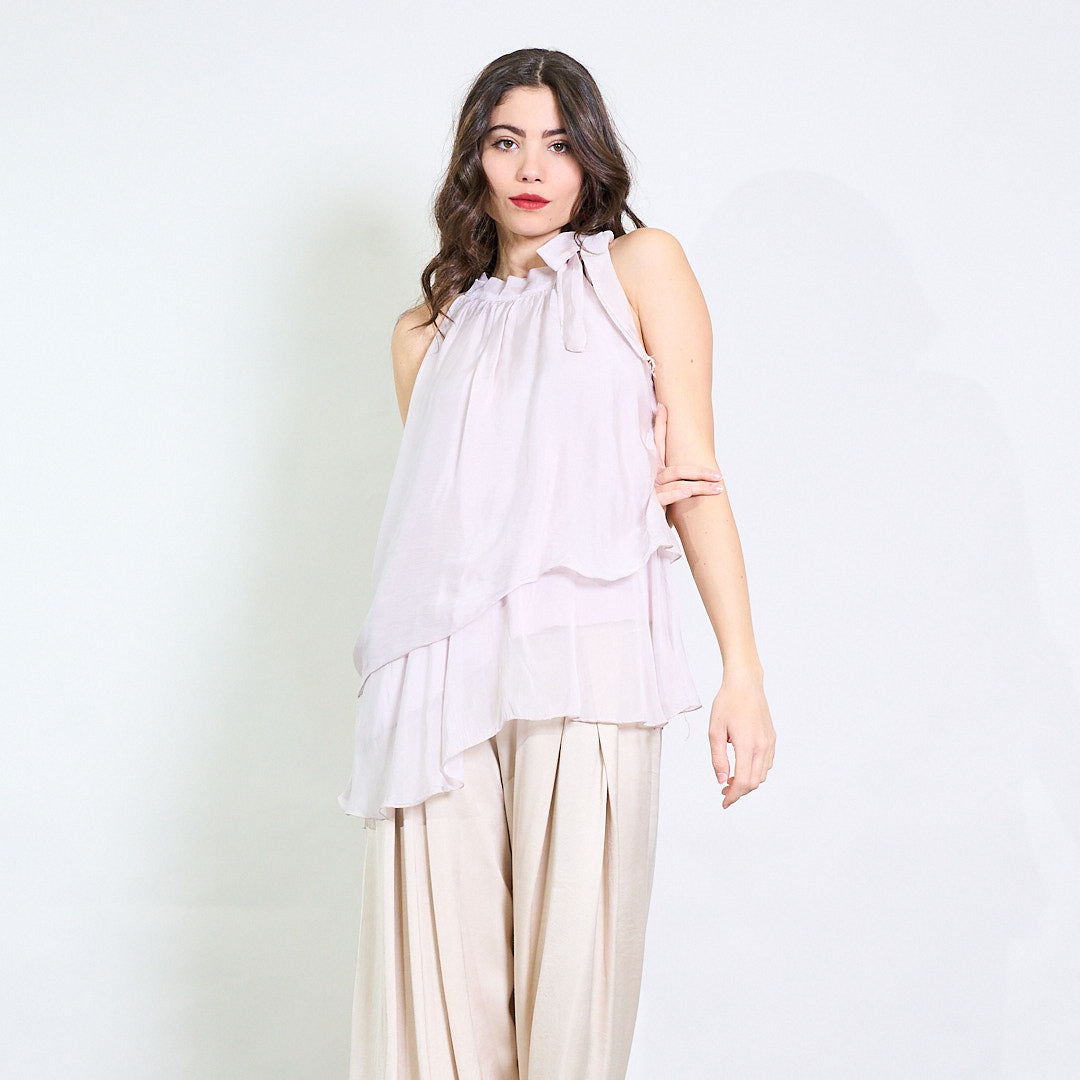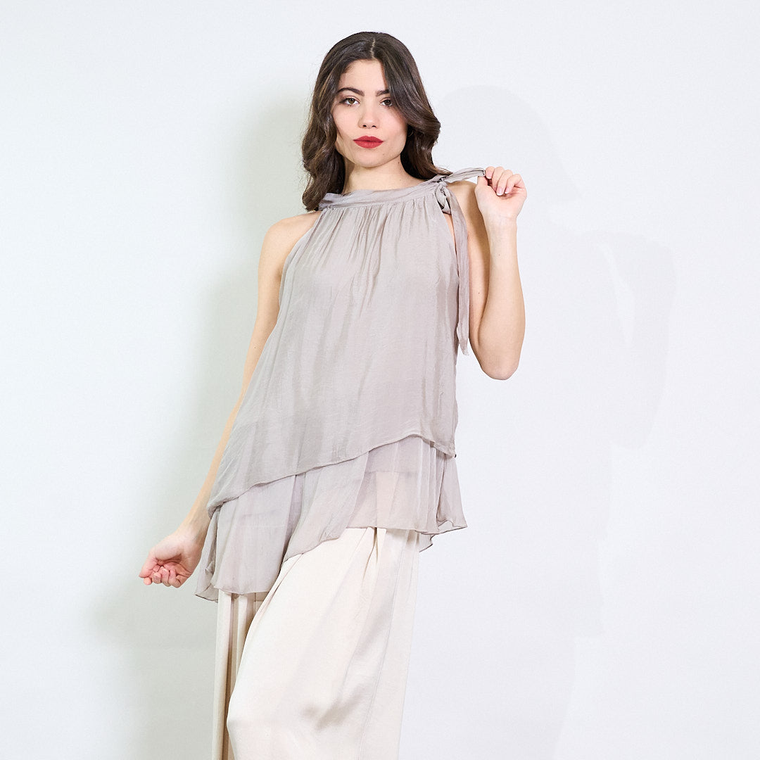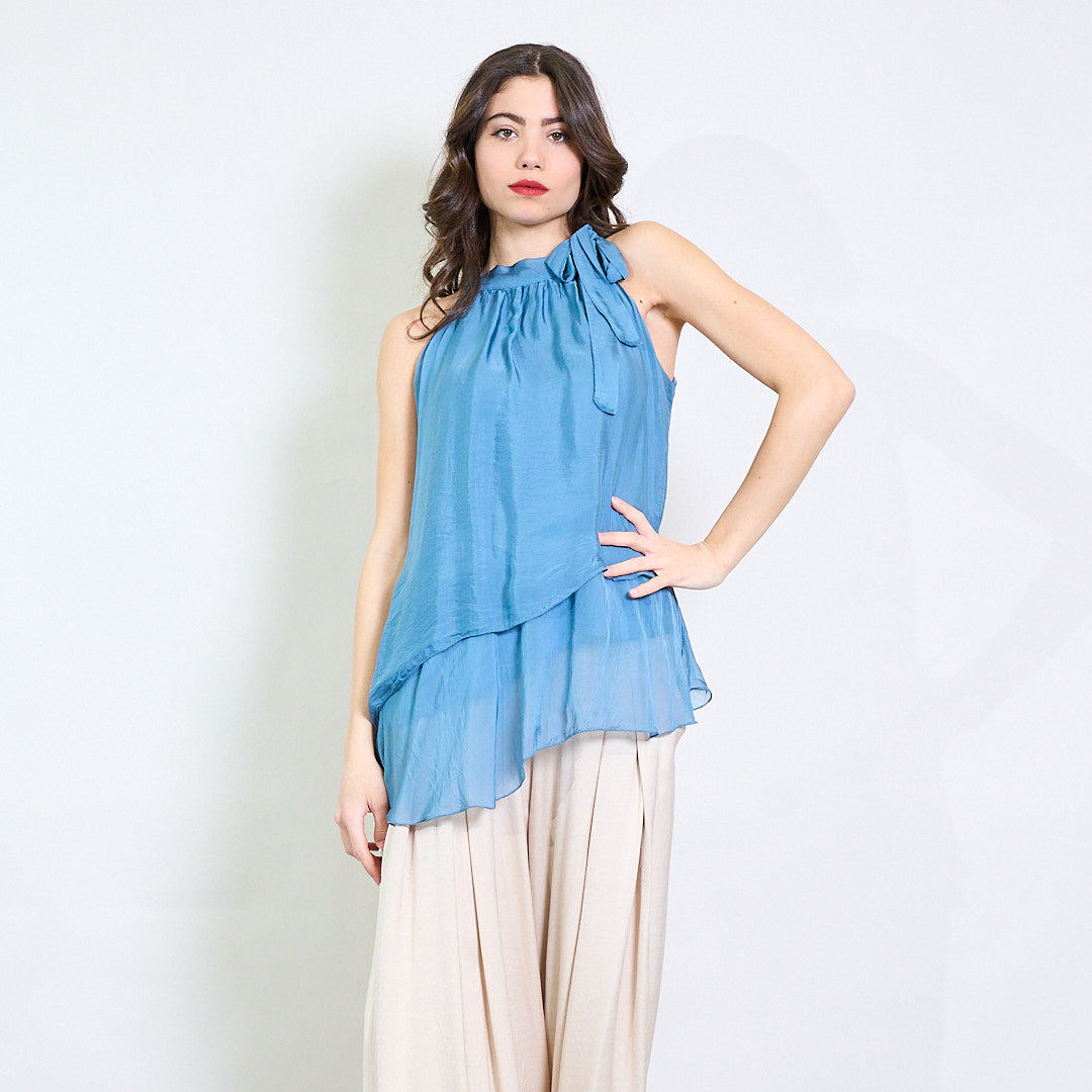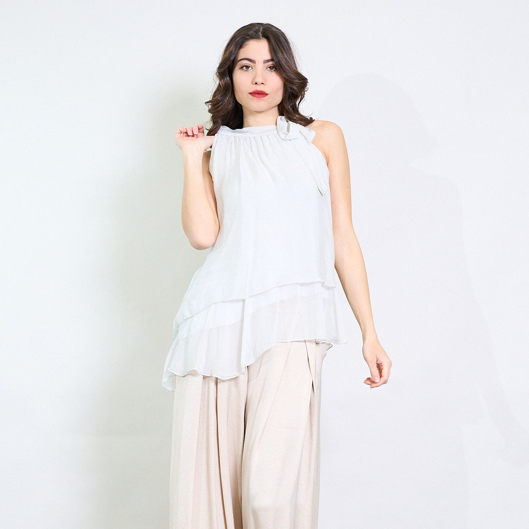 Asymmetrisk ärmlös skiktad chiffongblus med axelbands grossist