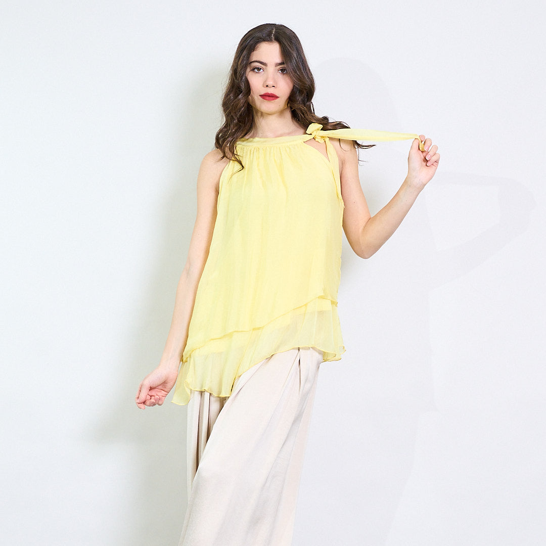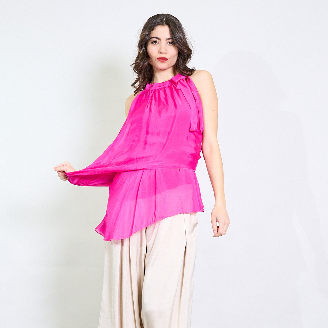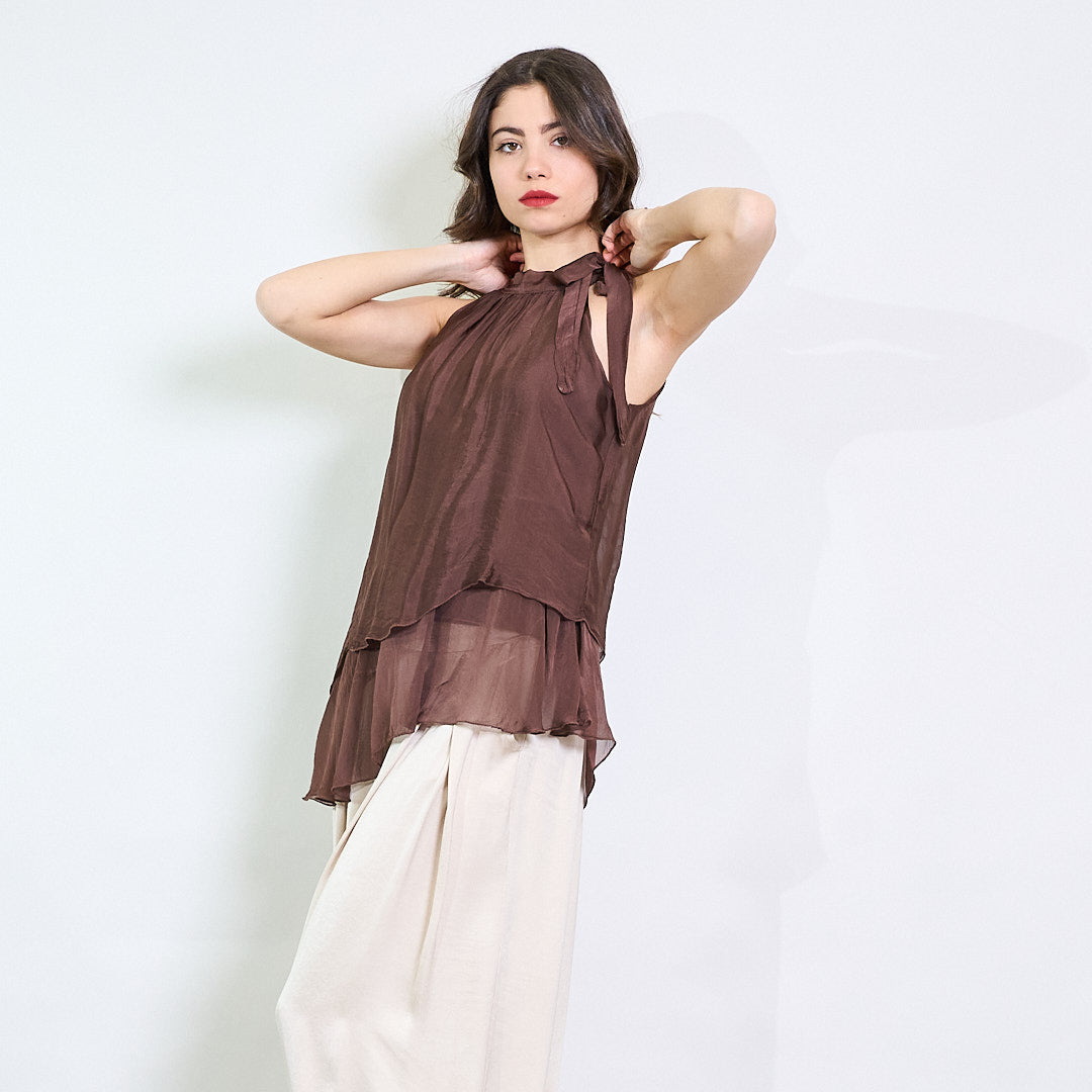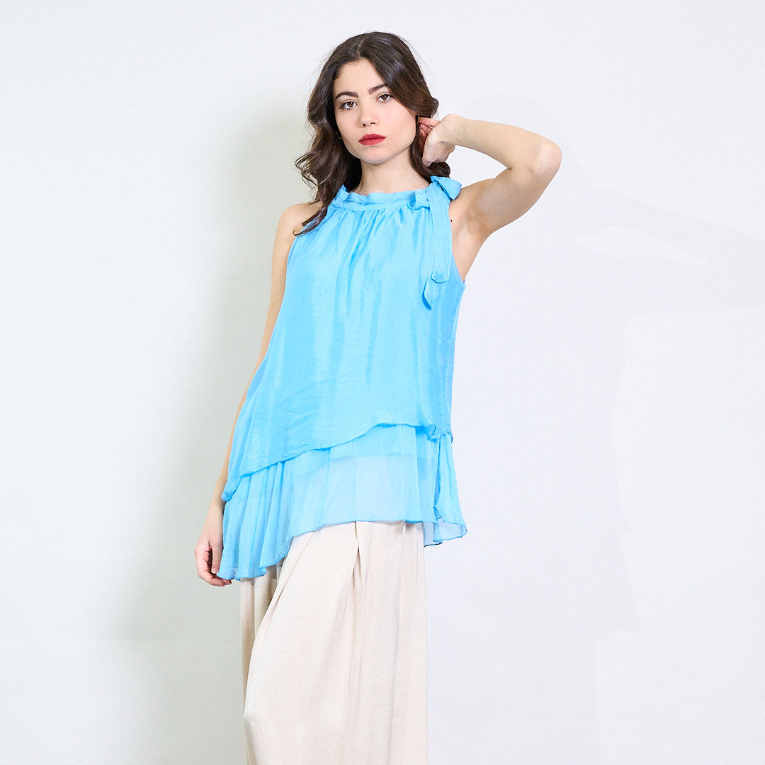 Asymmetrisk ärmlös skiktad chiffongblus med axelbands grossist