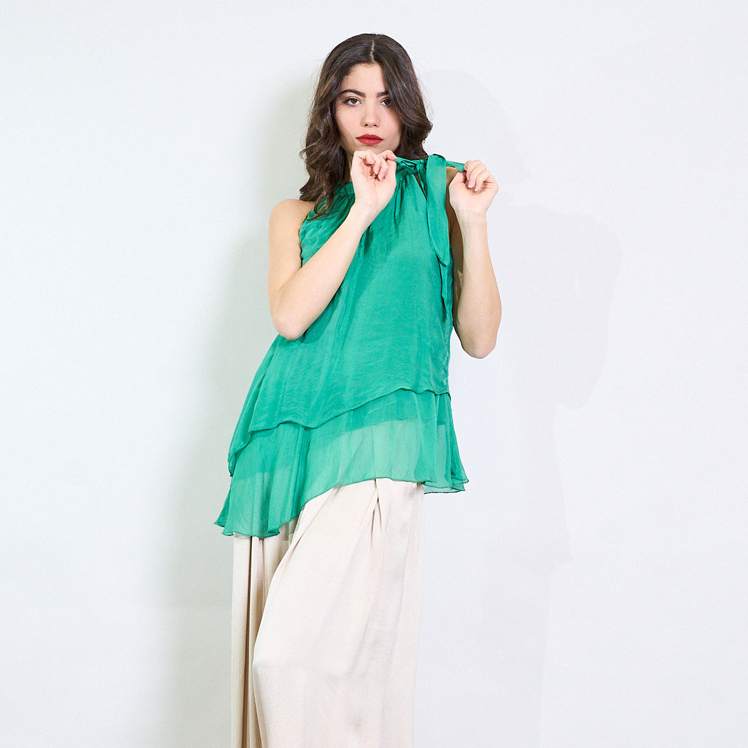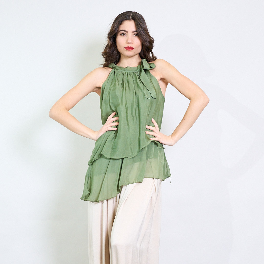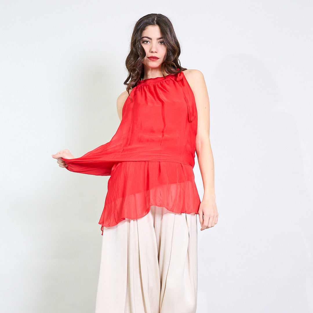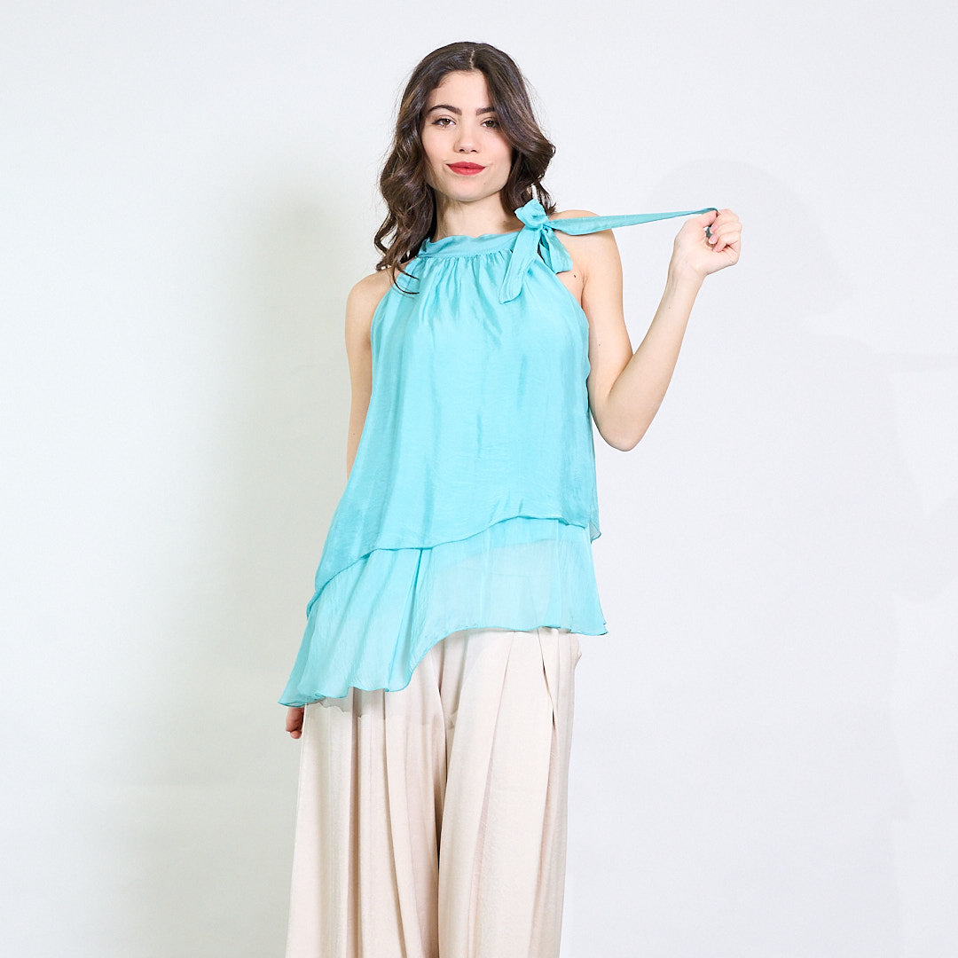 Asymmetrisk ärmlös skiktad chiffongblus med axelbands grossist
