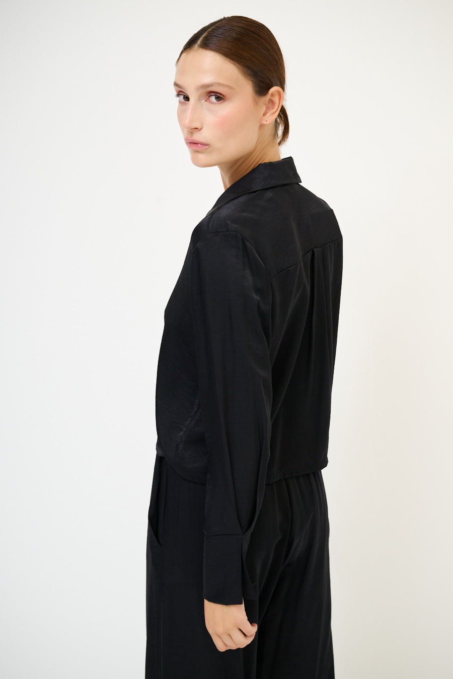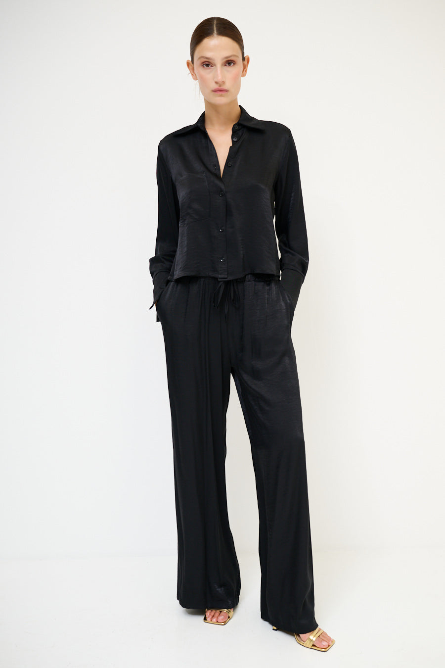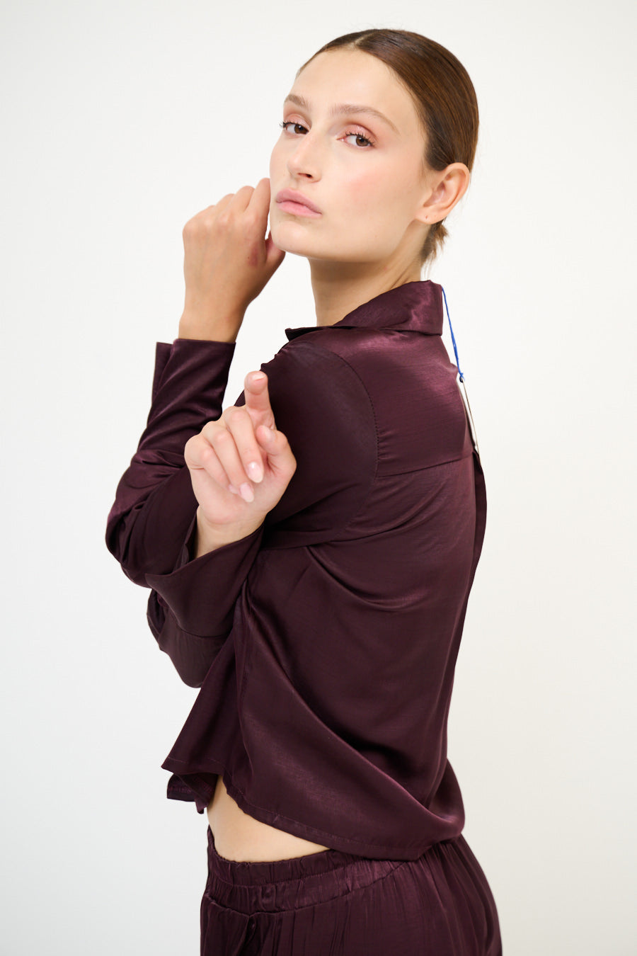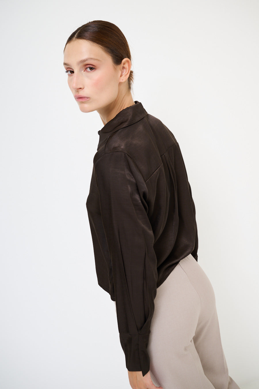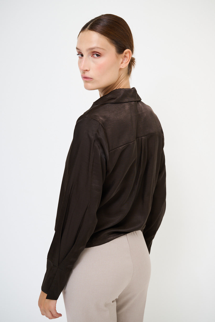 Glossy Satin-Look Button-Up Shirt med bröstficka grossist