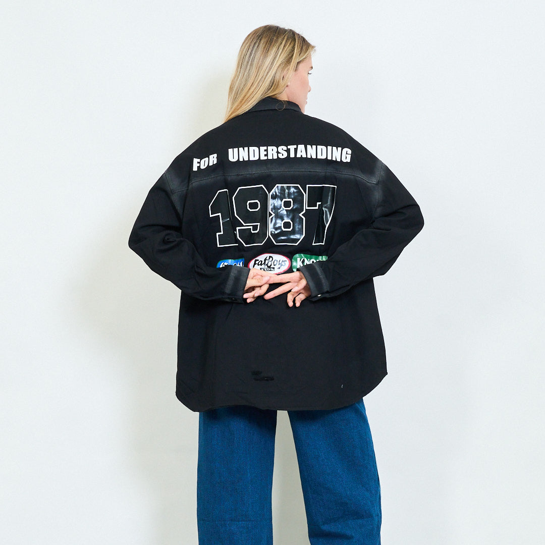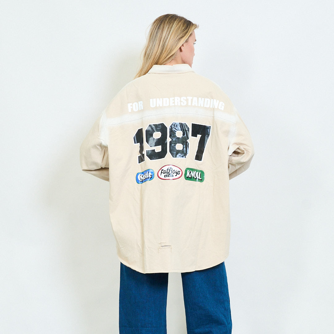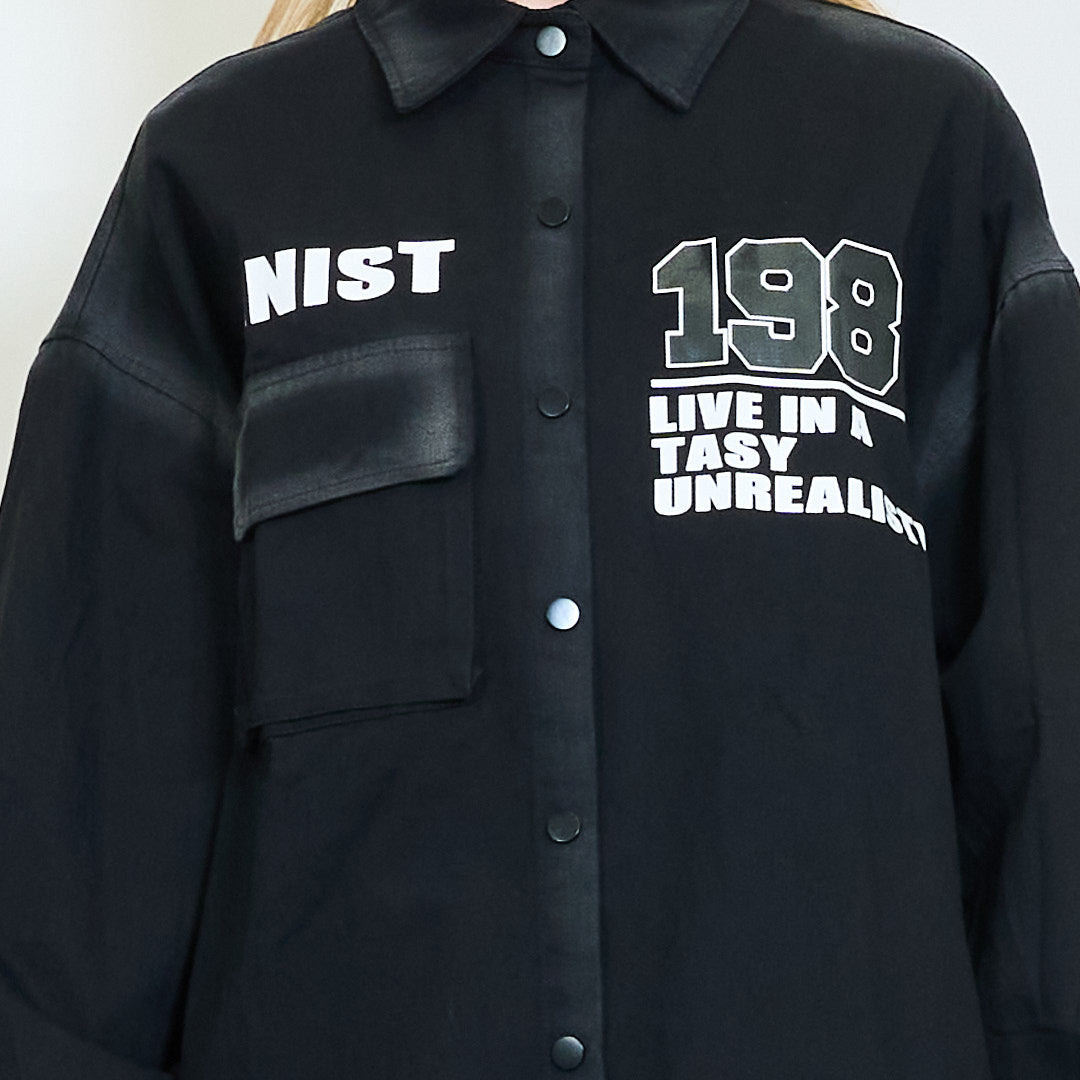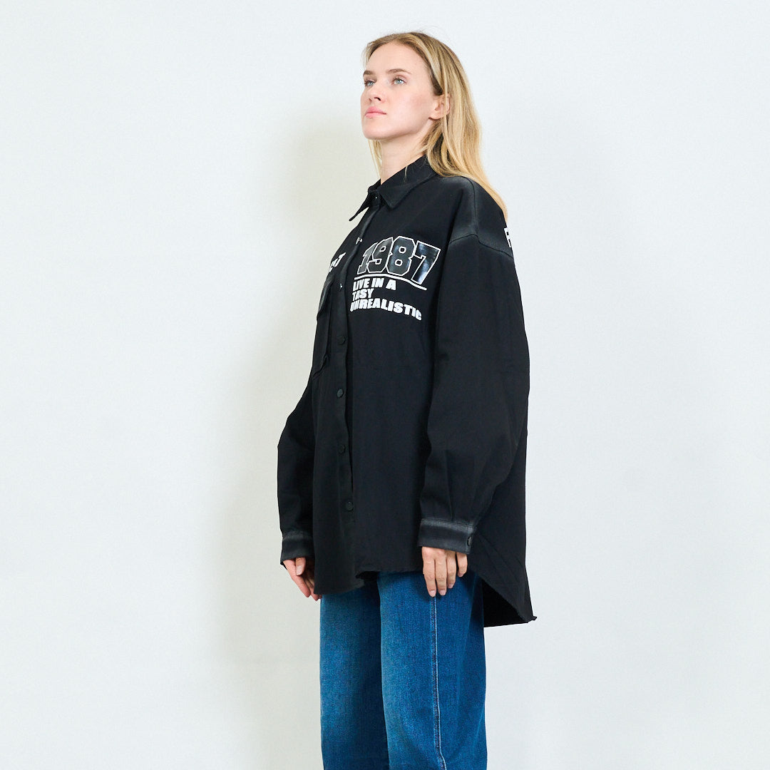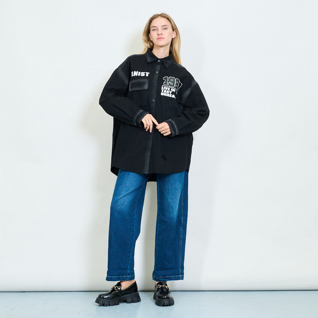 - Överdimensionerad skjorta med djärv grafisk text och nummertryck