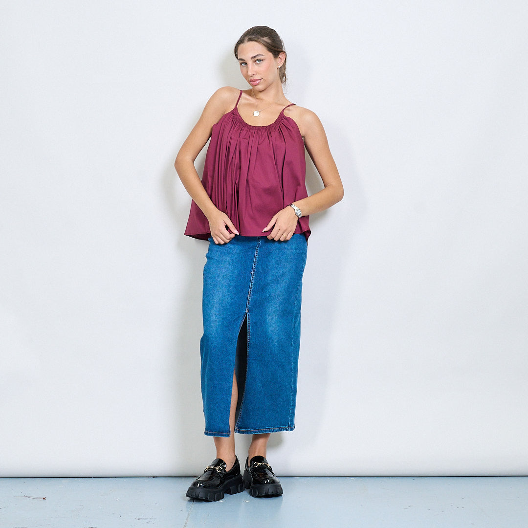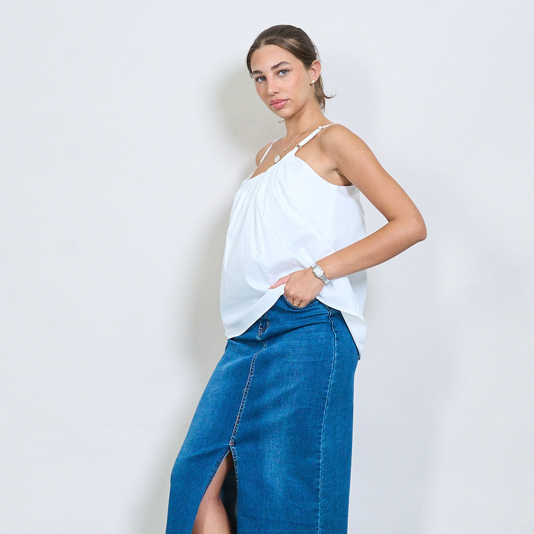 - Lätt bomull Cami med en avslappnad, luftig passform