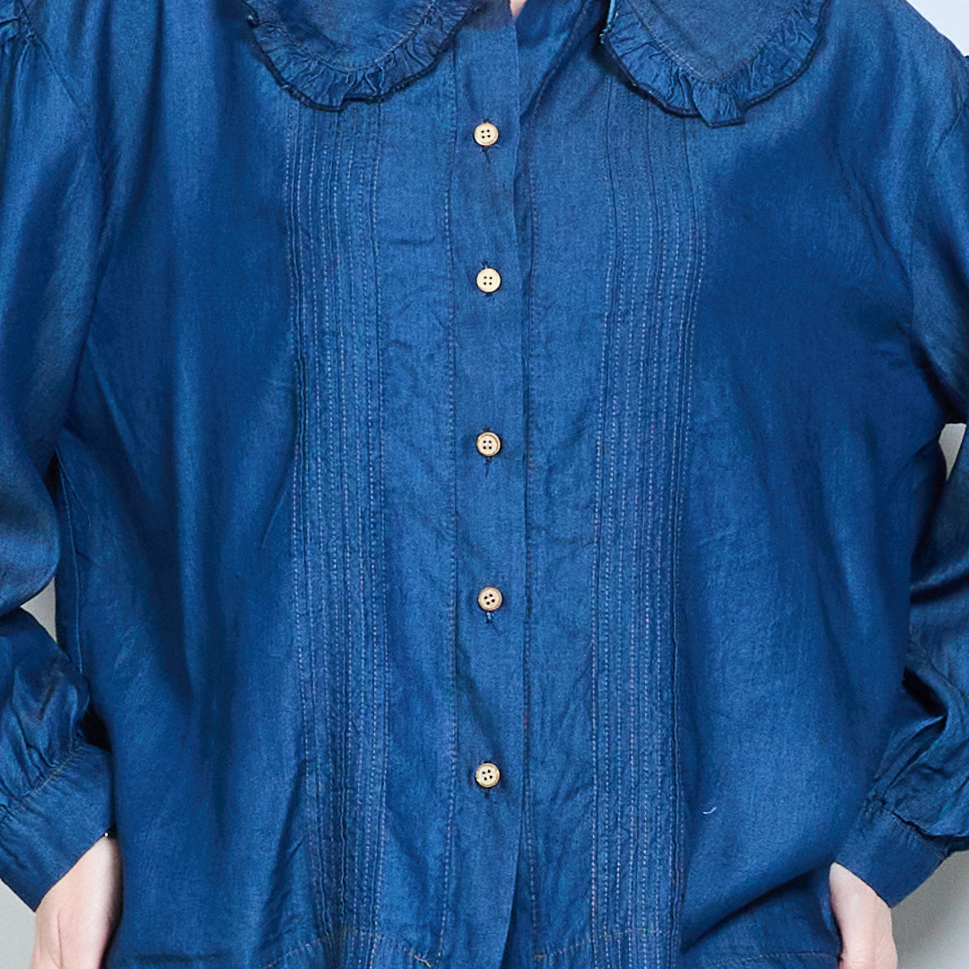 - Volangdetalj i kragen ger ett mjukt och feminint uttryck