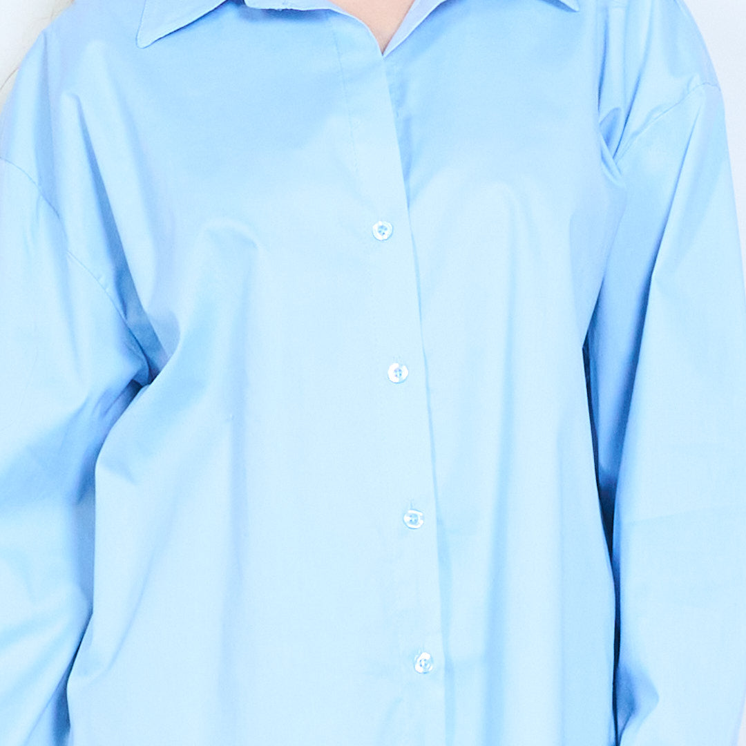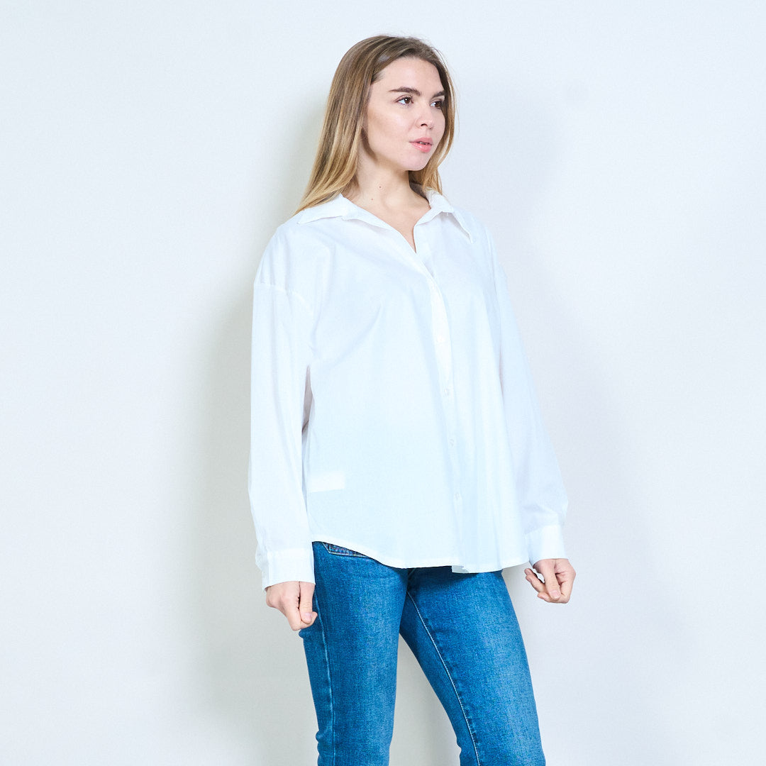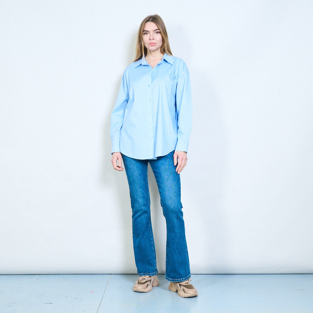 Avslappnad silhuett långärmad ren framtill vardagsskjorta i grossistledet