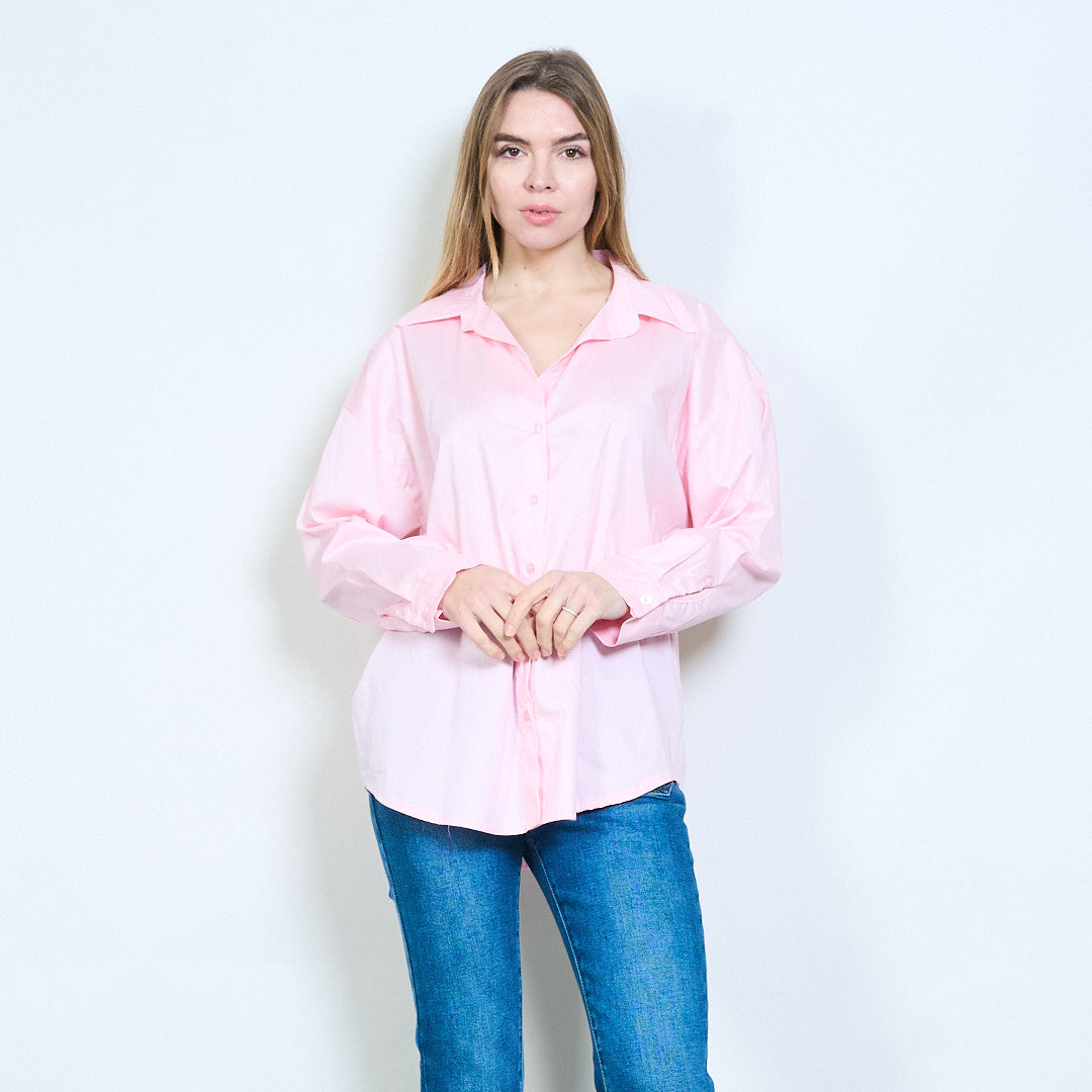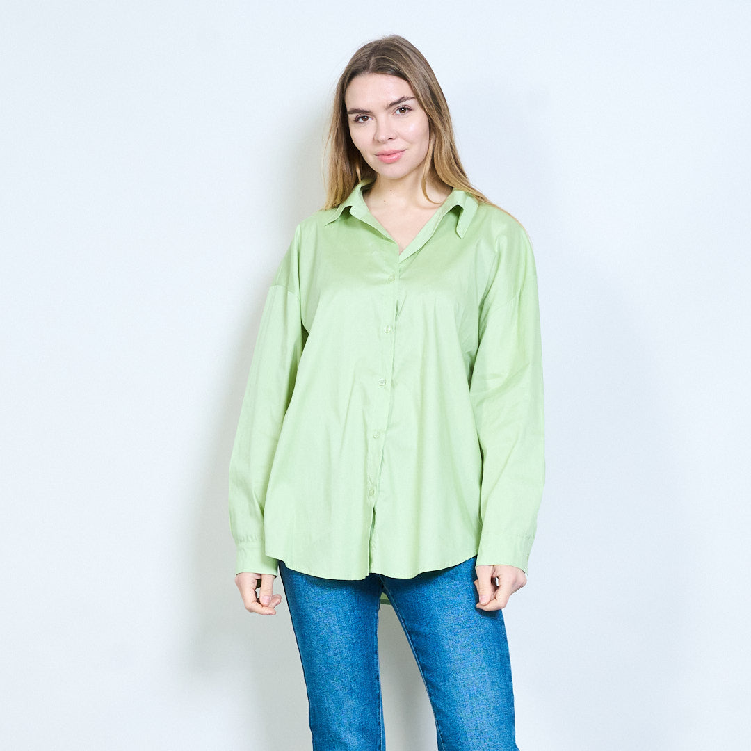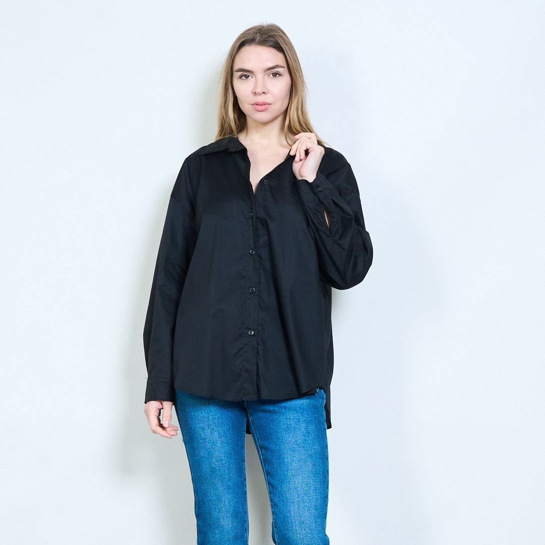 Avslappnad silhuett långärmad ren framtill vardagsskjorta i grossistledet