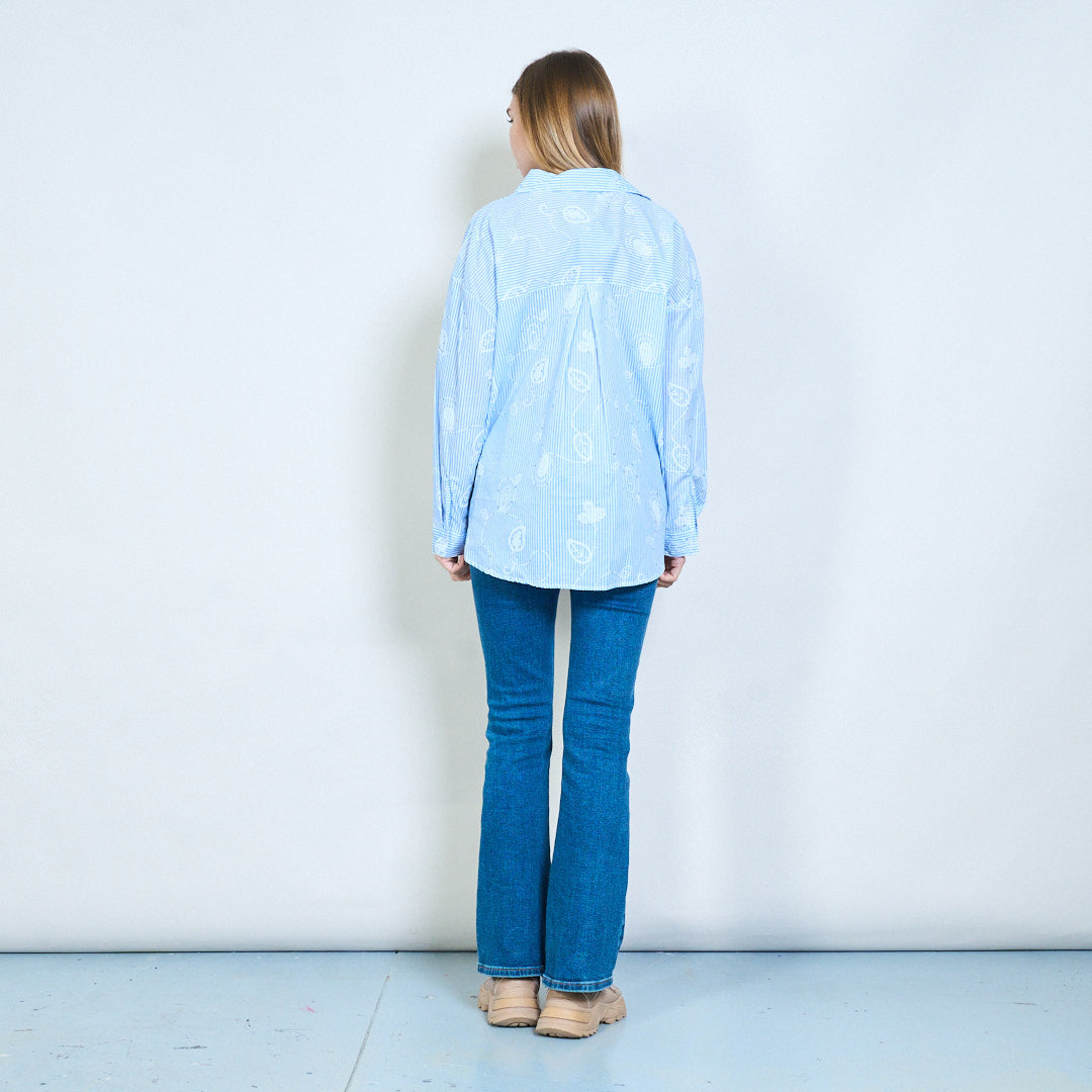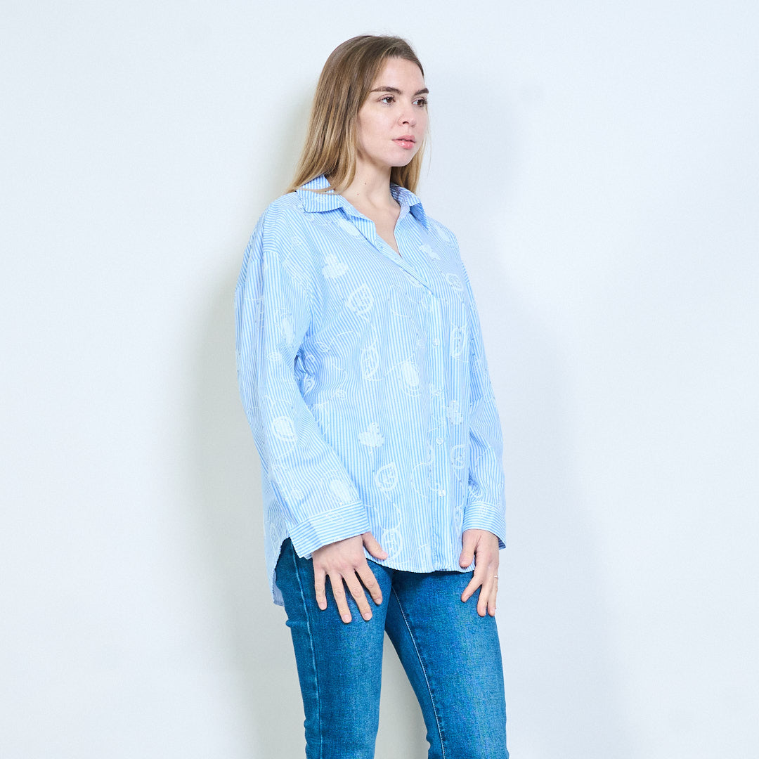 Illustrerad grafisk randig långärmad skjorta med öppen krage