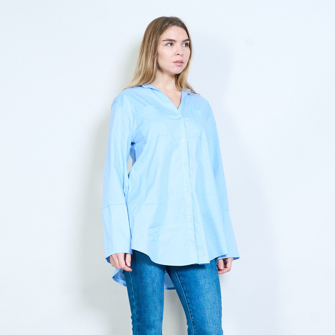 Klassisk krage med dubbla fickor avslappnad långärmad skjorta i grossistledet