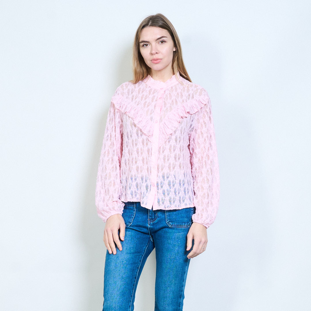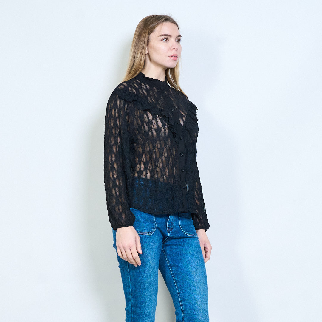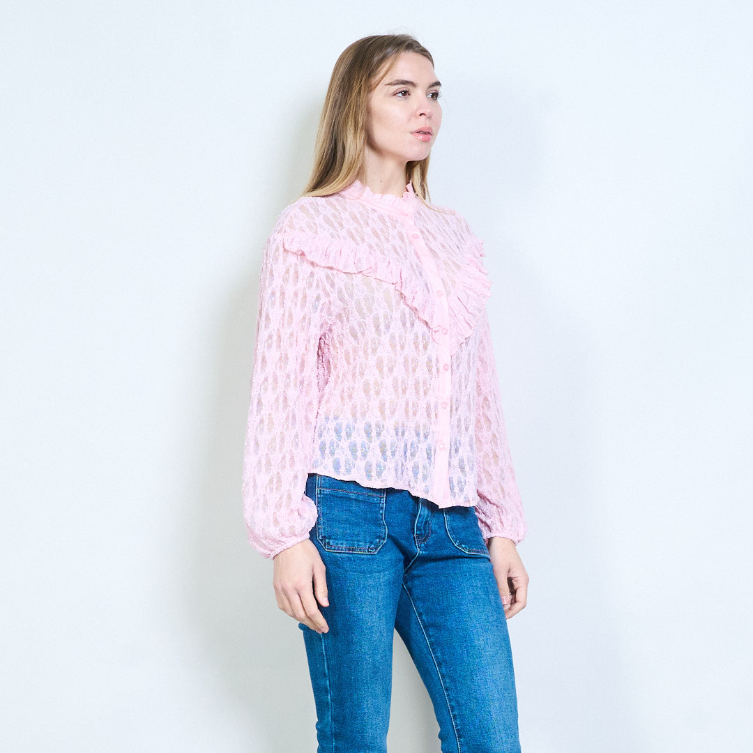 Texturerad blommig spets med volangkant långärmad blus i grossistledet
