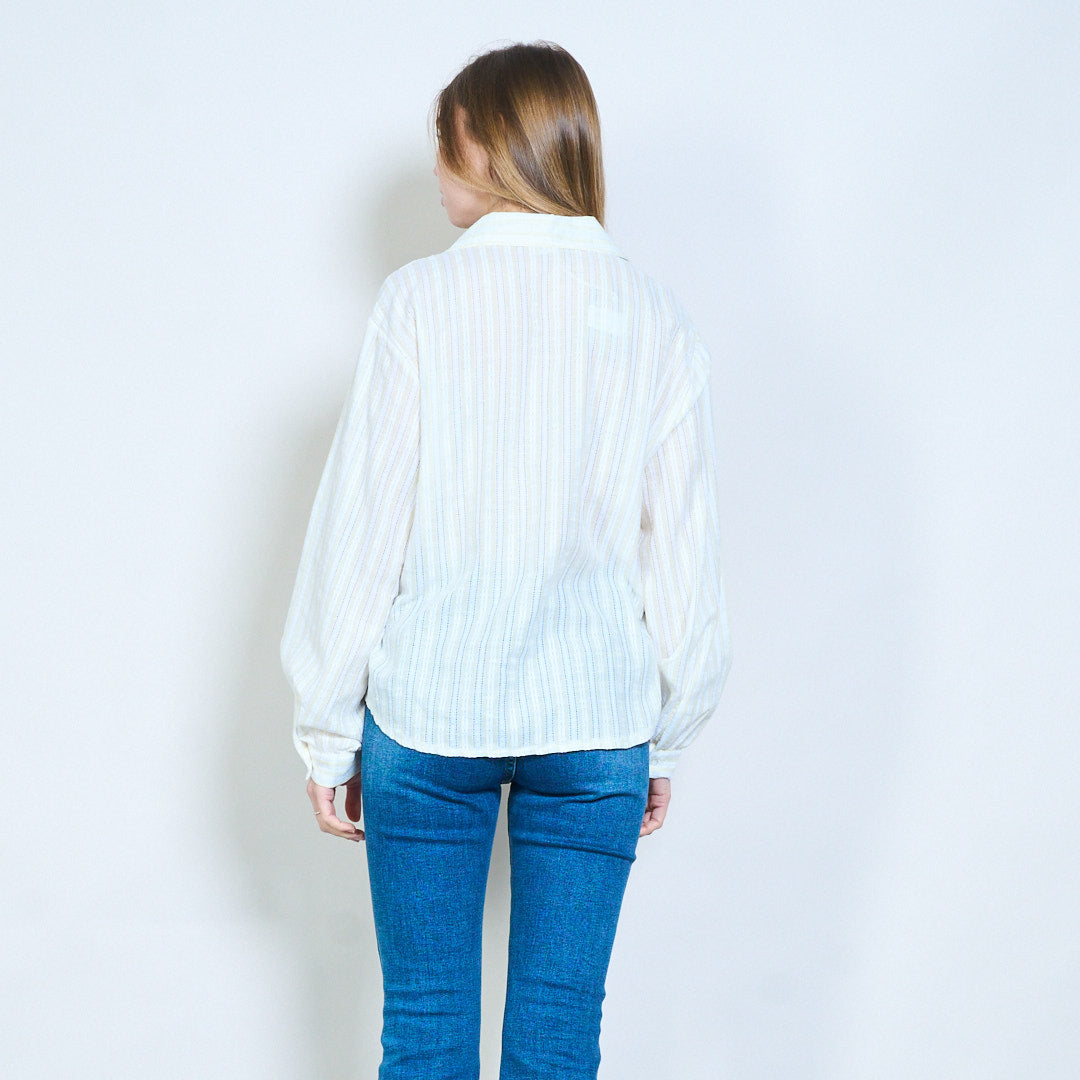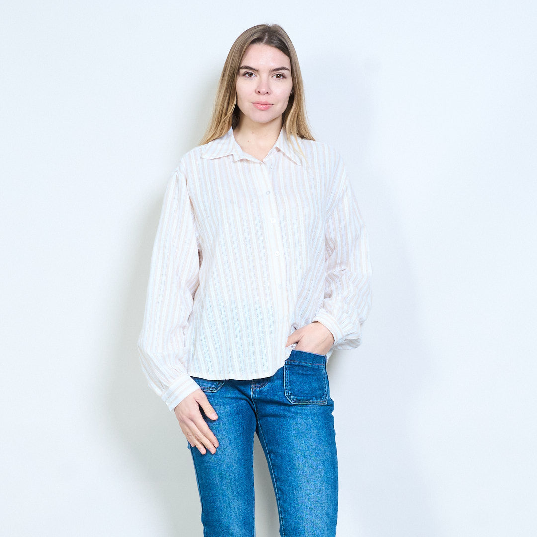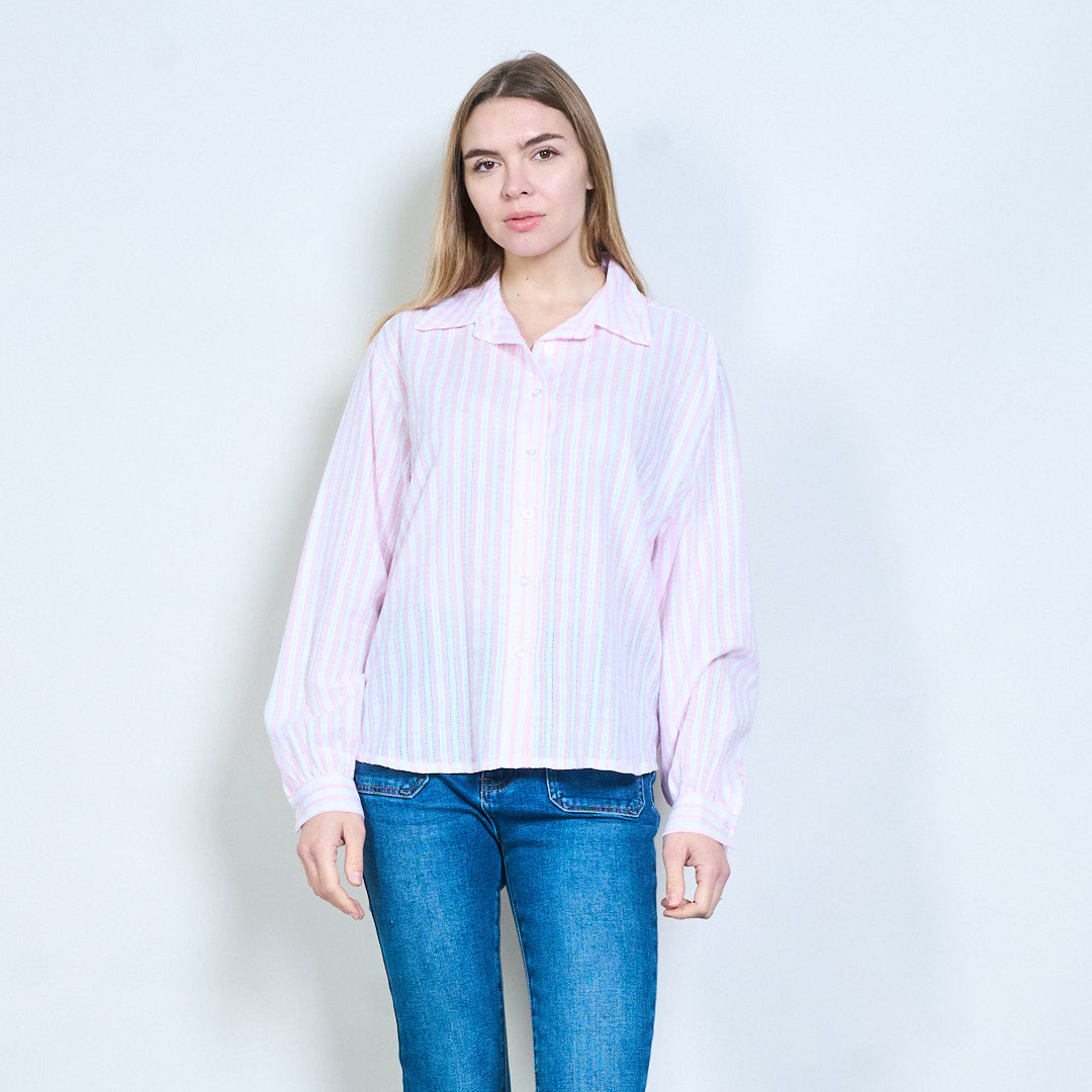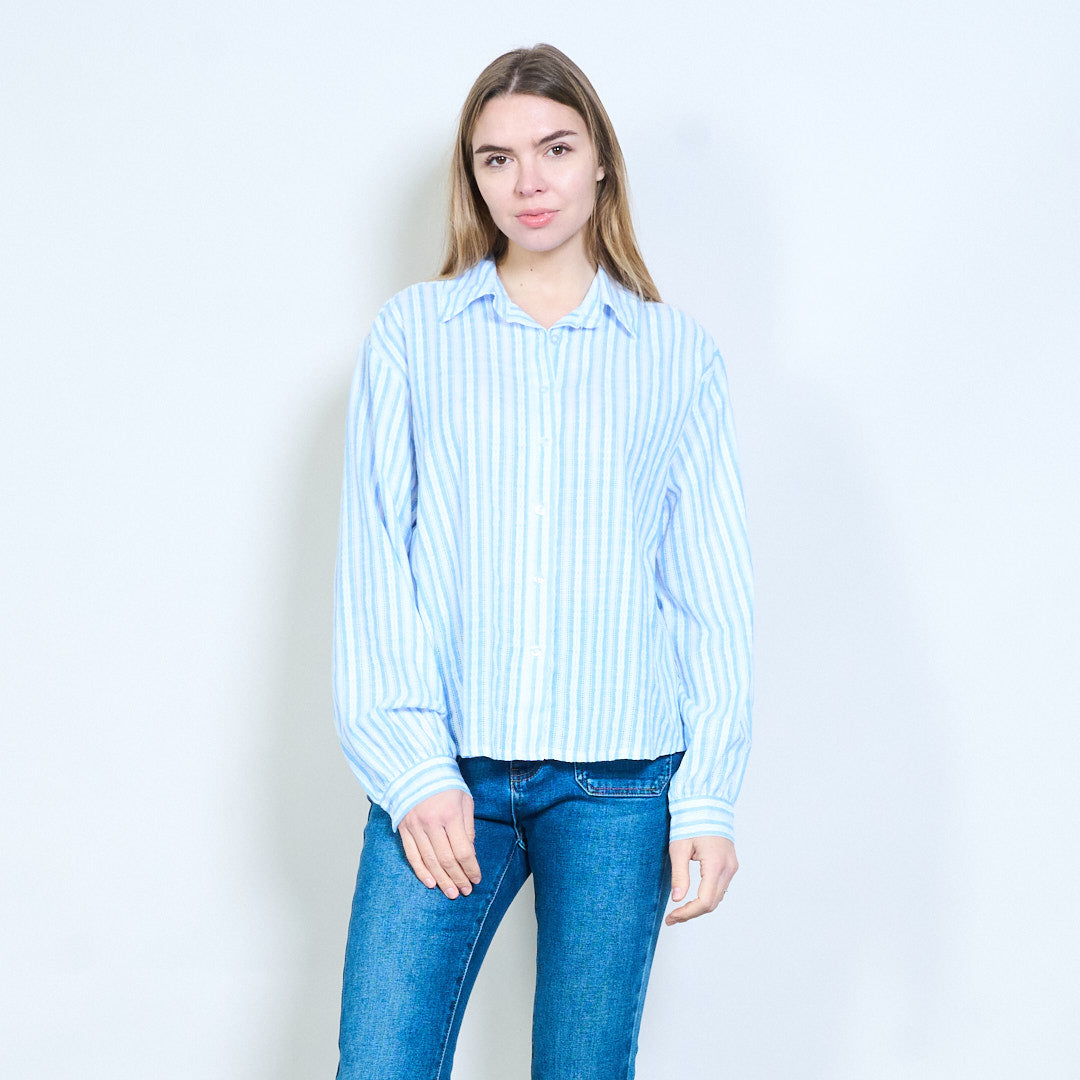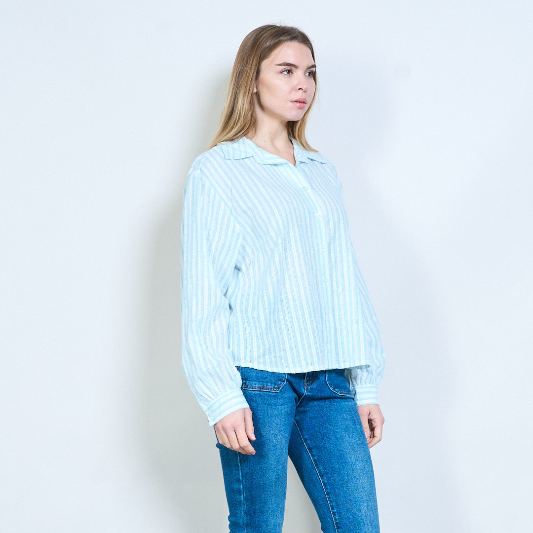 Texturerad vertikal randig långärmad blus med öppen krage i grossistledet