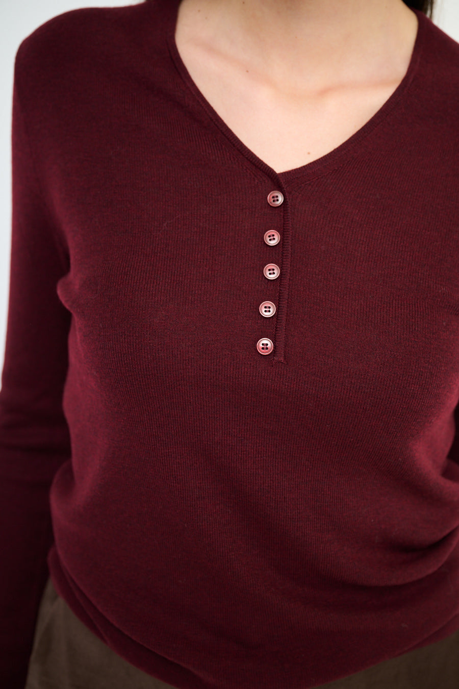V-ringningsknappdetalj långärmad stickad topp grossist