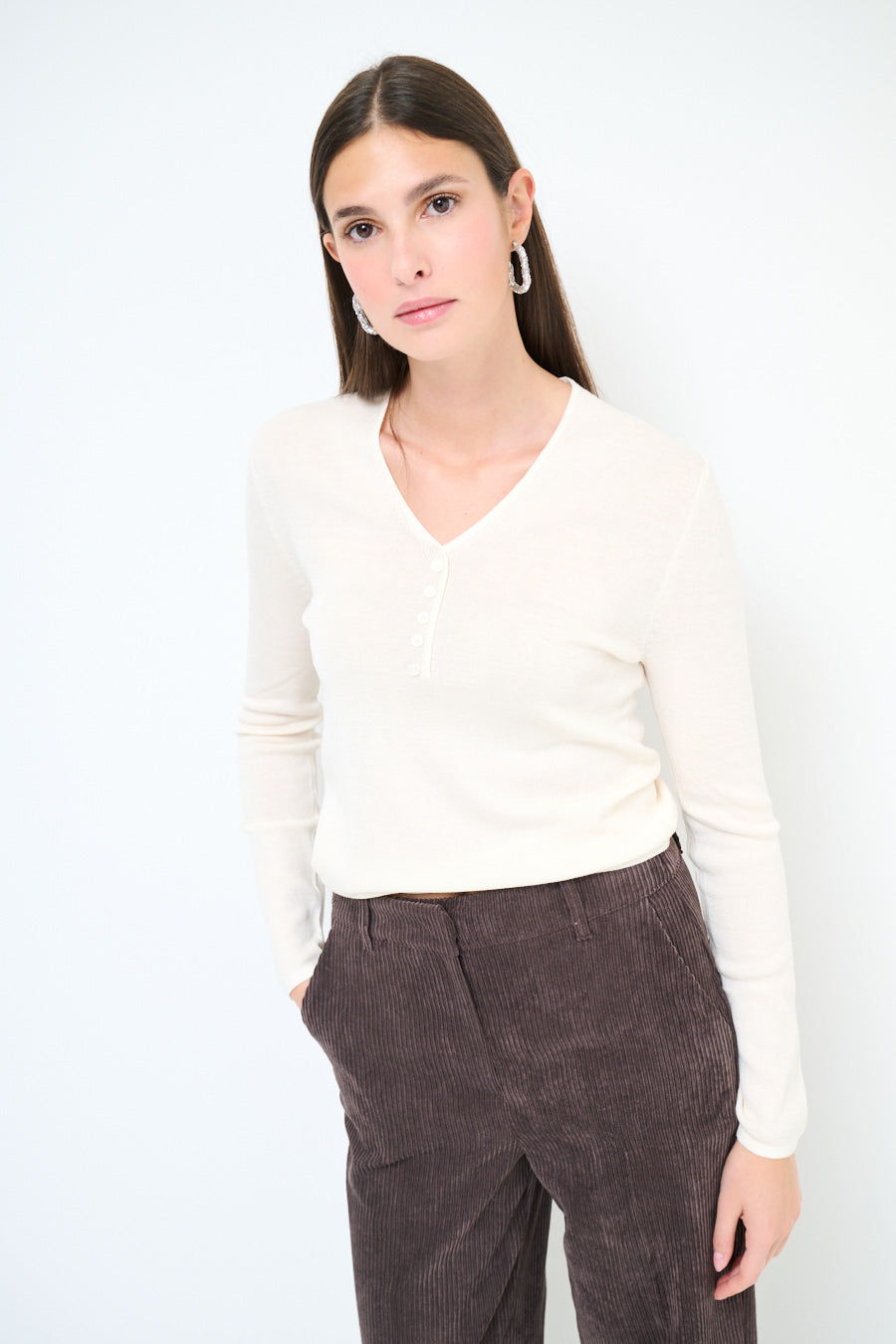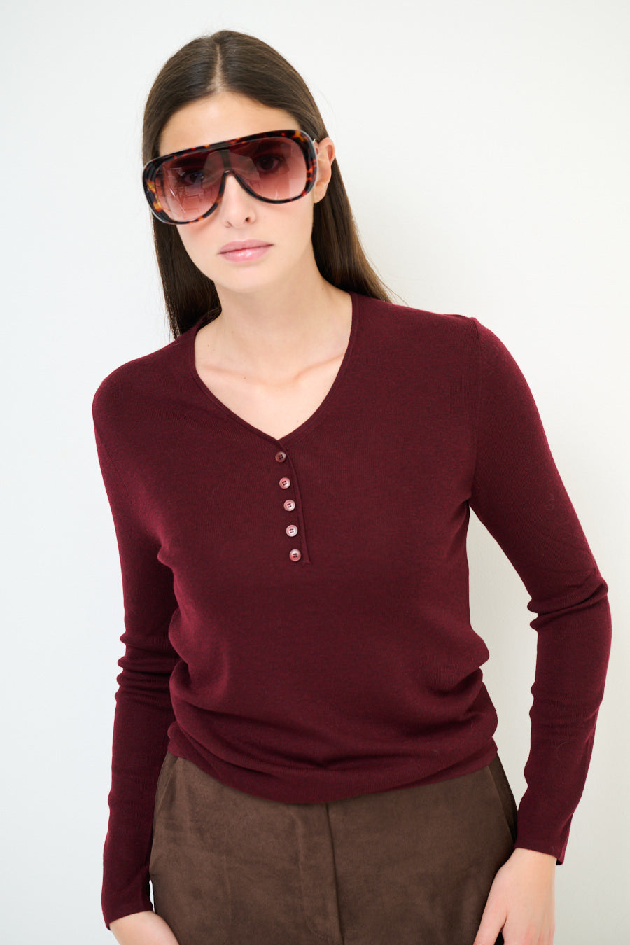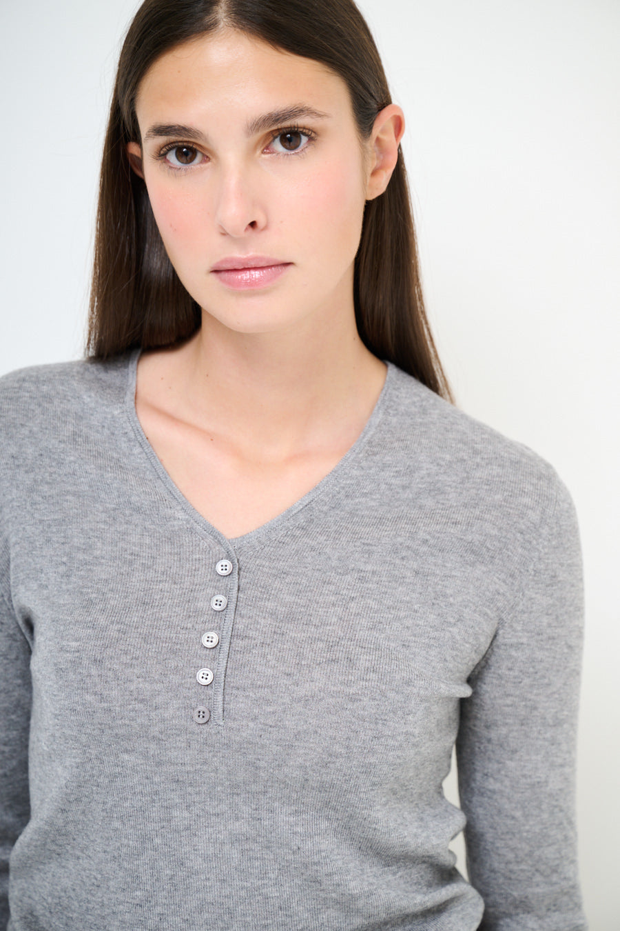 - Elegant V-hals med framknappdetaljer