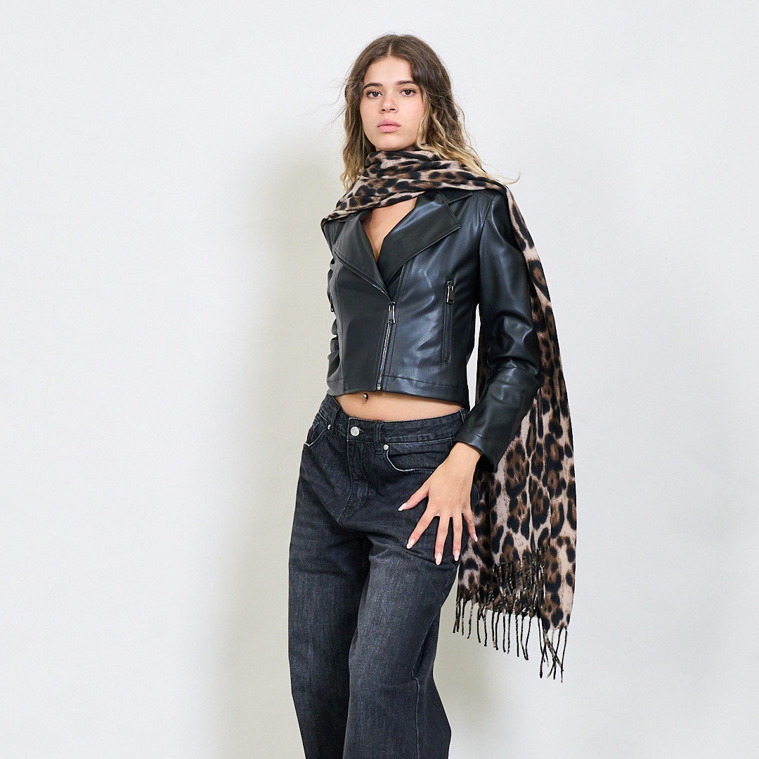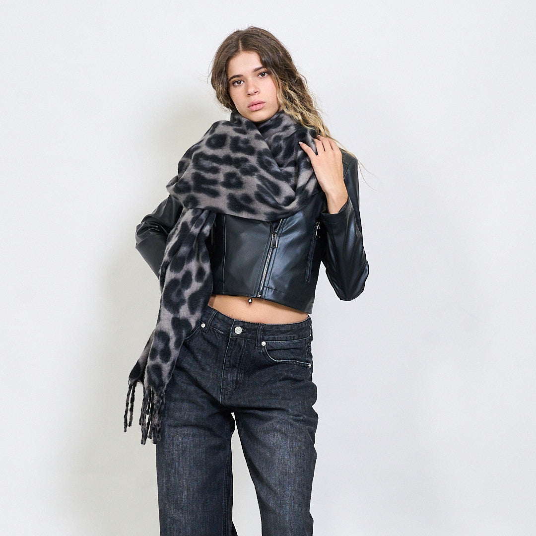 Vild själ överdimensionerad leopard fransad halsduk grossist