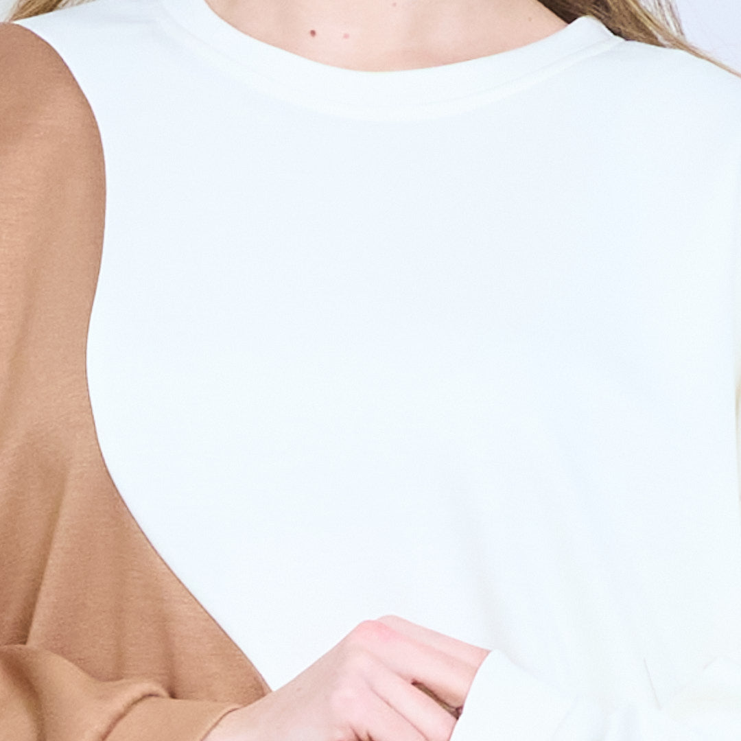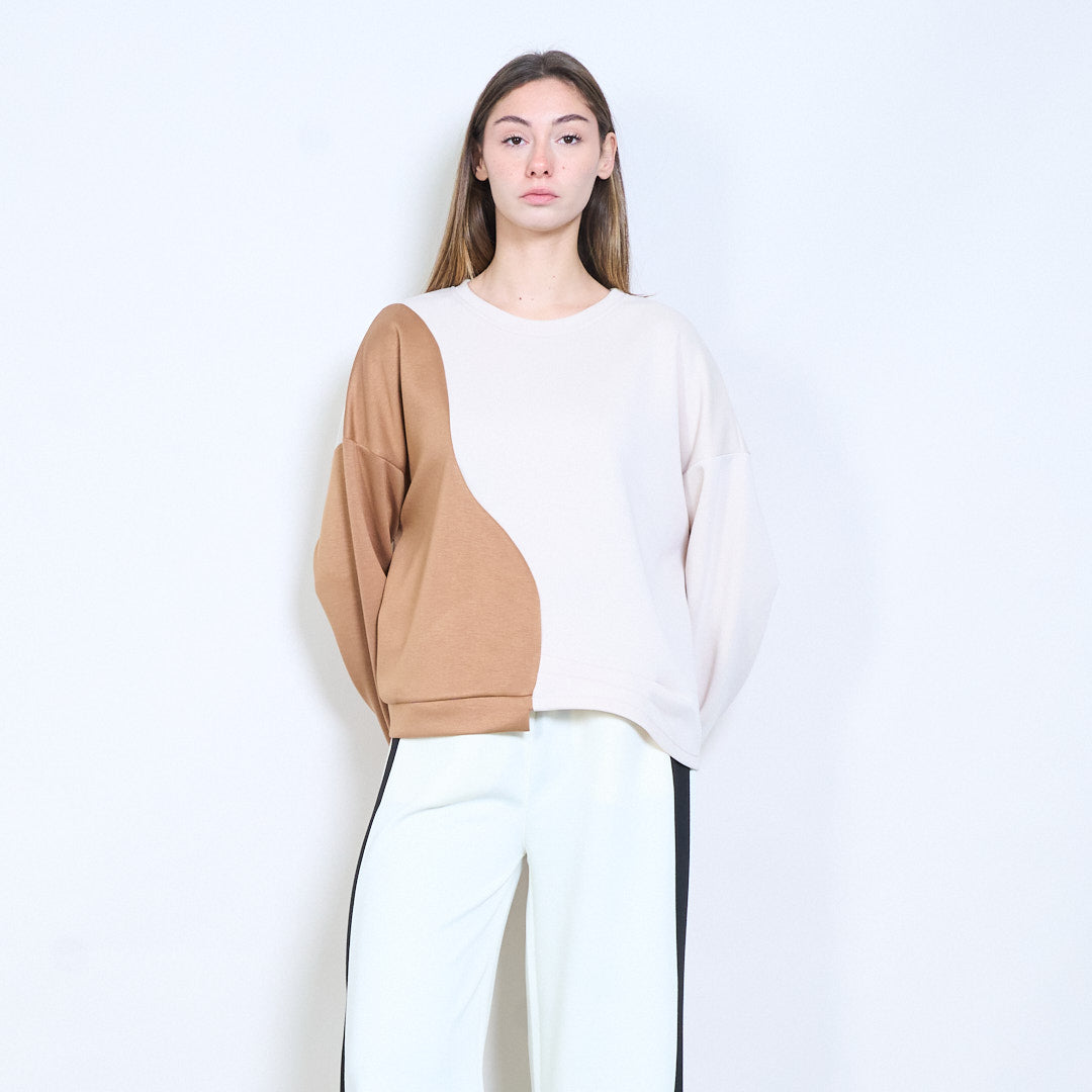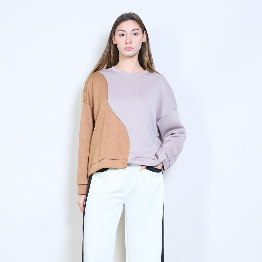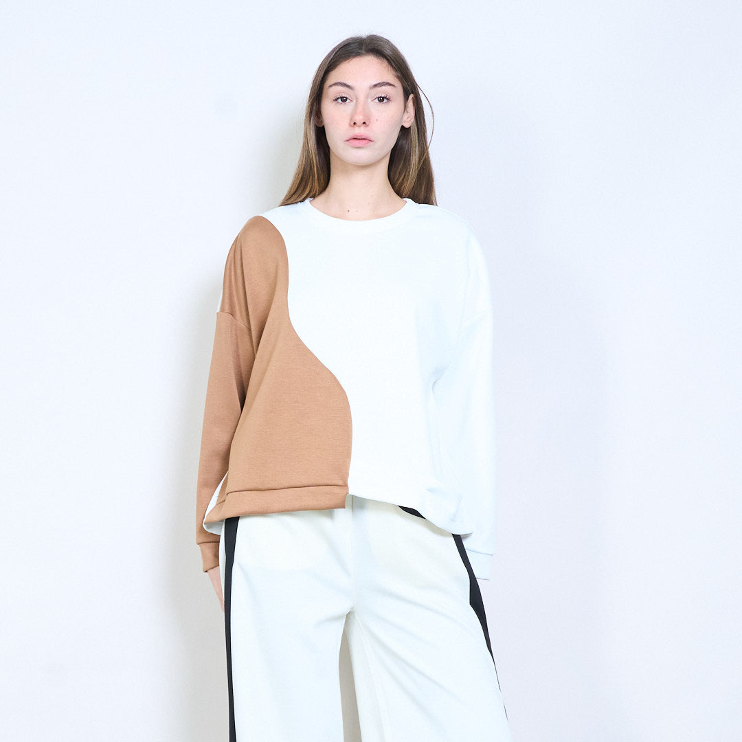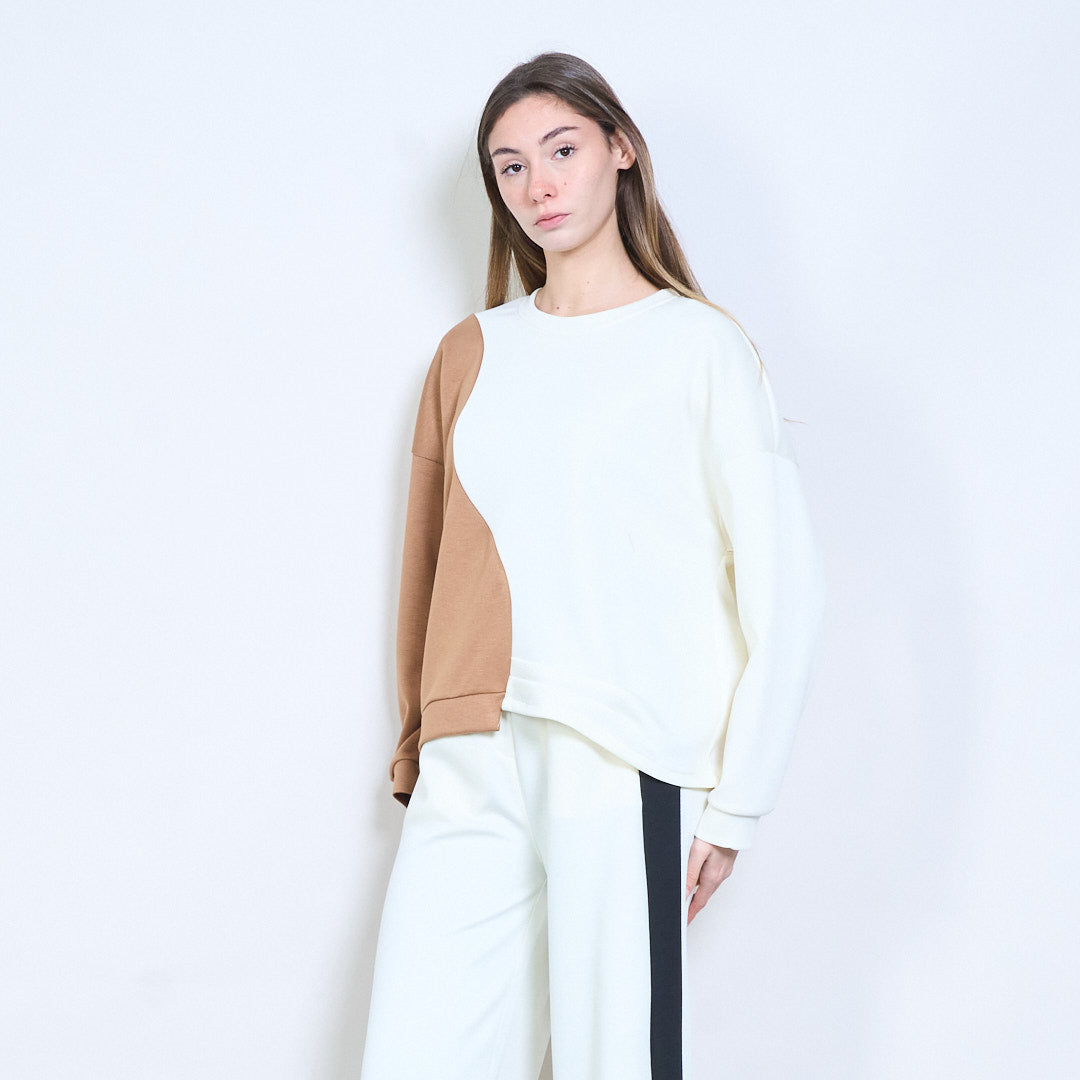 拼接长袖不对称下摆针织上衣批发