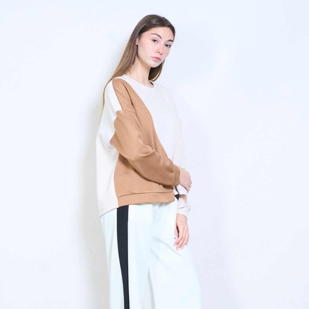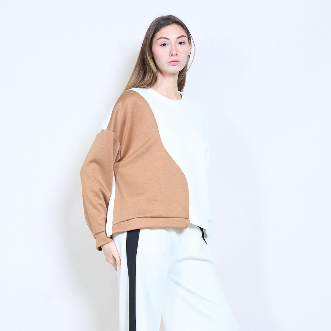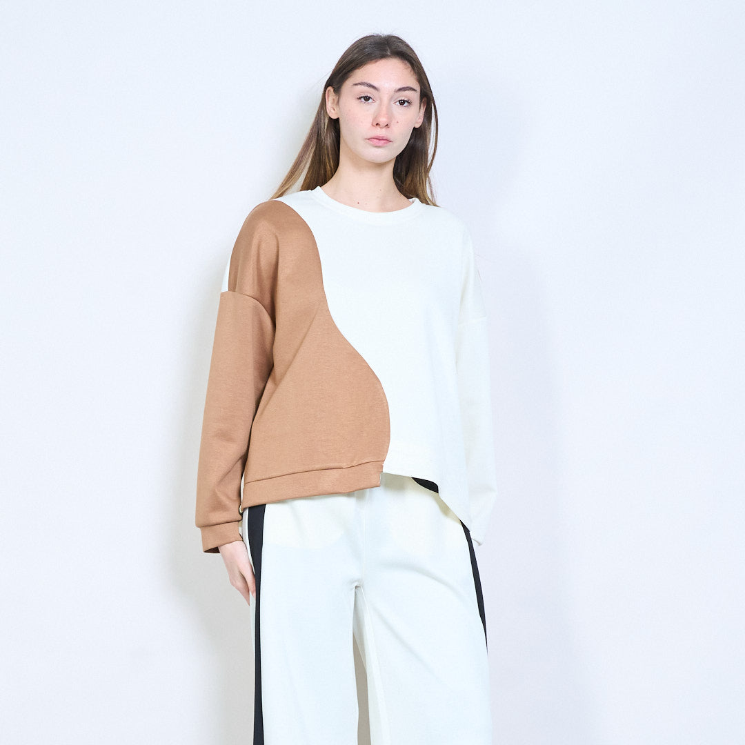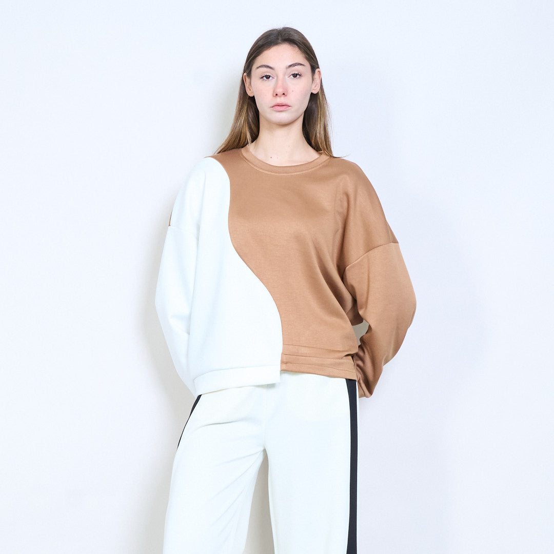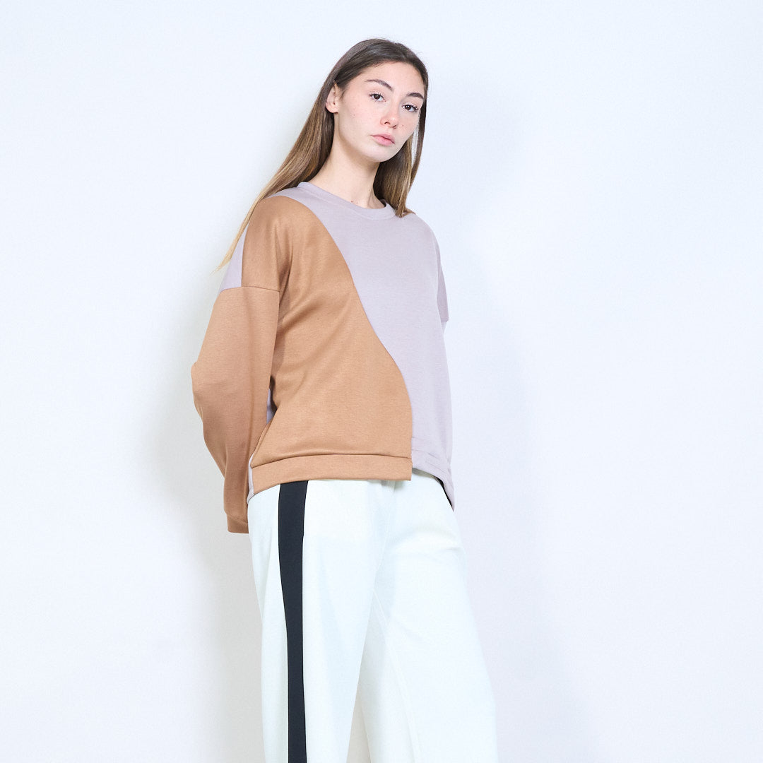 拼接长袖不对称下摆针织上衣批发