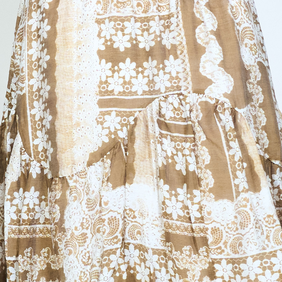 波西米亚拼接花卉中长半身裙批发