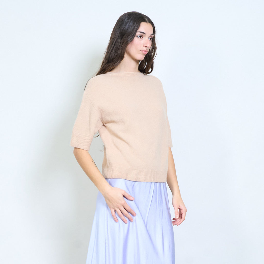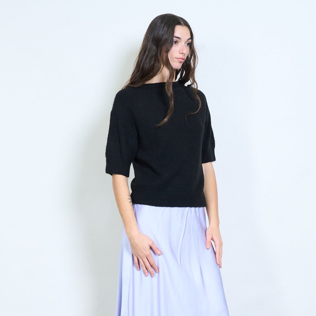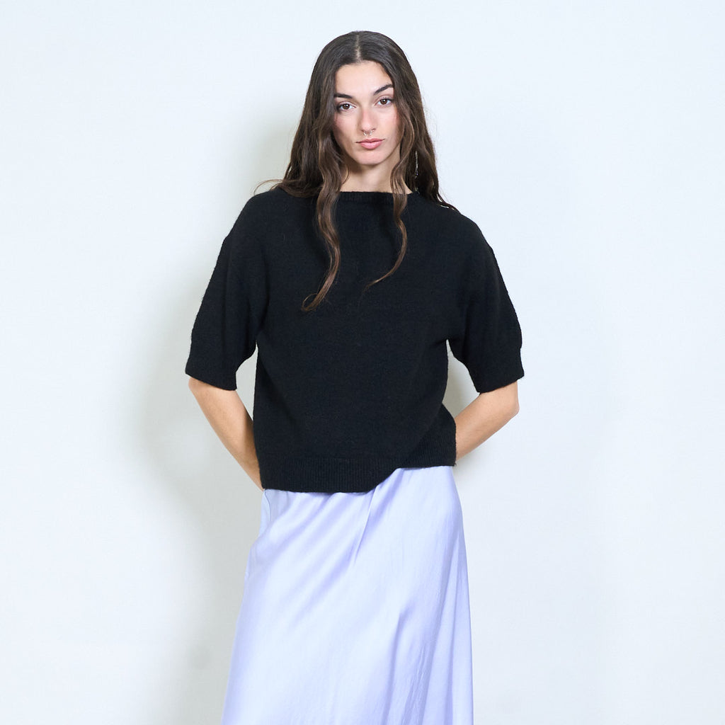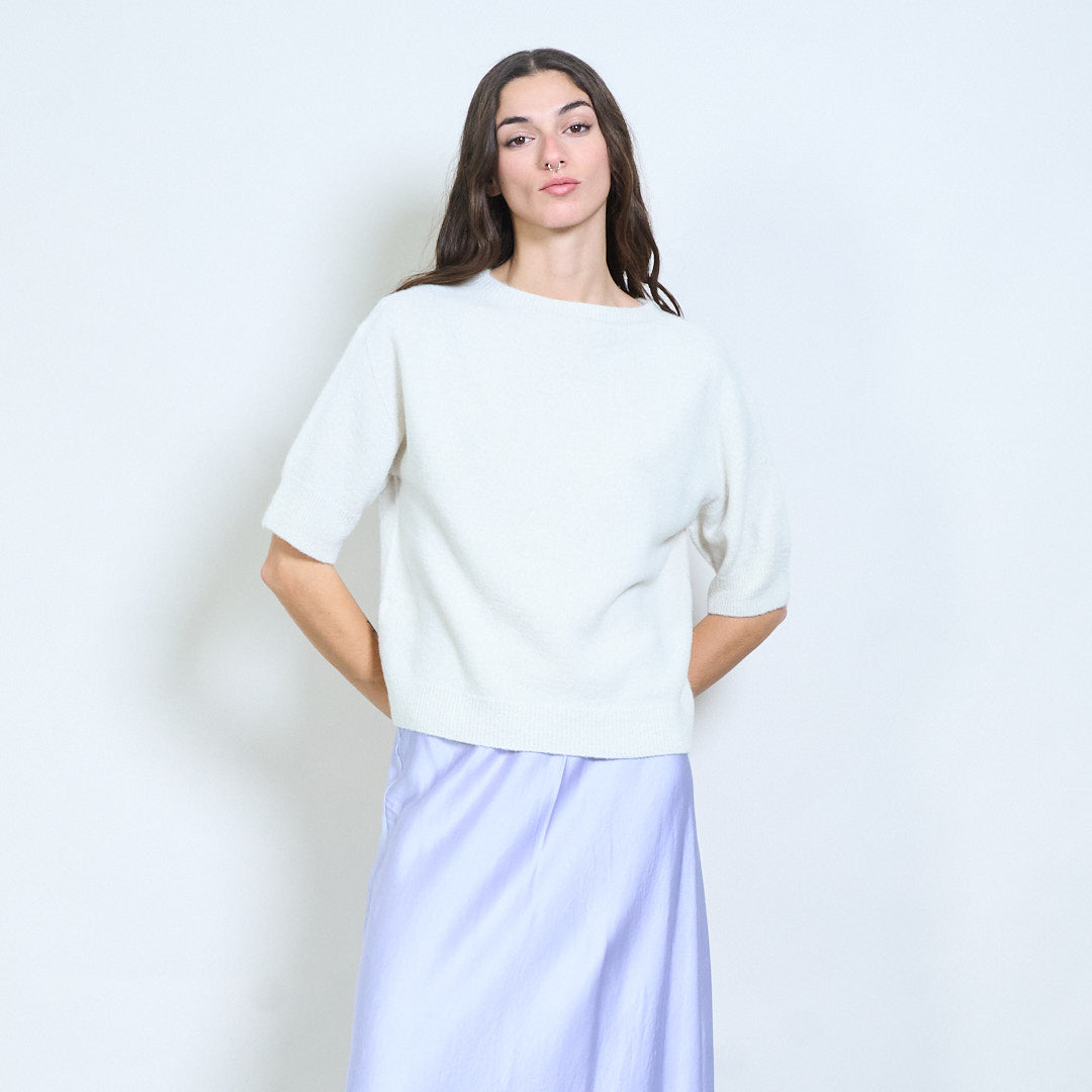 • 领口、下摆和袖子处的罗纹边缘增添了微妙的结构