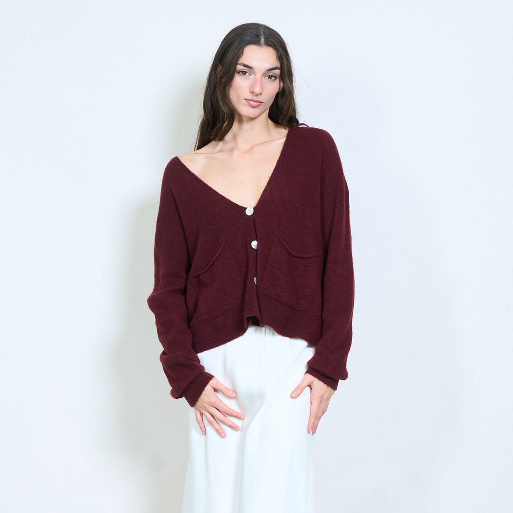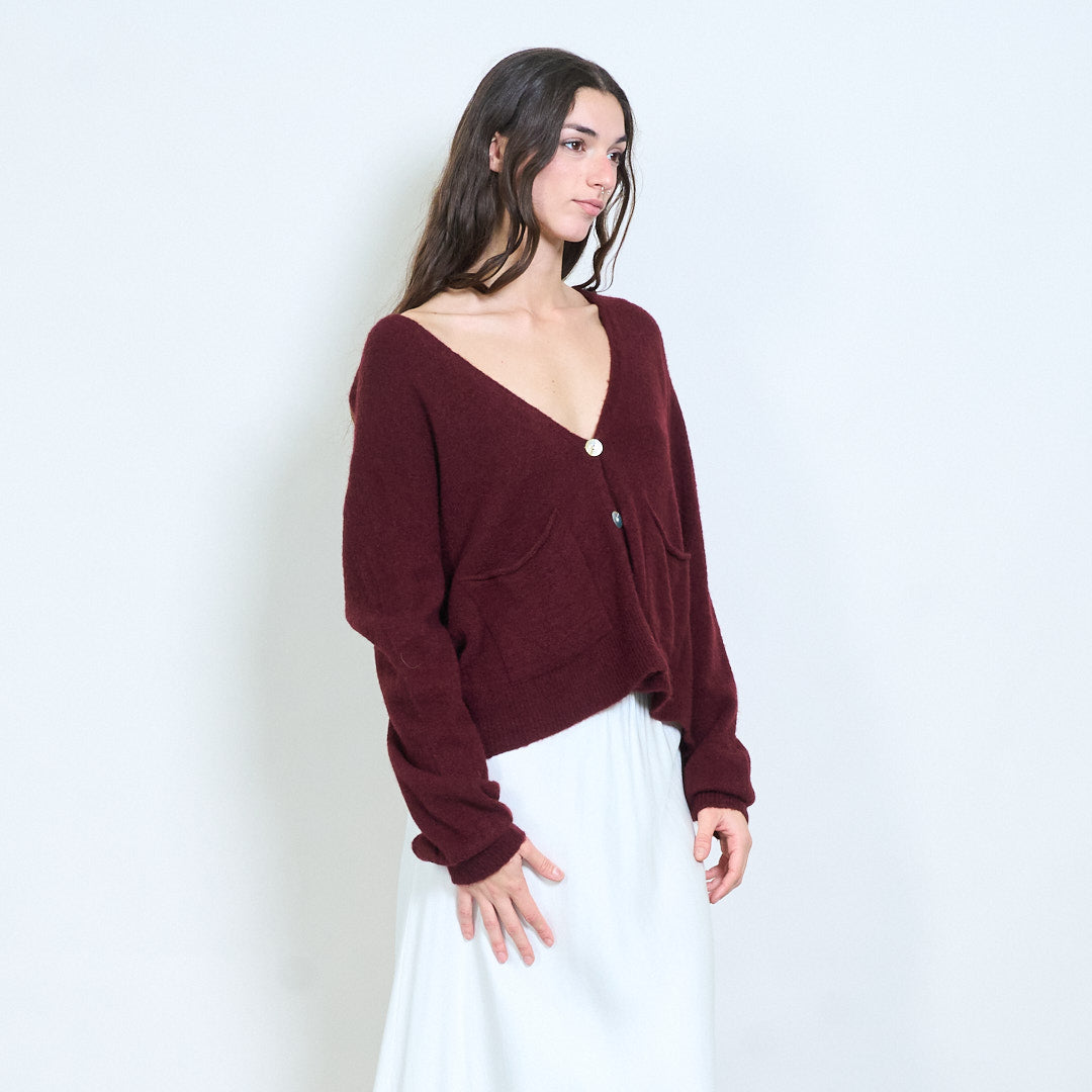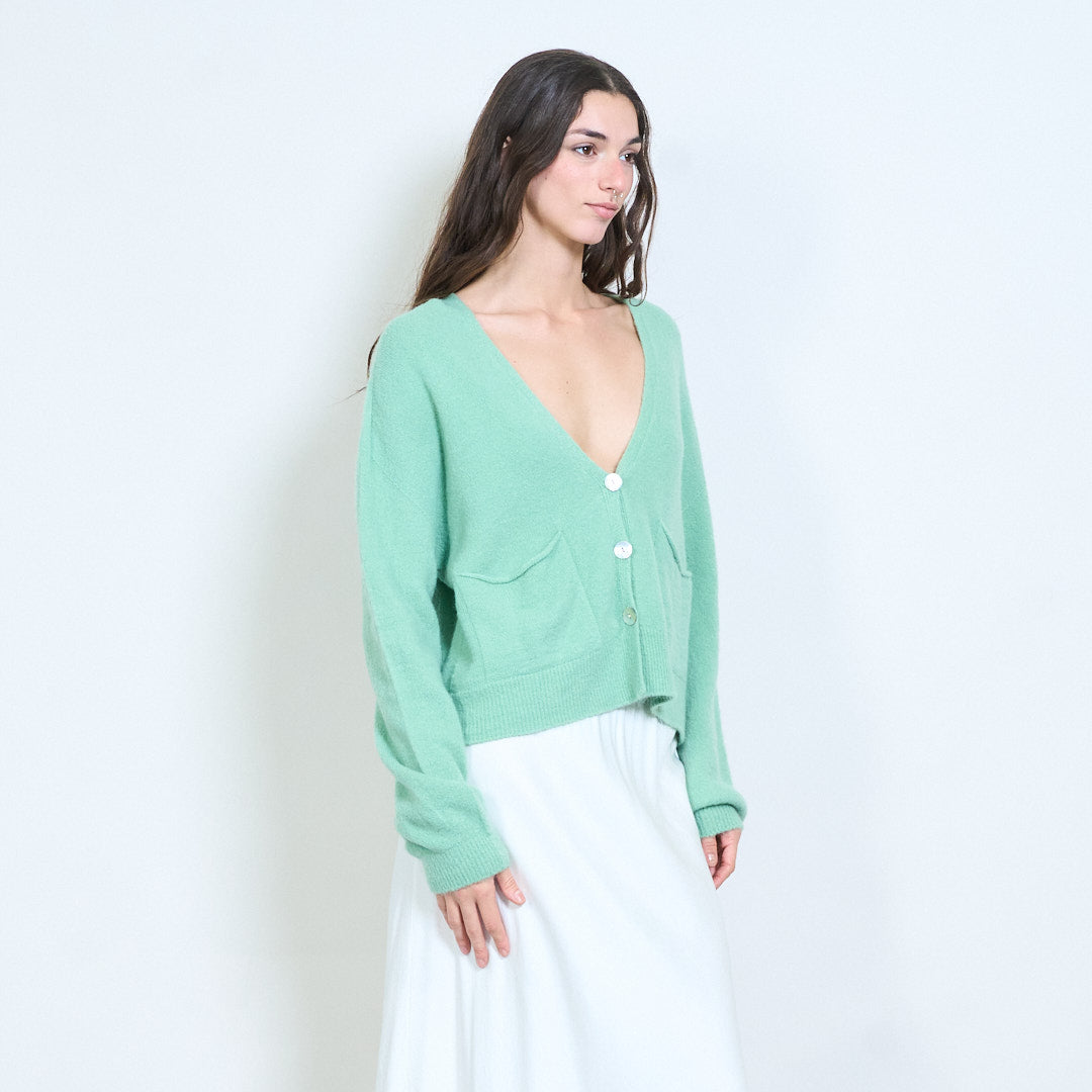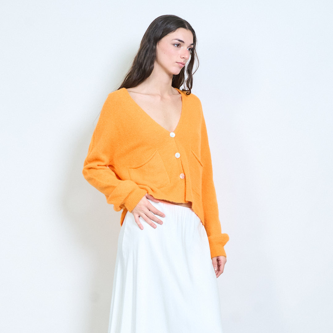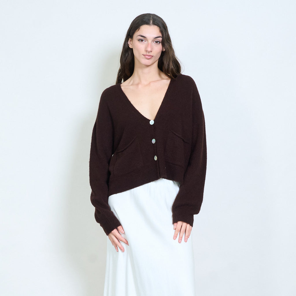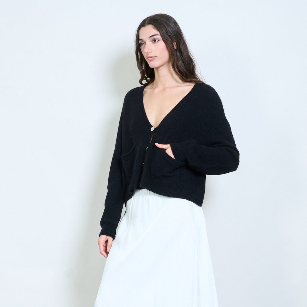 - 采用柔软 V 领设计,增添女性化且易于造型的廓形