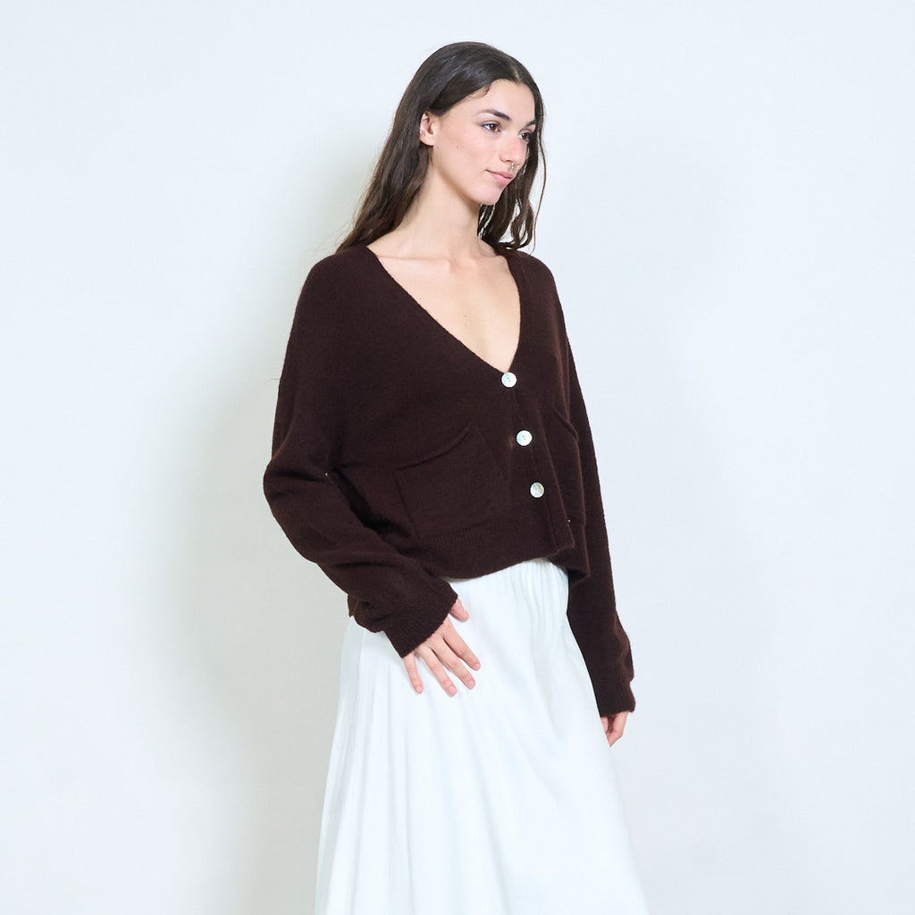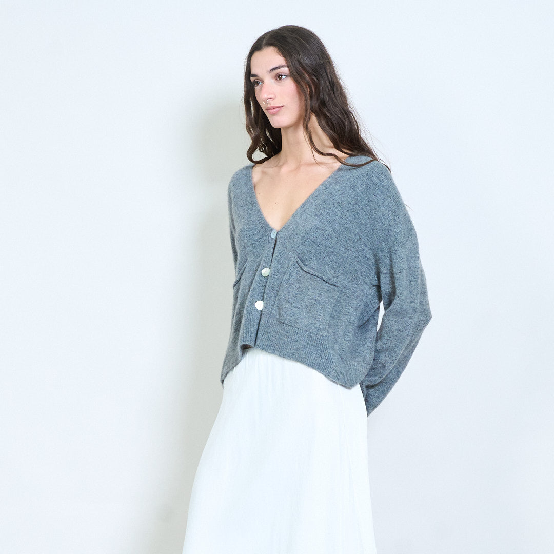 - 前扣采用纽扣闭合,适合从开放叠搭到完全扣合的多种穿着方式