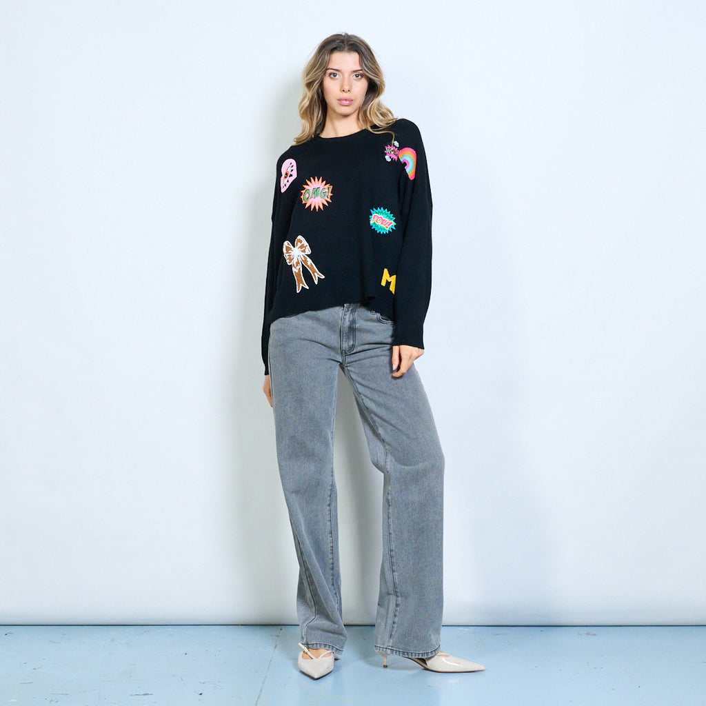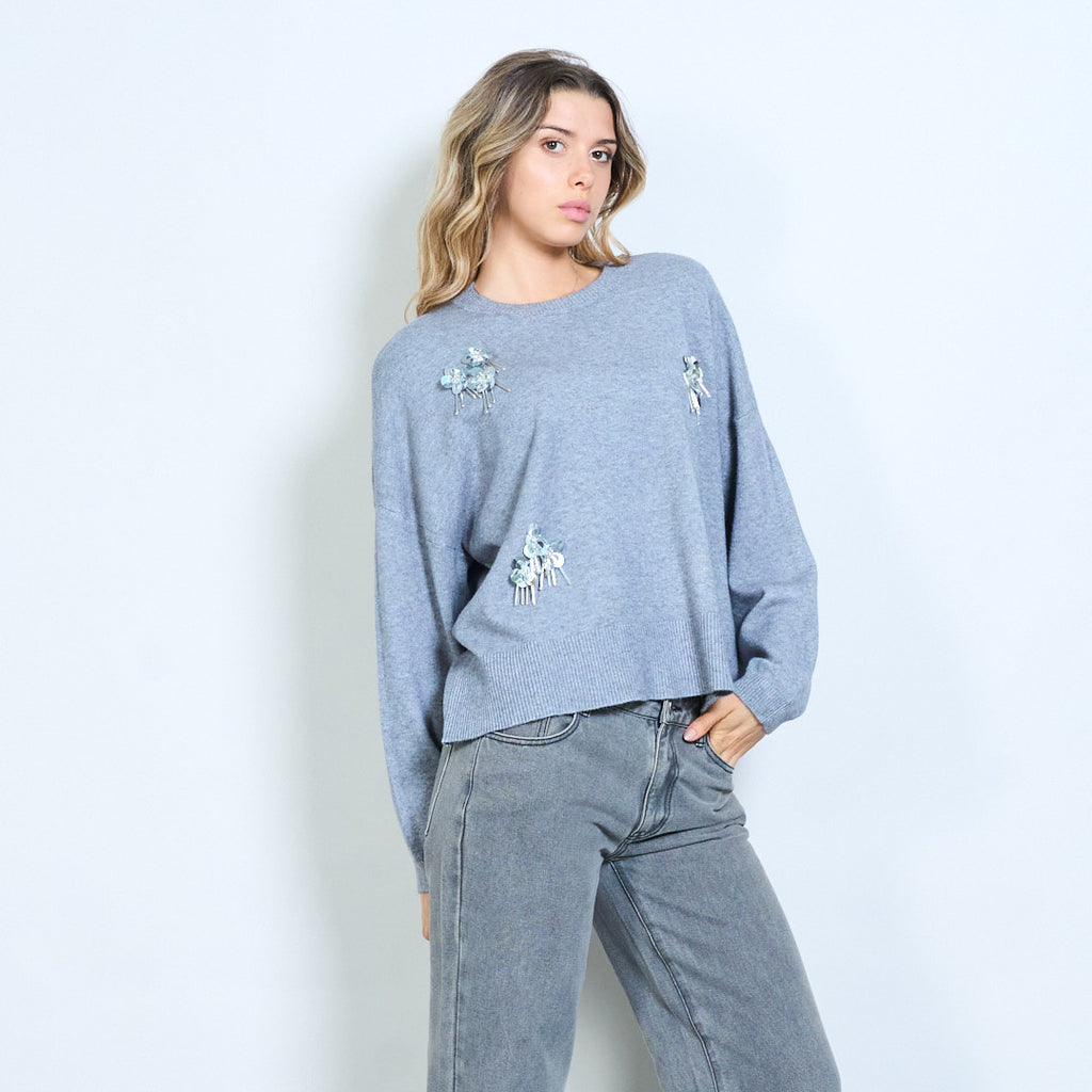 带有绣花亮片贴片的针织毛衣批发