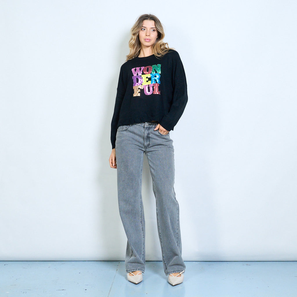 彩虹“奇妙”图形船员脖子针织毛衣批发