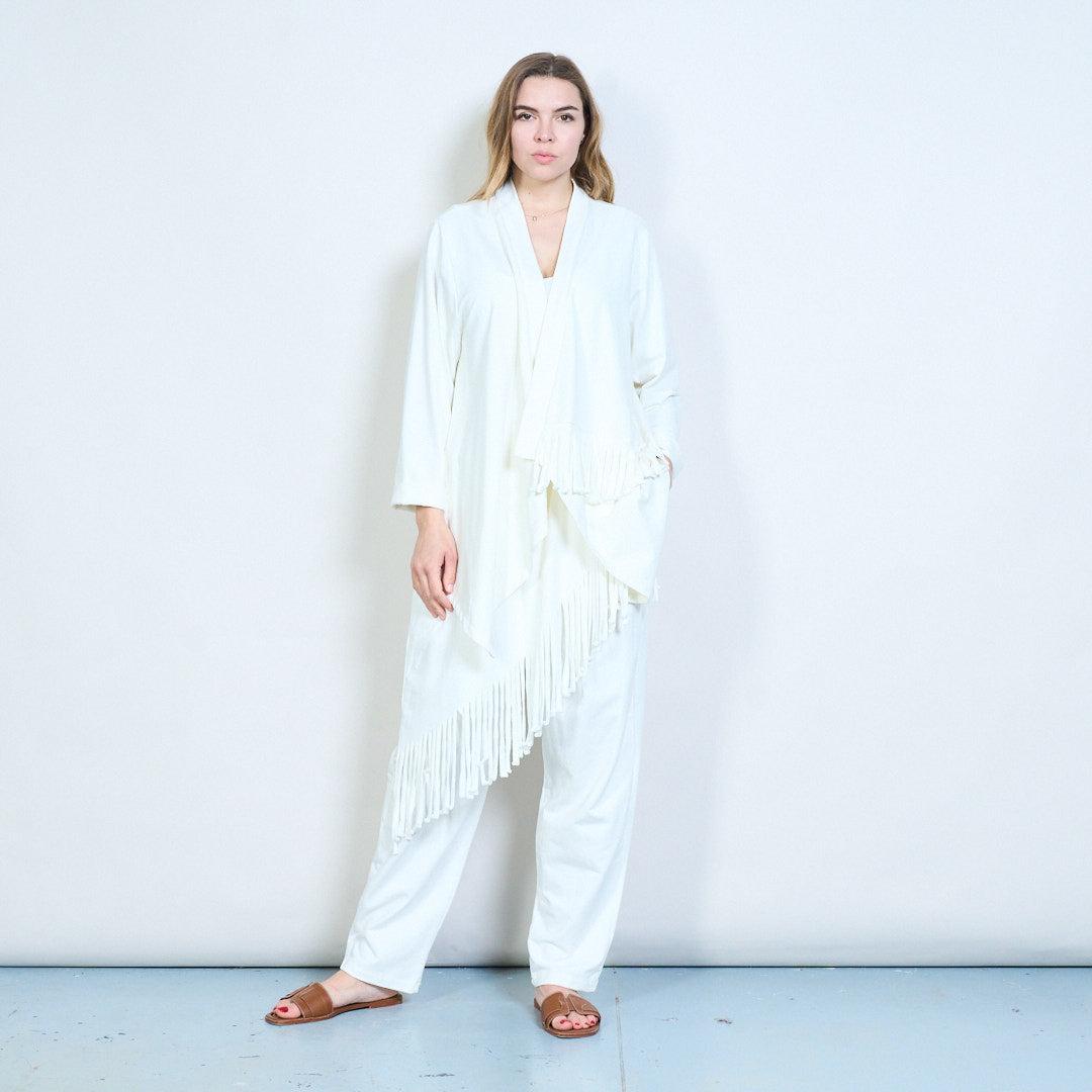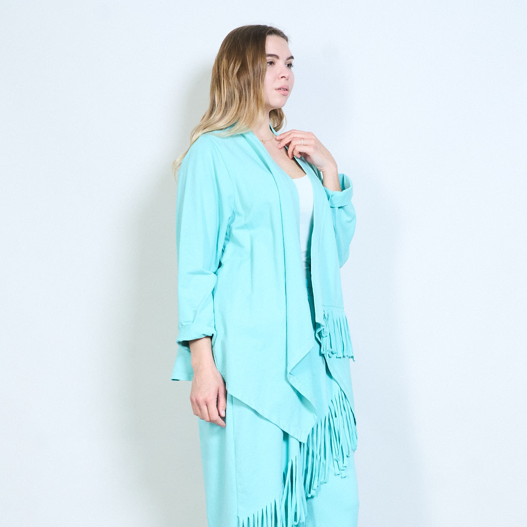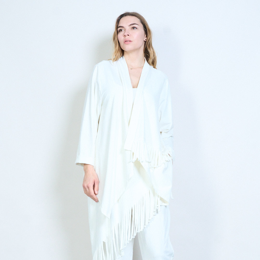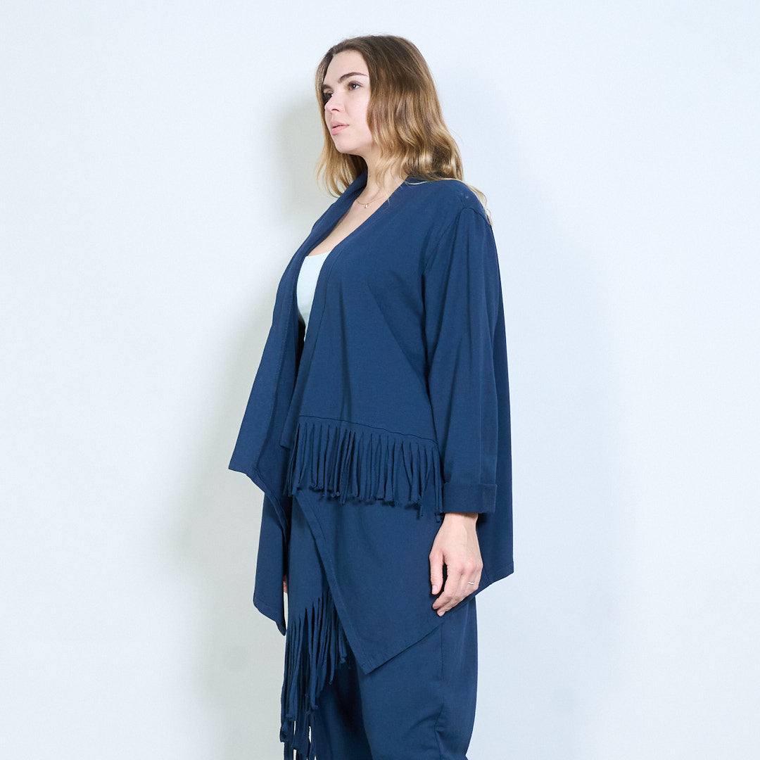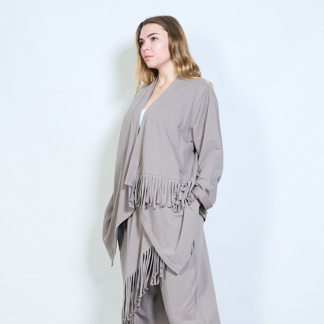不对称流苏下摆开襟长线开衫批发