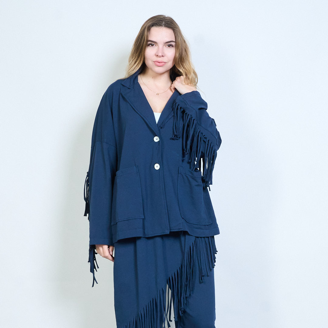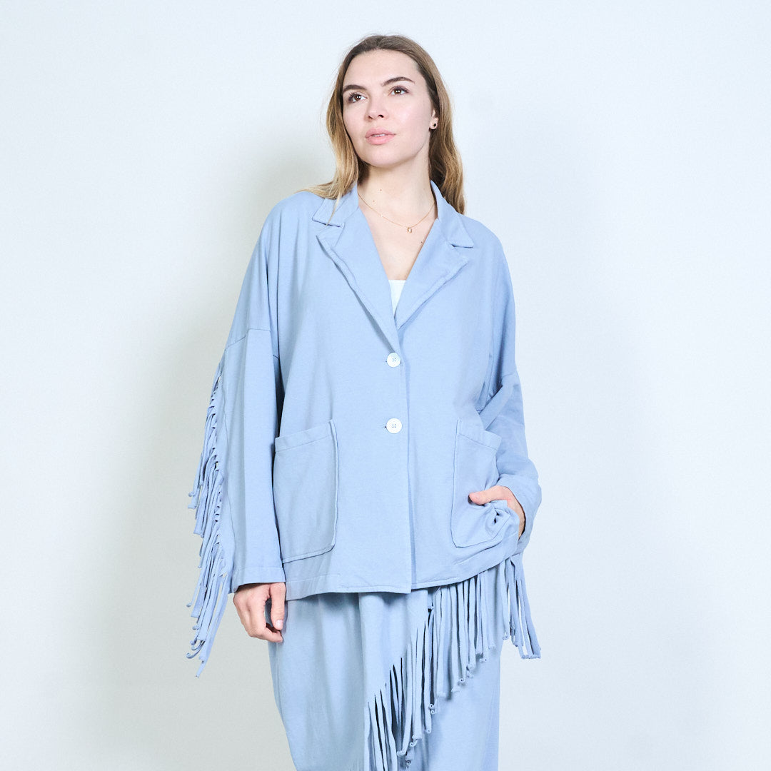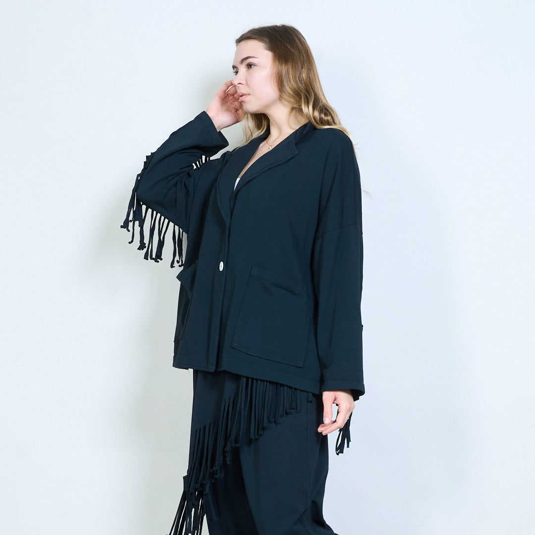 流苏袖超大纽扣开衫批发