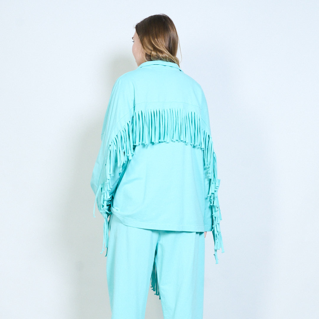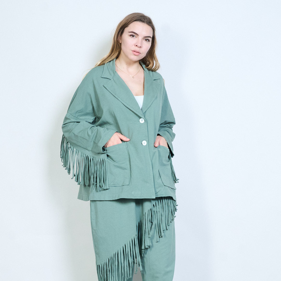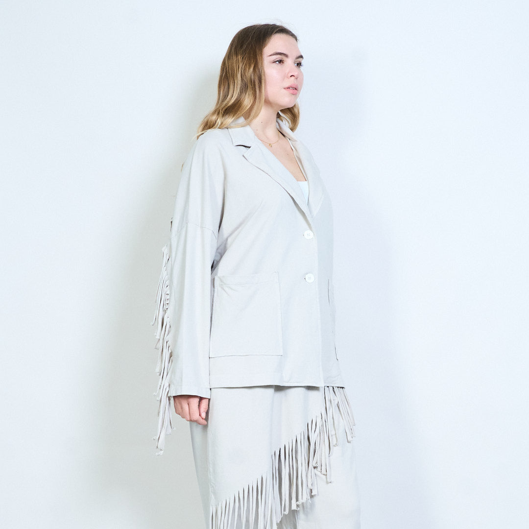 流苏袖超大纽扣开衫批发