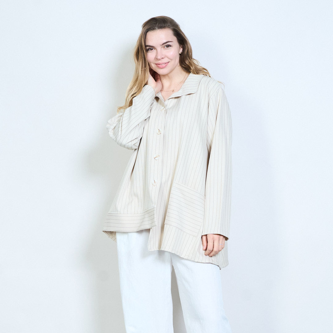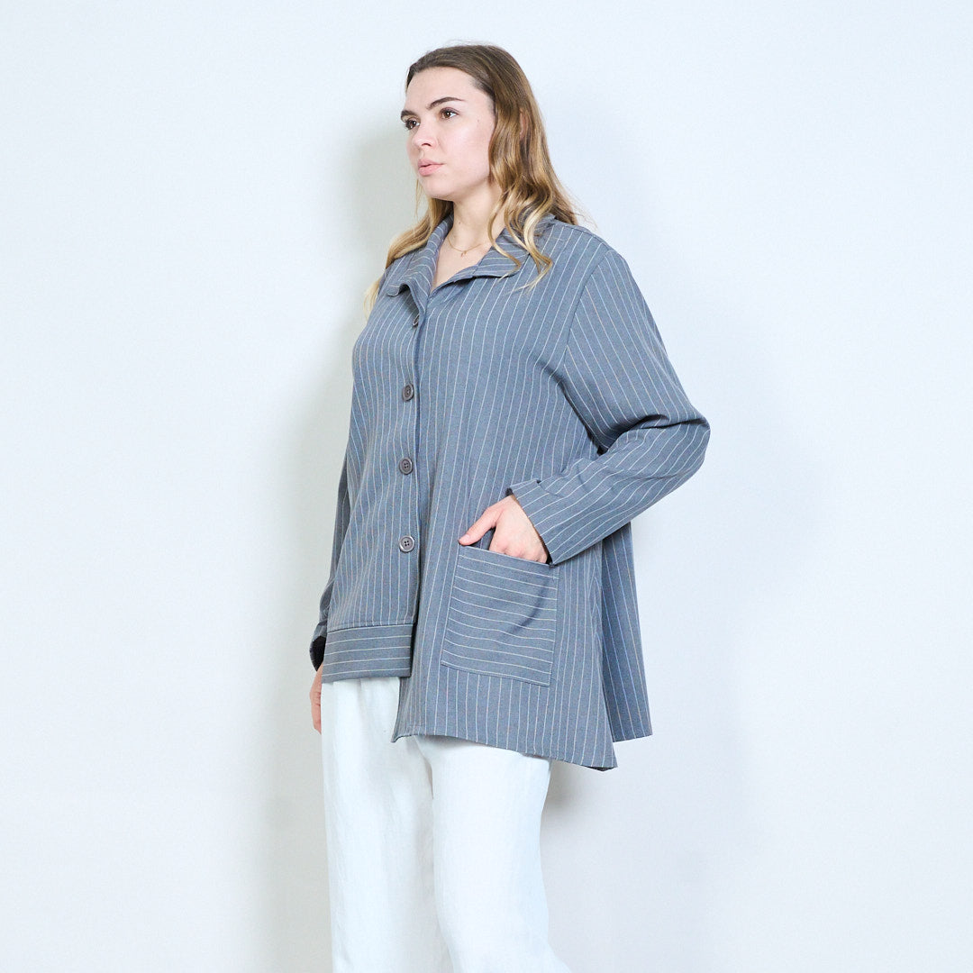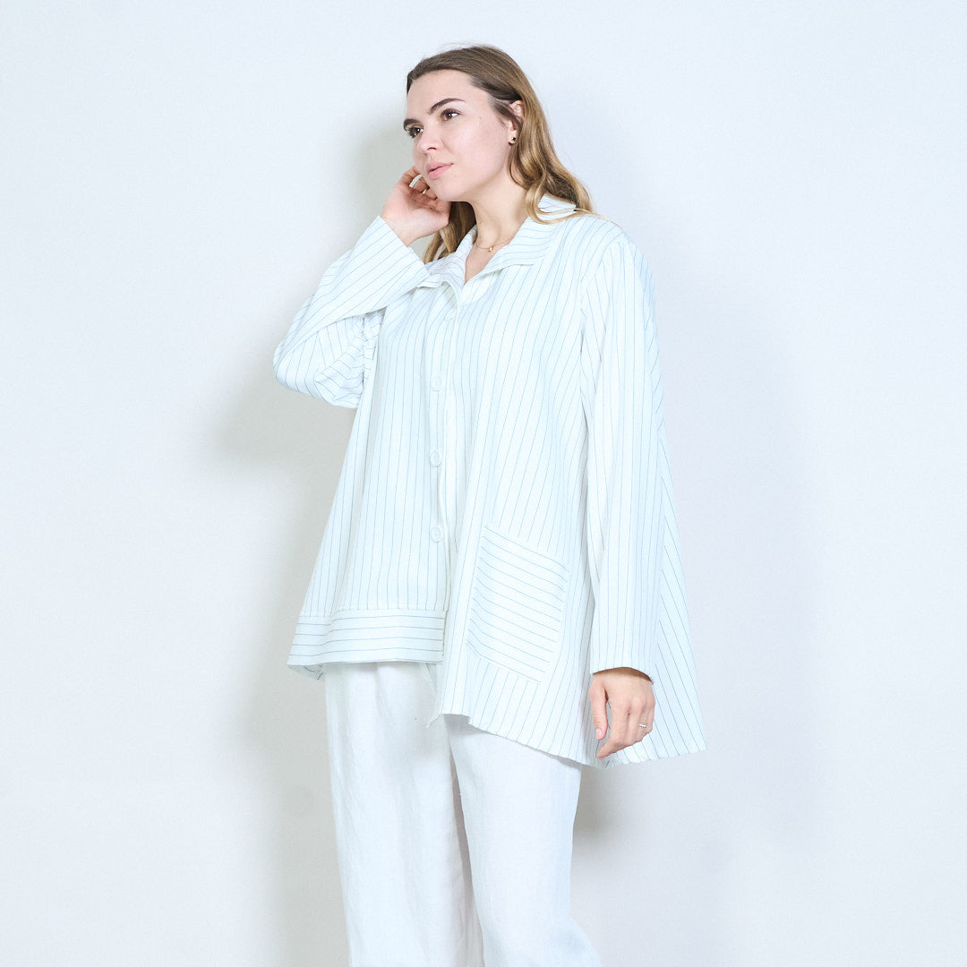 细条纹正面纽扣超大长款衬衫批发