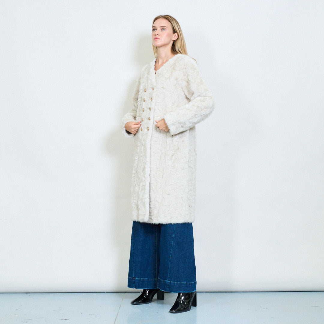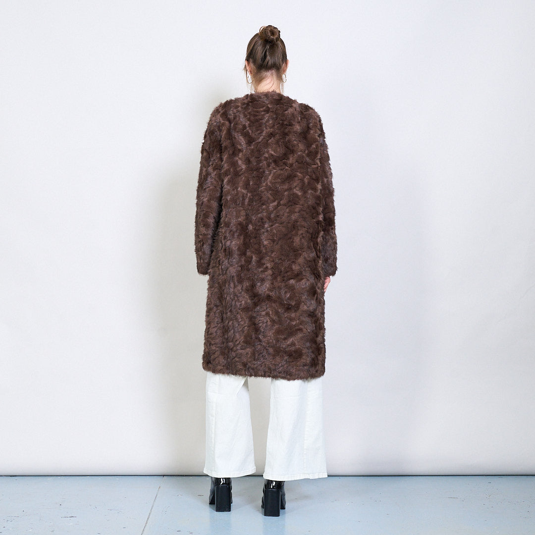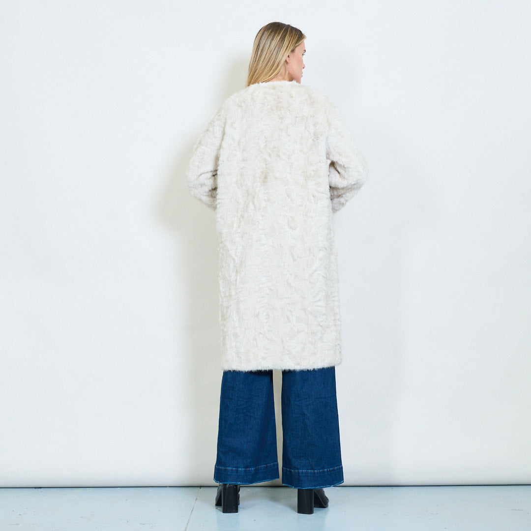 - 柔软的Eco-Fur外套具有独特的压花漩涡质地