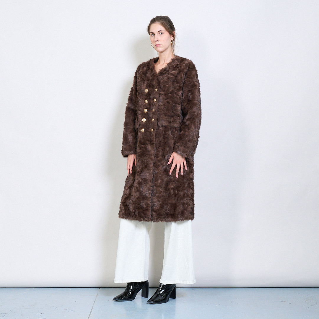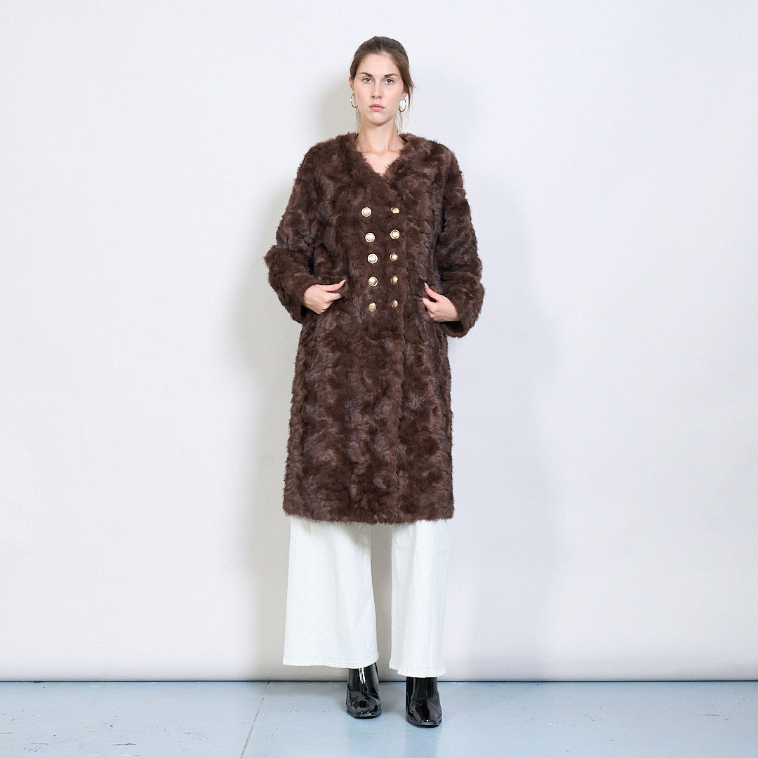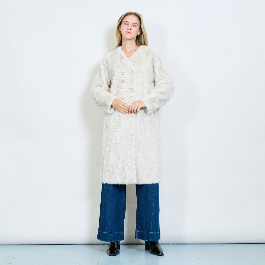 - 柔软的Eco-Fur外套具有独特的压花漩涡质地