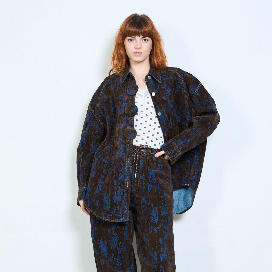 麂皮纹理超大纽扣细节衬衫夹克批发