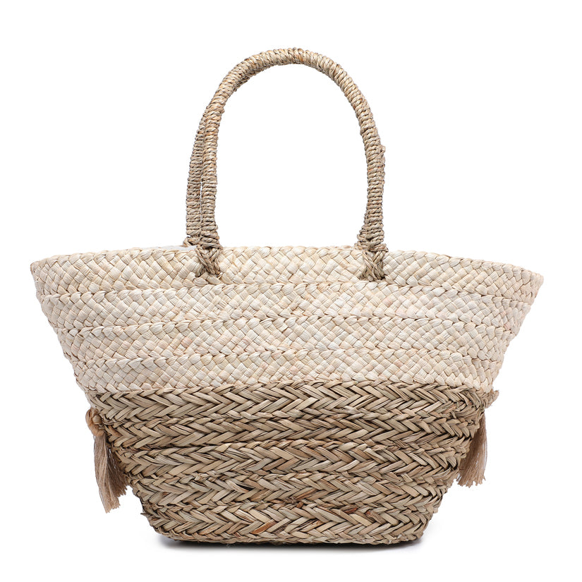 天然稻草手提袋,带有原始边缘Raffia边缘细节批发