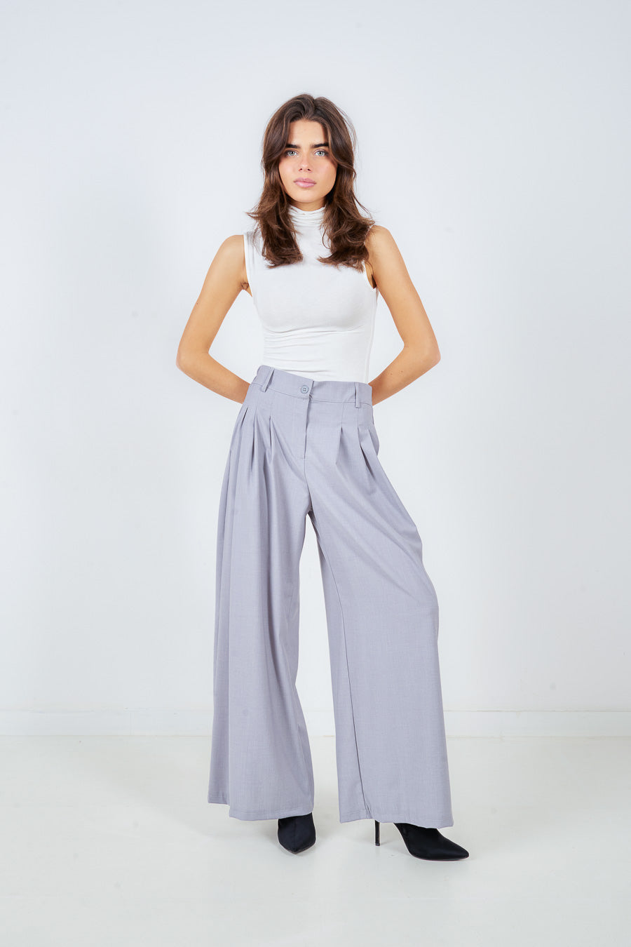 高腰百褶阔腿西裤批发