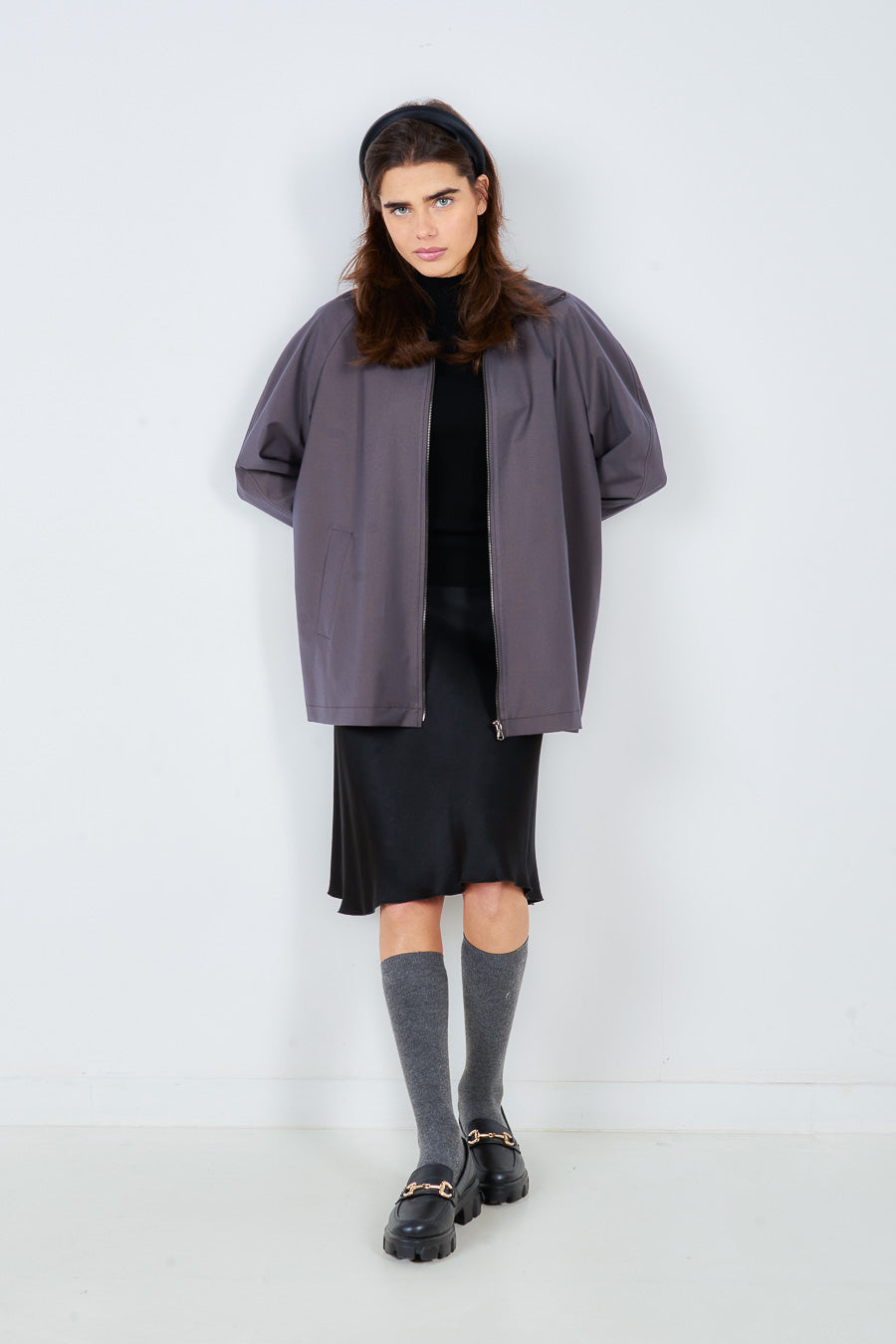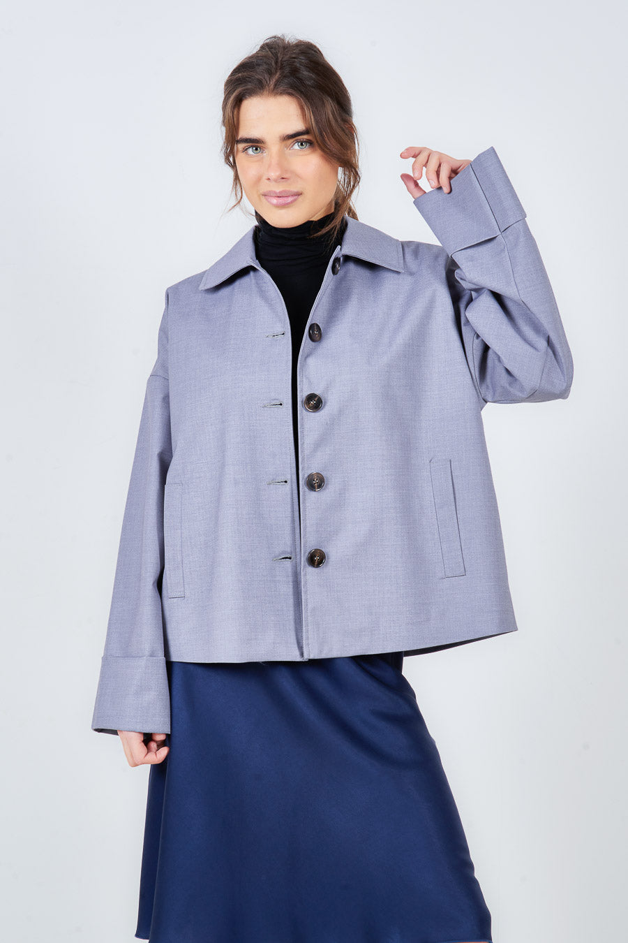 经典领口纽扣宽松合身夹克批发