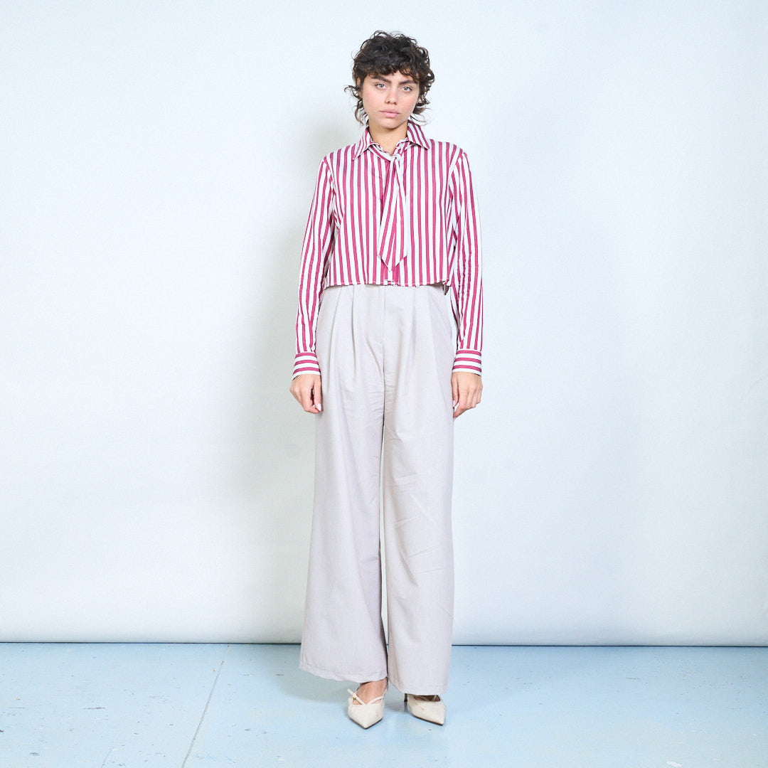 竖条纹领口短款衬衫批发