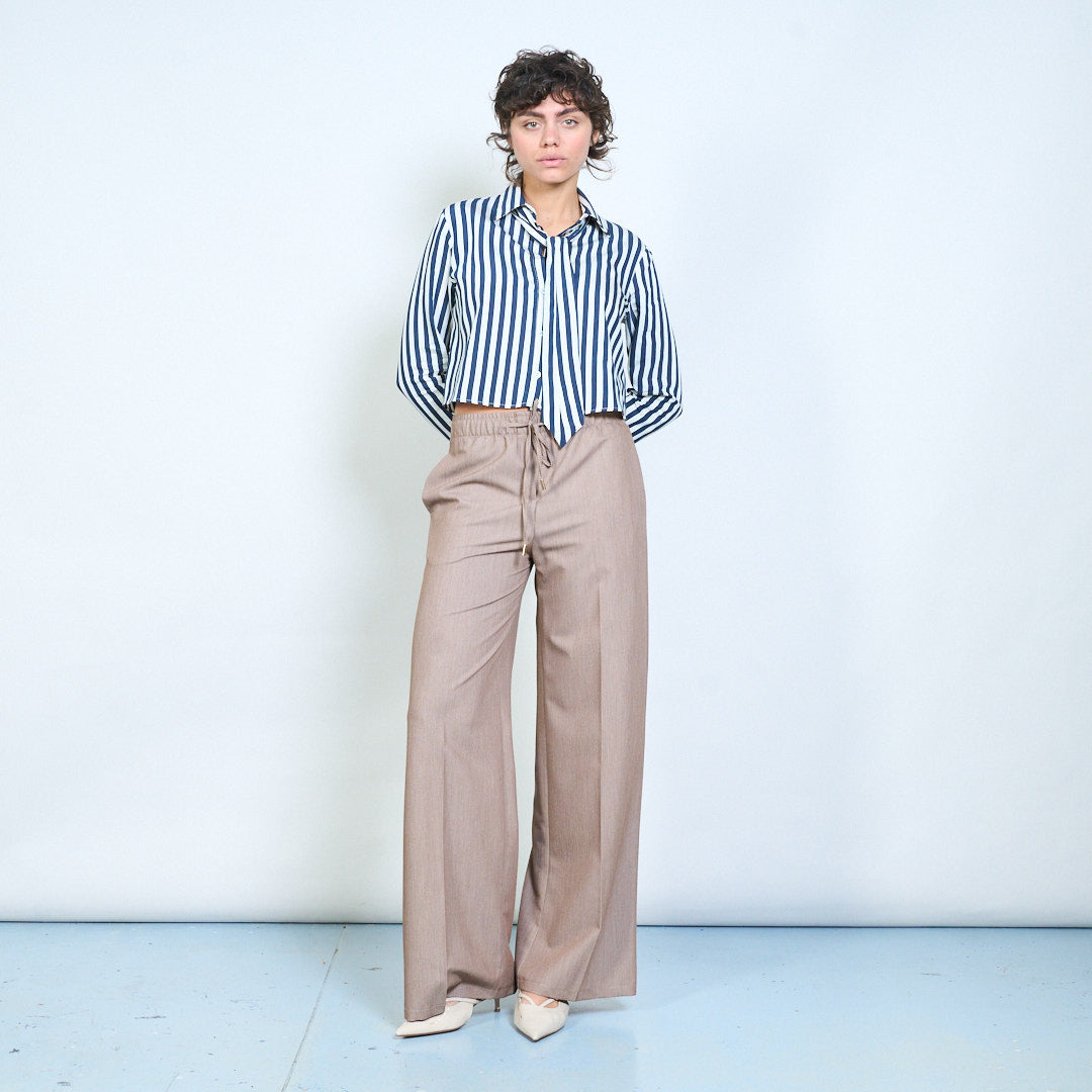 优雅高腰百褶流畅阔腿裤批发